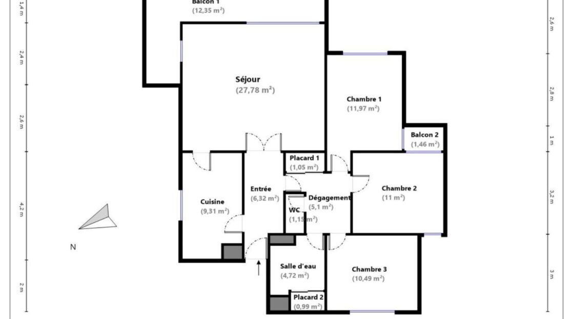 L’appartement se compose également d’un espace nuit accueillant: un dégagement équipé d’un placard qui dessert trois chambres confortables, mesurant entre 10 et 12 m² (dont deux disposent de leur propre balcon), une salle de bain bien agencée et un WC indépendant.