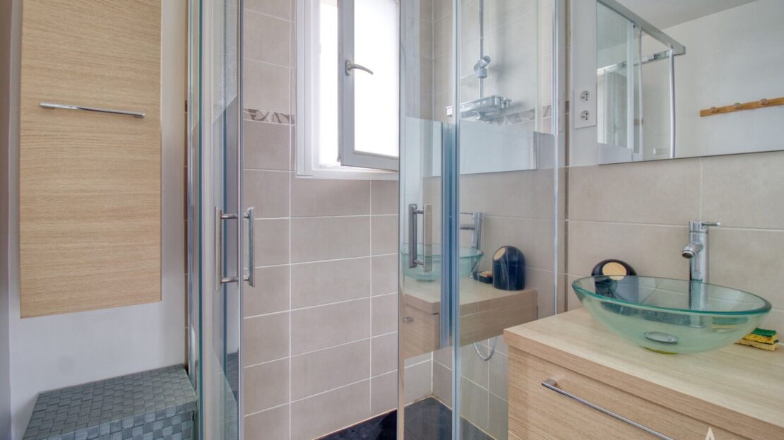 La partie nuit, située côté nord-est pour garantir calme et fraîcheur, comprend une chambre cosy, agrémentée d’un grand placard intégré. Idéal pour optimiser le rangement tout en préservant l’espace de vie. Une salle de douche élégante complète ce bien, accompagnée d’un WC indépendant pour plus de confort.
