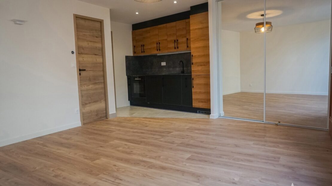 Il se compose d’un séjour , d’une cuisine aménagée et équipée, d’une chambre avec placard et une salle d’eau avec WC.