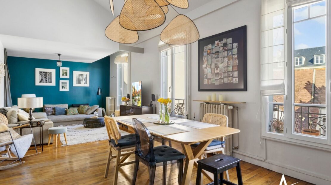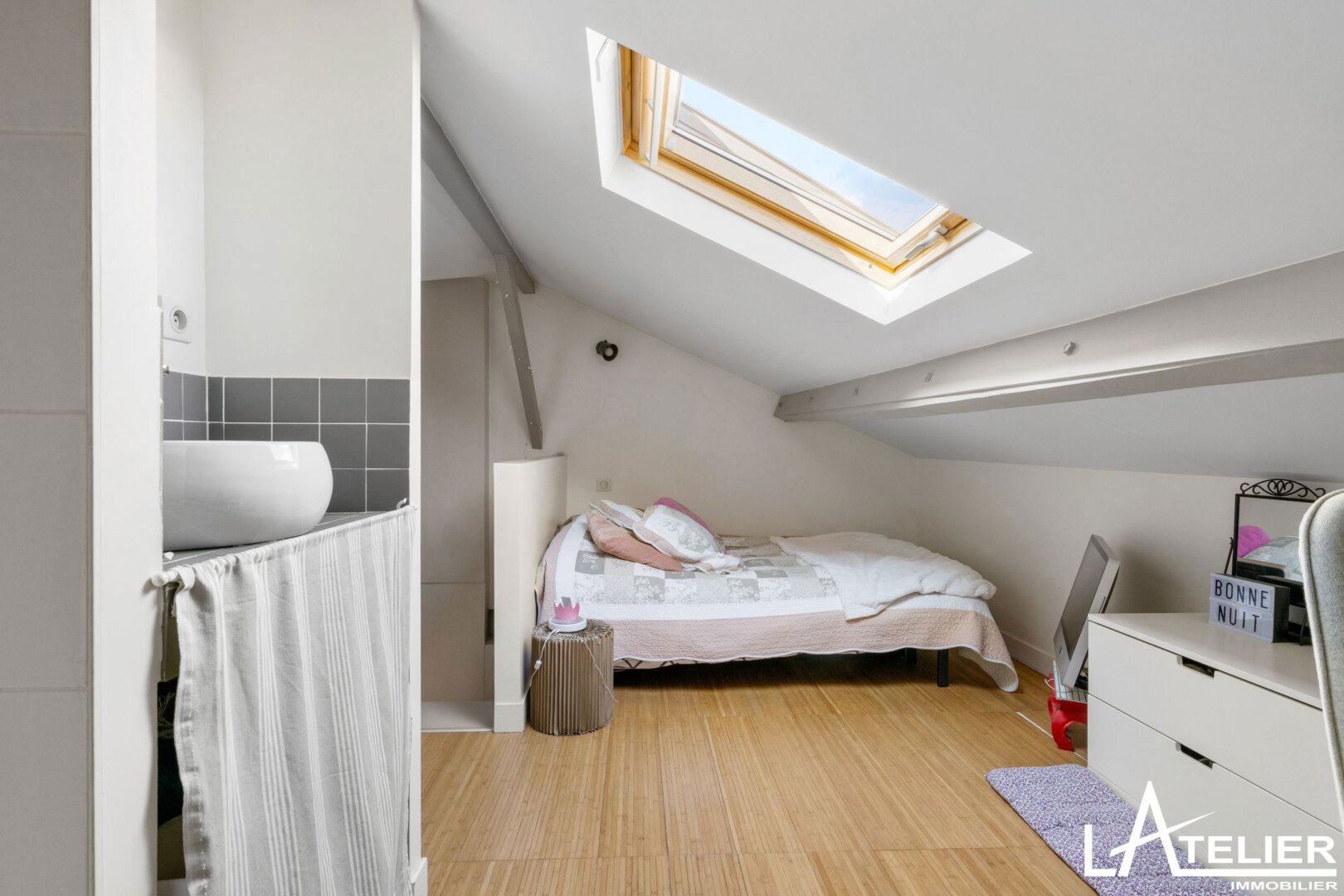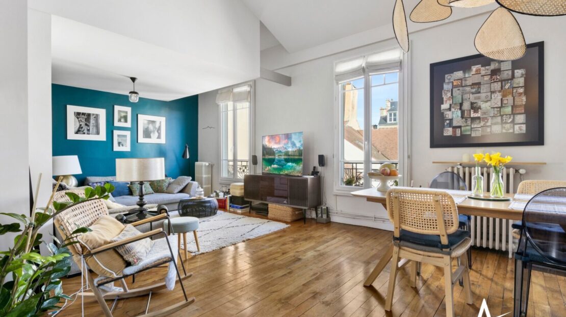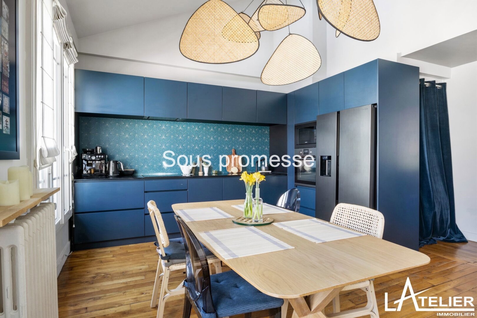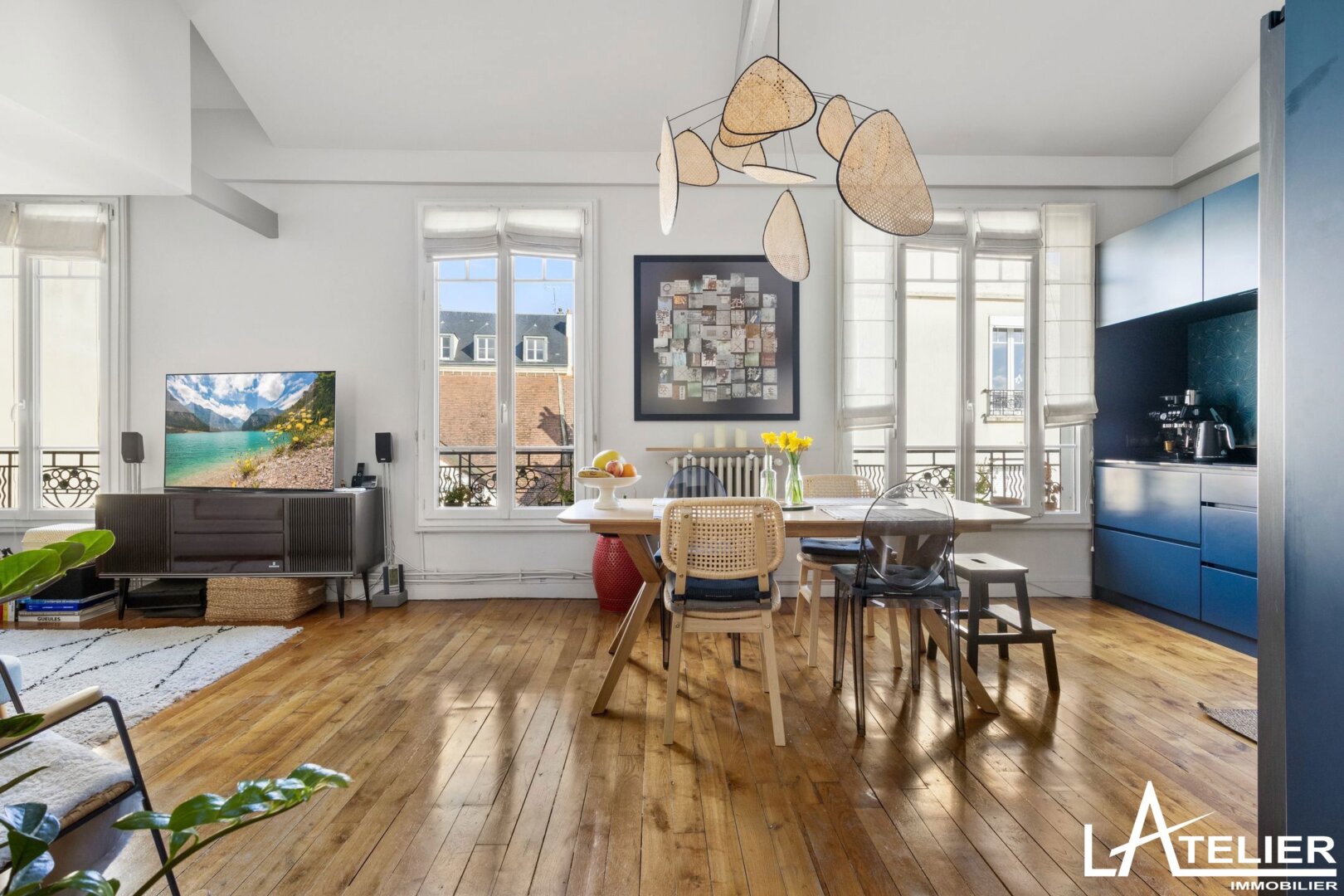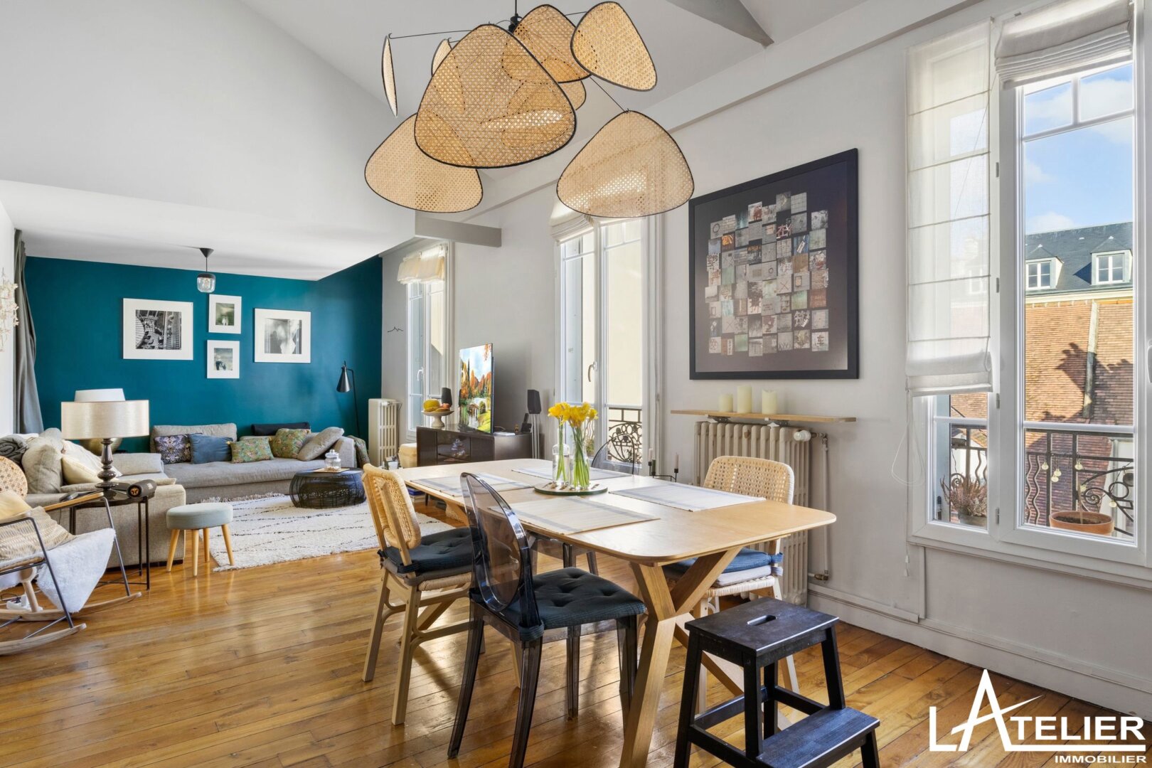 Exclusivité ! Au cœur de Saint-Germain-en-Laye, à proximité immédiate du Château, le RER à 5 min, L’Atelier Immobilier vous invite à découvrir ce charmant appartement de 83m2 carrez mais 127m2 au sol, en duplex comprenant 3 chambres. Niché au troisième et dernier étage du bâtiment arrière, vous profiterez du calme absolu ainsi que de la cour et du jardin commun en plein centre-ville. L’appartement offre des prestations attrayantes : un spacieux séjour avec une cuisine équipée, baigné de lumière naturelle grâce à 3 grandes fenêtres et ses velux, un coin bureau parfait pour le télétravail, deux chambres confortables, une salle de bain avec toilettes. À l’étage, une chambre mansardée avec sa propre douche et lavabo, ainsi qu’un généreux espace de rangement. Une cave complète cet ensemble. Contactez moi dès maintenant pour découvrir ce bel appartement. Julia Le Borgne 06 46 37 85 92. RSAC Versailles 951 940 592. Charges annuelles 1700 €. Pas de procédures en cours. 20 lots sur 2 bâtiments.