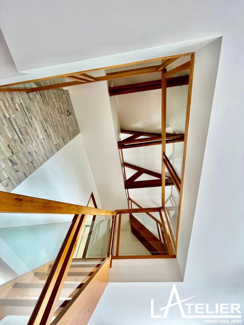 Surélevée en 2003 de 2 étages, elle vous séduira par ses volumes et sa luminosité. Construite sur 4 niveaux :