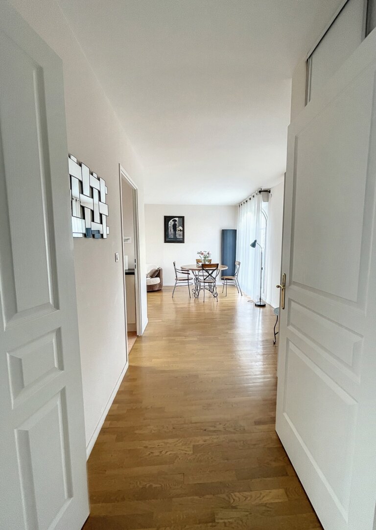 Bien agencé, l’entrée avec placard dessert d’un côté la partie jour, de l’autre, la partie nuit.