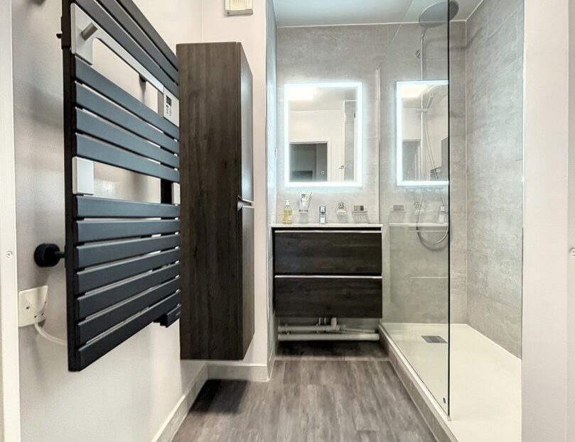 Extrêmement fonctionnel, les 3 chambres disposent de grands placards intégrés, la salle d’eau est moderne et les WC sont indépendants.