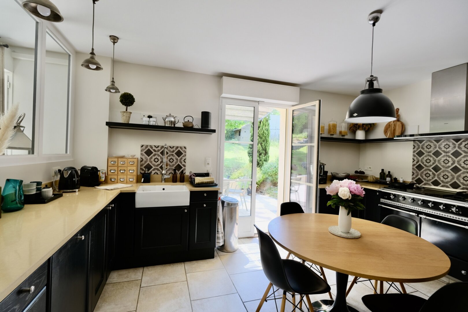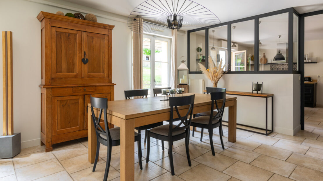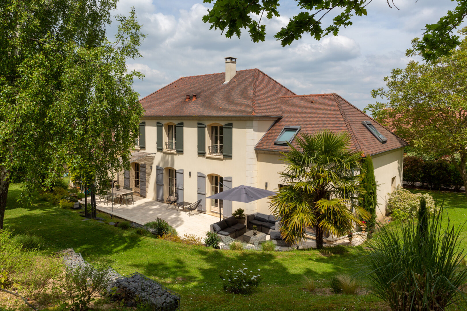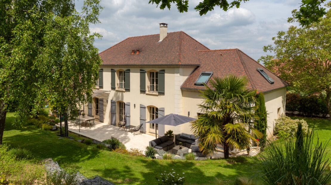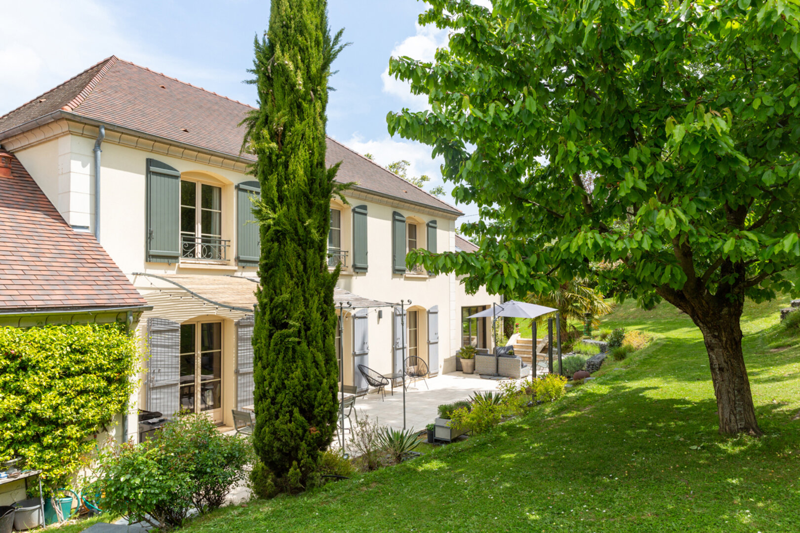Les espaces extérieurs sont aussi soignés que l’intérieur de la maison ! paysagés, arborés (cerisier, pommier, noisetier…) on a ici plusieurs zones de détente, jeux et surtout le charme d’une terrasse exceptionnelle agrémentée d’une pergola.