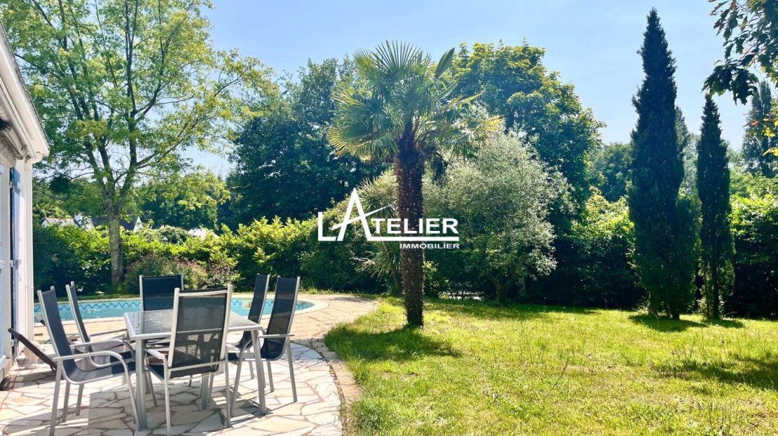 Cette jolie maison familiale au potentiel certain n’attend que vous : au calme en impasse dans un quartier résidentiel de Sautron, son volume spacieux de 220m2 habitables comprend de beaux espaces de vie plein sud, sans vis-à-vis ; elle dispose d’un grand jardin entièrement clos joliment arboré et d’une piscine ; au rez-de-chaussée, une vie e plain-pied possible : entrée « cathédrale » avec rangements, grande cuisine moderne aménagée et équipée avec notamment un piano de cuisson, séjour et salon ouvrant sur la terrasse, une chambre parentale avec salle de bain. A l’étage : 4 chambres, nombreux placards intégrés, salle de bain, wc, petite salle de douche à rénover et grande chambre parentale traversante avec dressing aménagé.