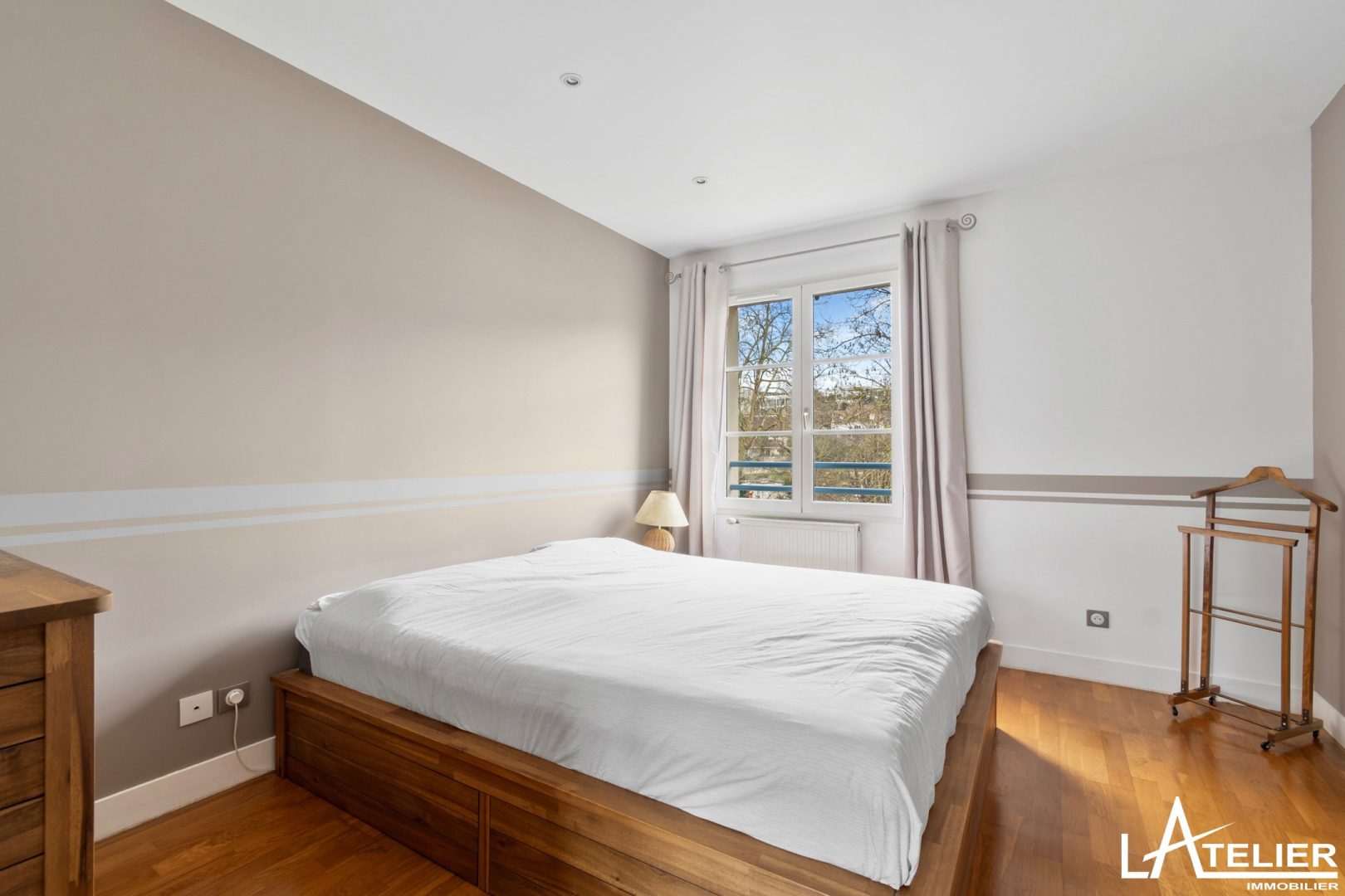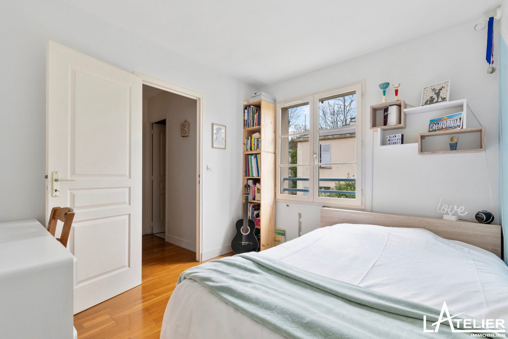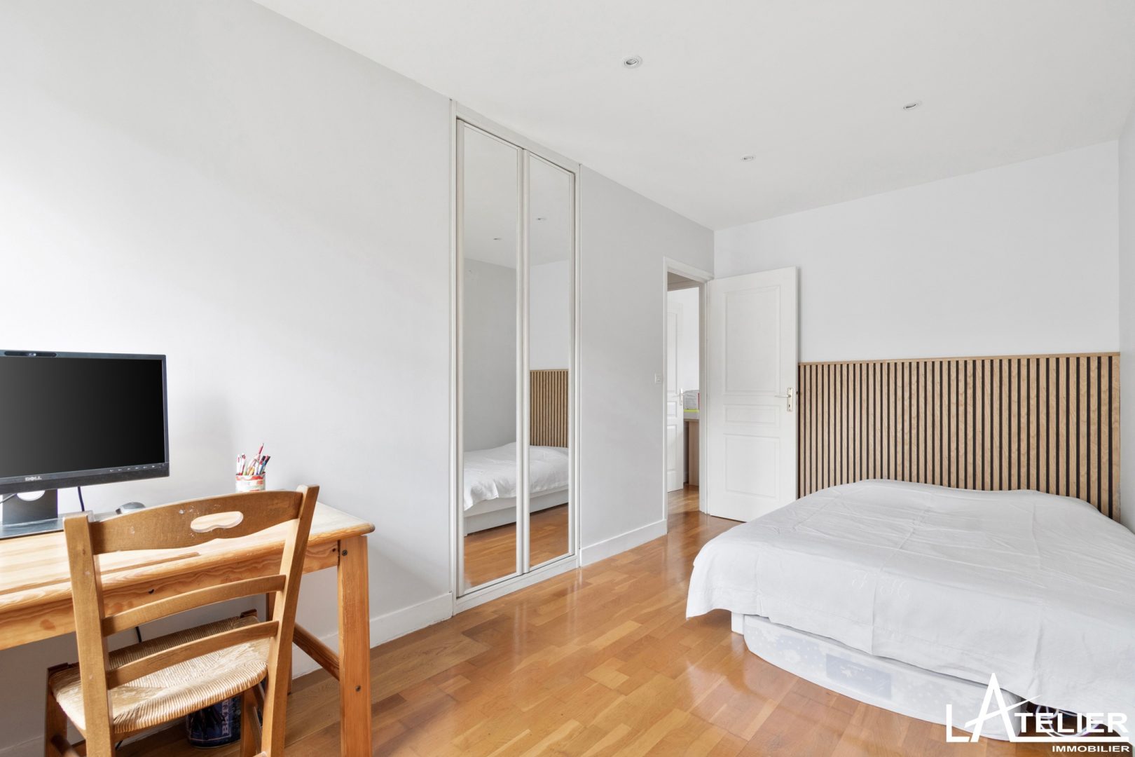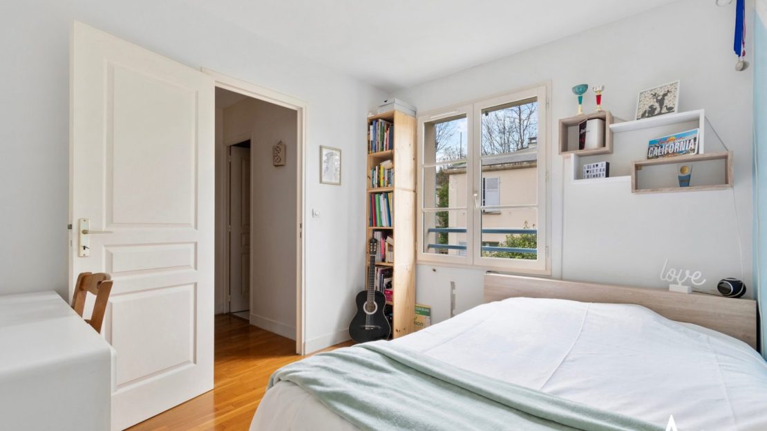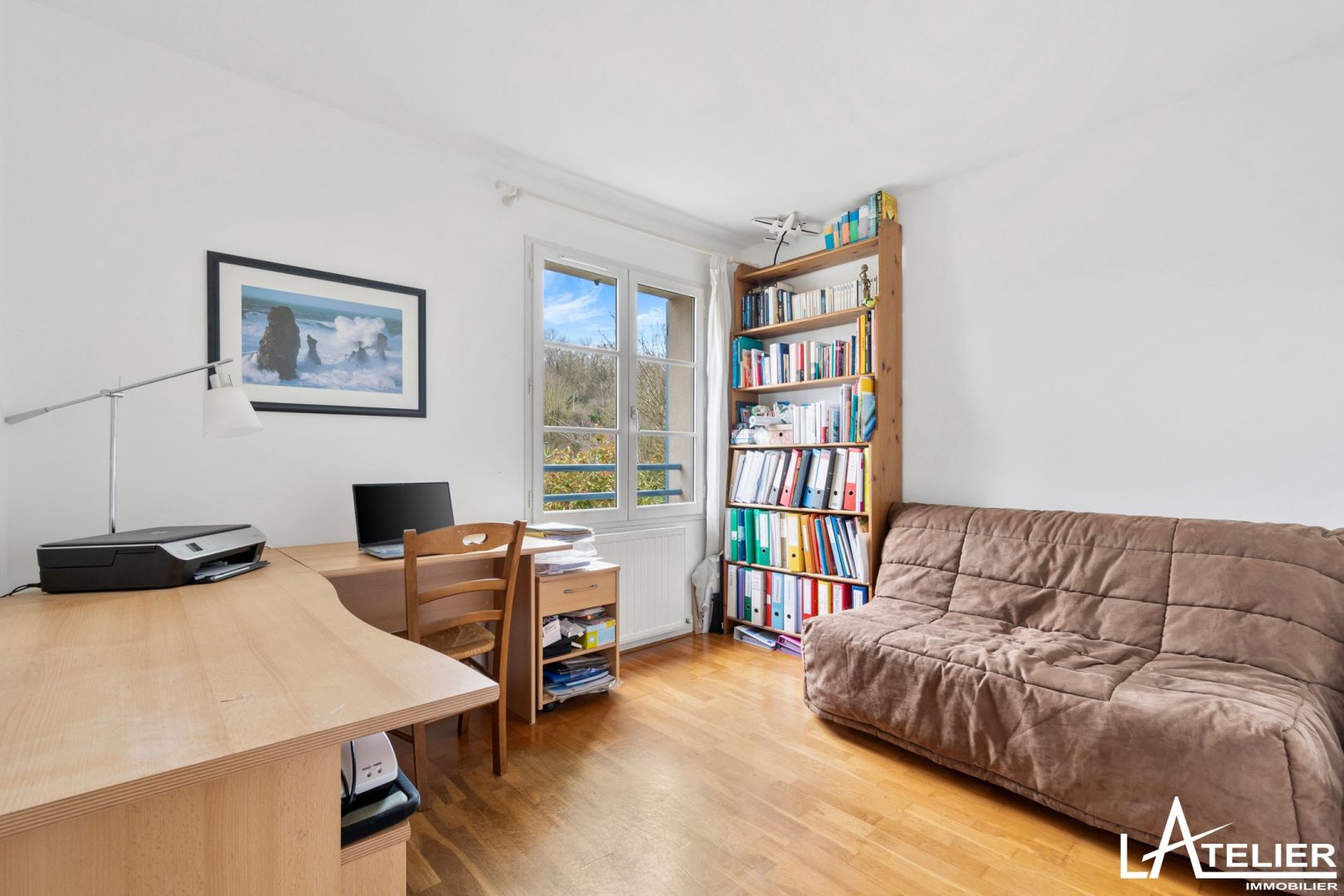 Dès l’entrée, un espace modulable s’ouvre à vous, idéal pour un bureau ou un coin lecture, avant de mener vers un vaste séjour baigné de lumière. Son bow-window apporte du cachet et prolonge la vue vers la jolie terrasse qui vous invite à profiter de l’extérieur. Dès le printemps, elle se fond dans un écrin de grands arbres qui lui confèrent une atmosphère paisible et rafraîchissante. La cuisine, attenante à la salle à manger, peut être ouverte sur le séjour pour encore plus de convivialité.