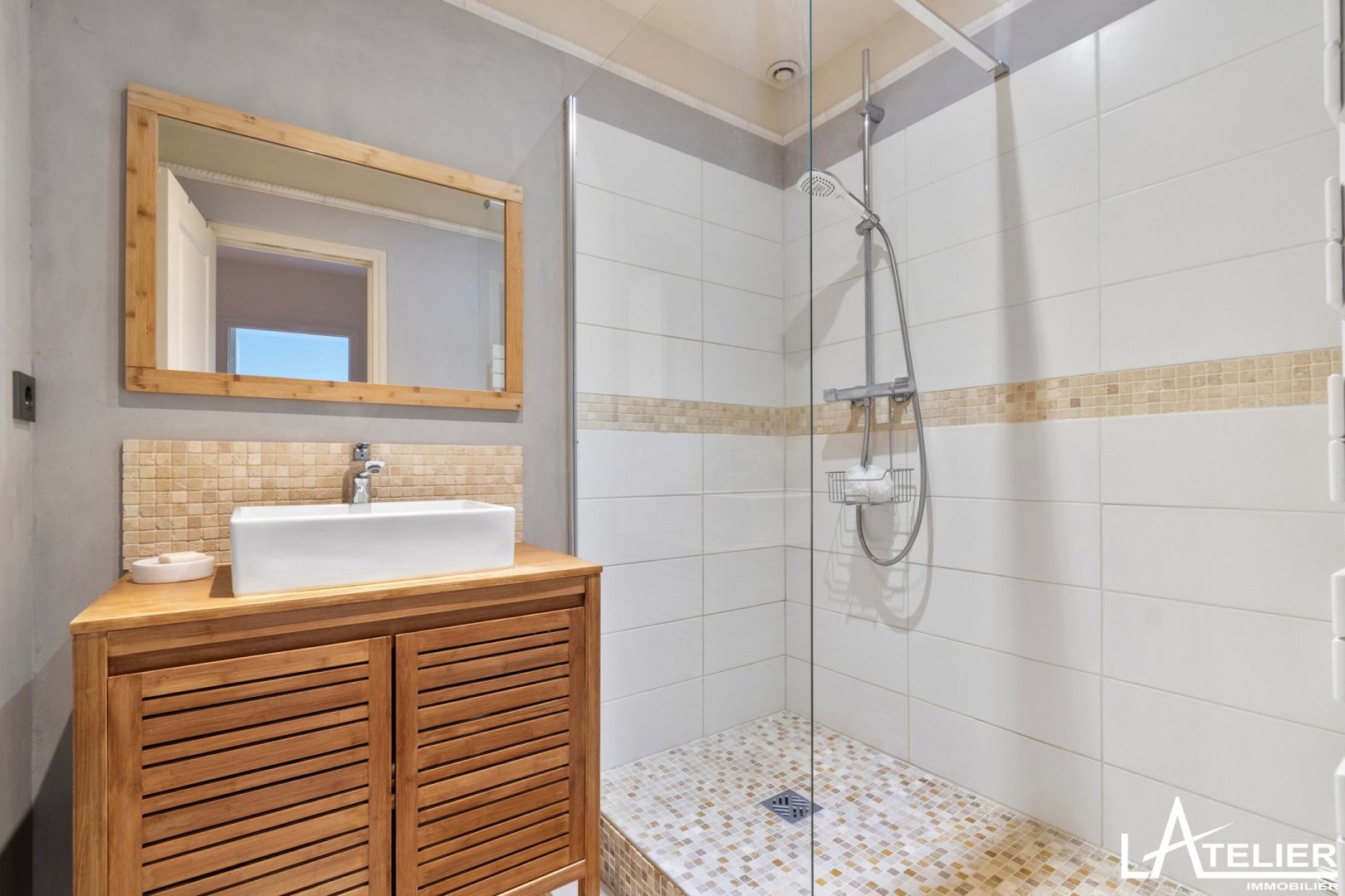 L’étage accueille quatre chambres, chacune équipée de placards. Deux salles de bain complètent cet espace nuit : une salle d’eau récemment rénovée et une salle de bain avec baignoire. Et le WC est séparé.