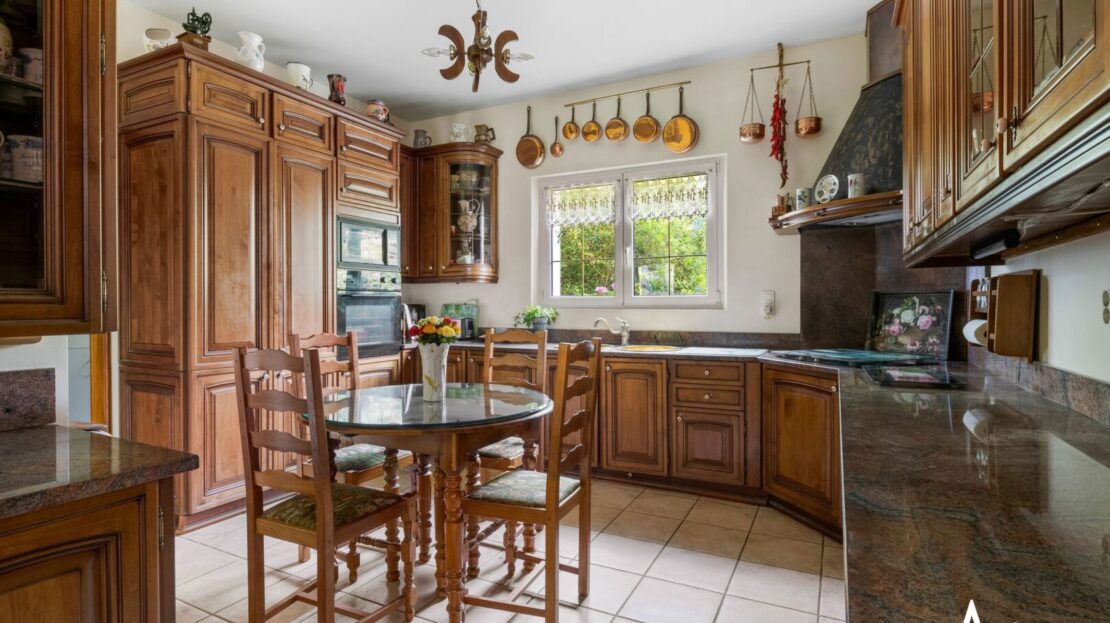 Dès l’entrée, vous serez accueilli par un hall spacieux avec un sol en marbre, qui donne le ton à l’ensemble de la maison. Le vaste séjour est baigné de lumière grâce à ses grandes baies et sa double exposition. La cheminée trône au centre du salon, créant une ambiance chaleureuse et conviviale. La cuisine, séparée est entièrement équipée et offre un espace dédié aux repas en famille. Elle est dotée d’une arrière cuisine qui permet de ranger et d’organiser. Vous trouverez également une chambre avec sa salle d’eau.