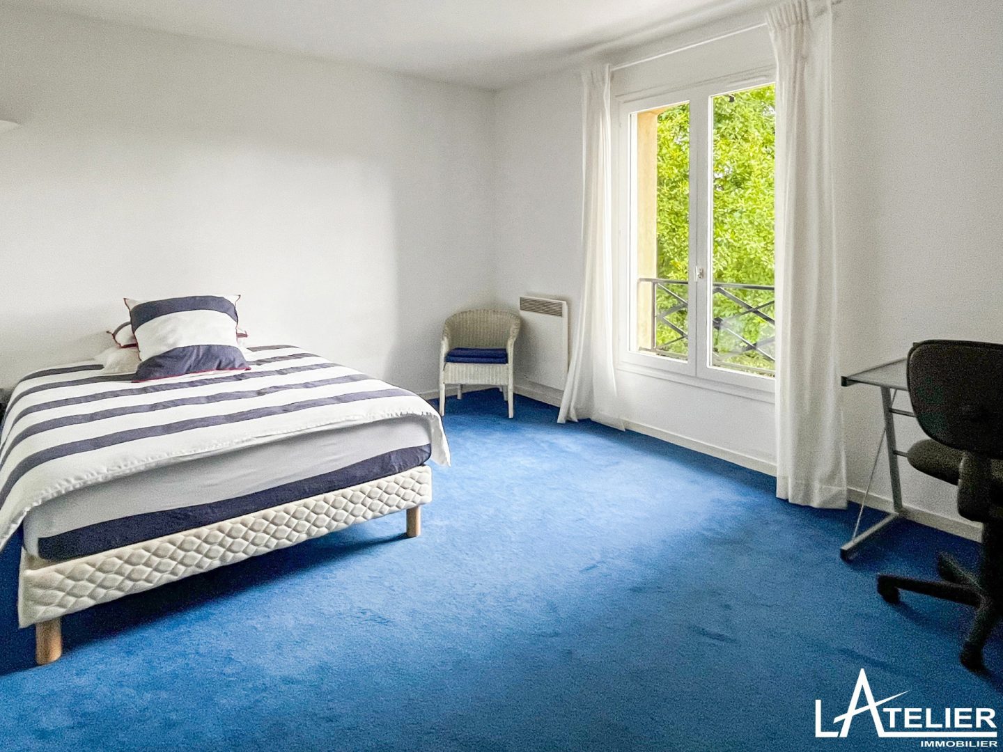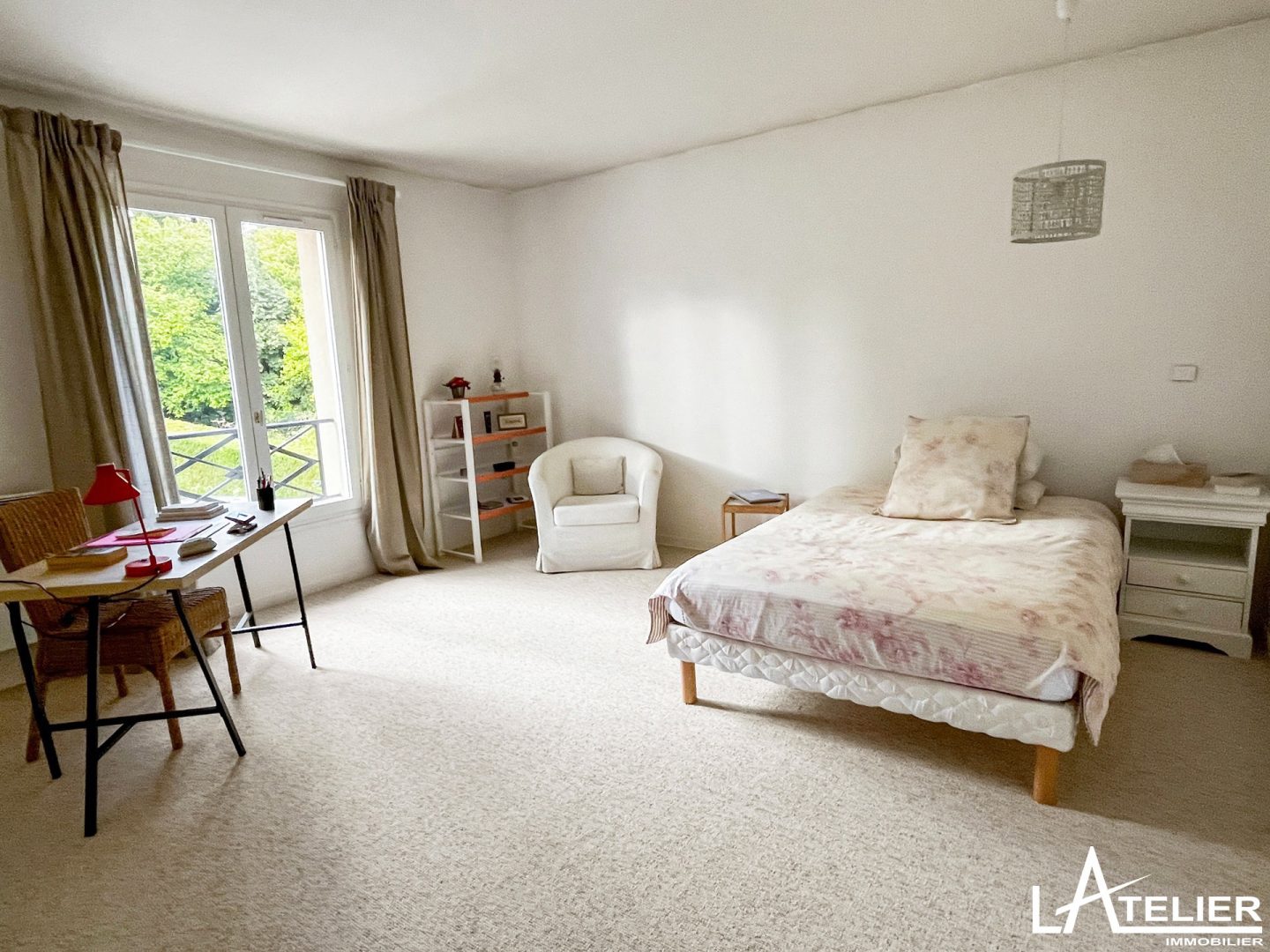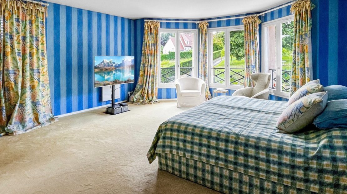 Au 1er étage, un large palier ouvert, dessert 3 grandes chambres, chacune avec rangement intégré, un wc indépendant, une salle de bains avec baignoire et douche idéale pour les enfants. La suite parentale très spacieuse avec son bow window et la vue sur le jardin, offre un dressing aménagé, une grande chambre et une salle de bains avec baignoire, douche et wc.