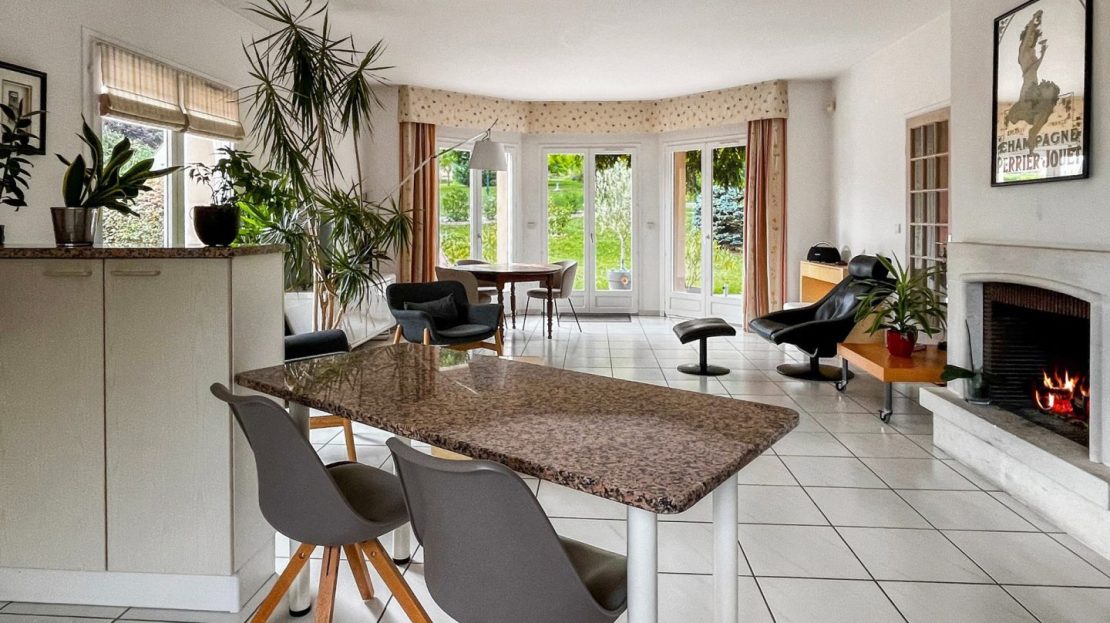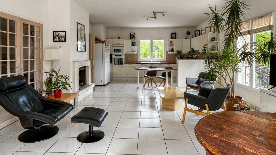 Edifiée en 1994 (sur sous-sol total) et amoureusement entretenue, la propriété offre un ensemble au caractère cossu, arboré, de grands volumes et de l’espace pour toute la famille. Les espaces de réception font la différence avec une très grande pièce de vie avec cheminée, ouverte sur la terrasse et le jardin et une très grande cuisine avec espace salle à manger en bow-window idéal pour partager de joyeux moments conviviaux. Le tout est orienté à l’ouest et bénéficie de beaucoup de clarté.