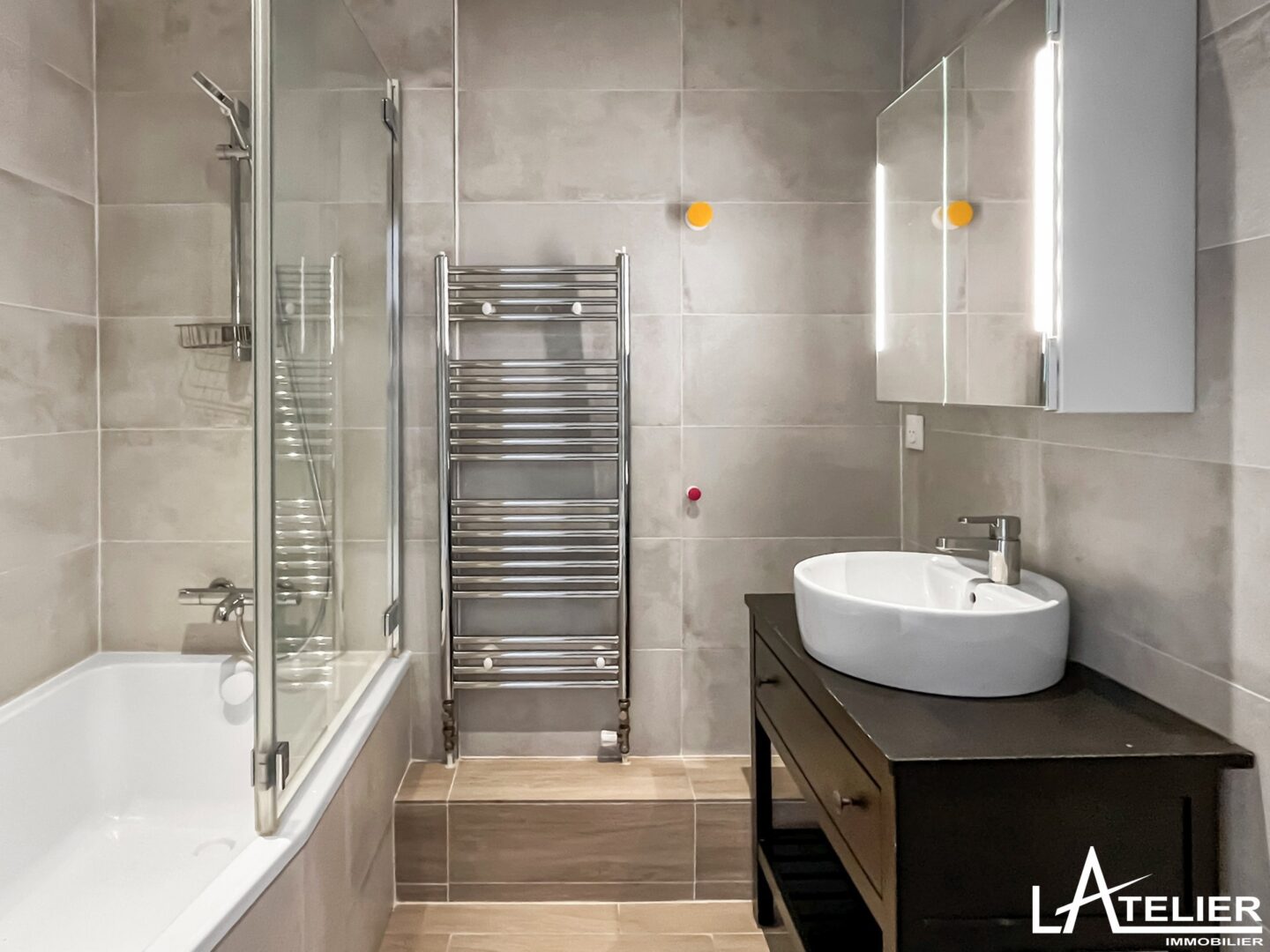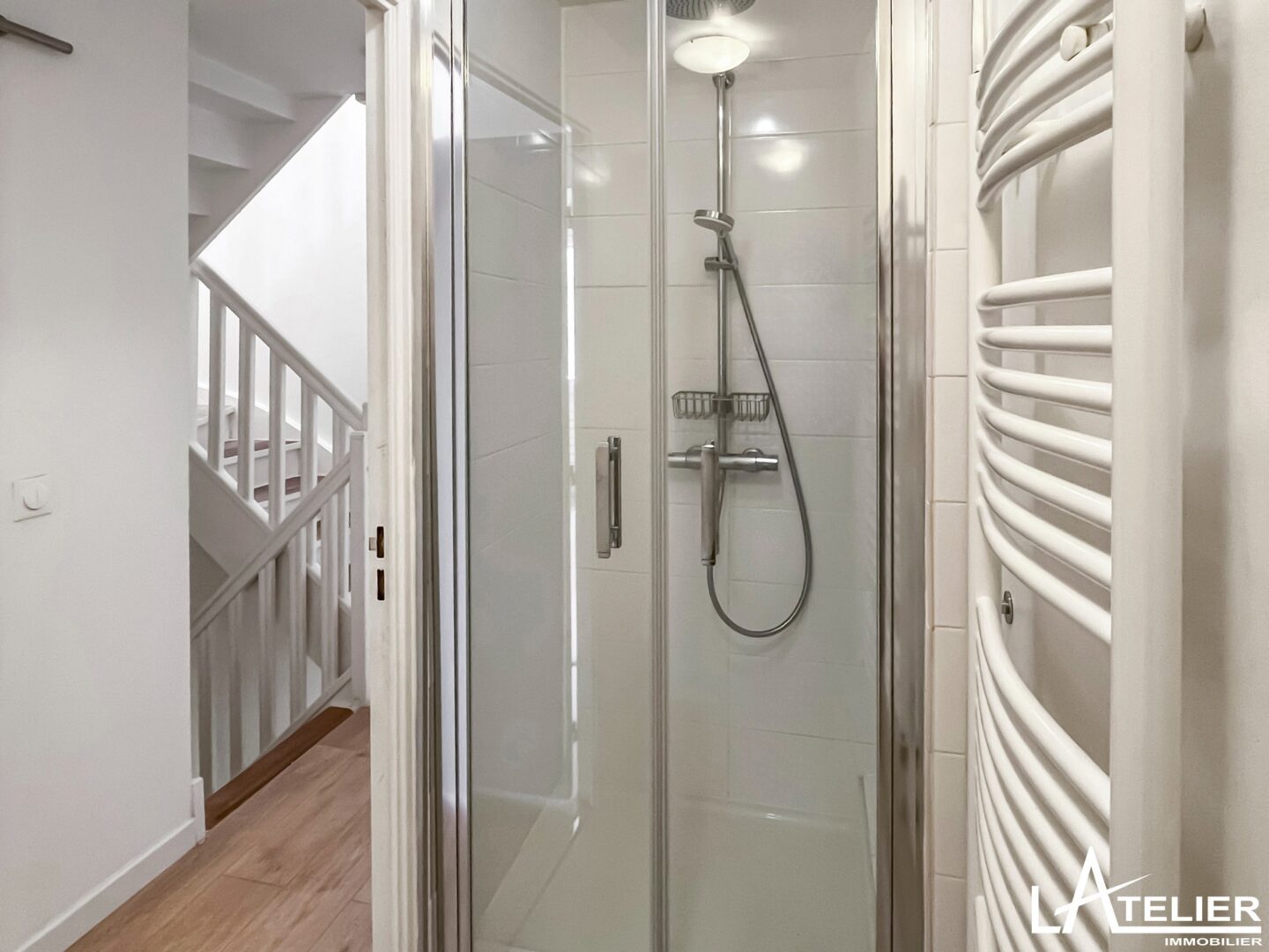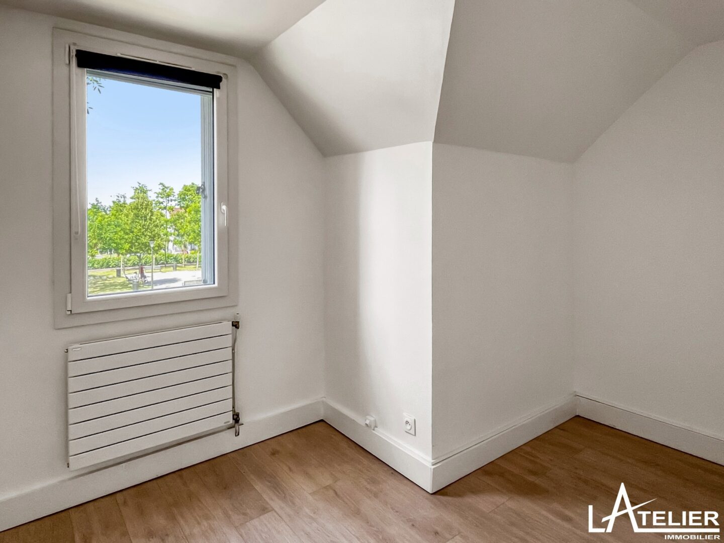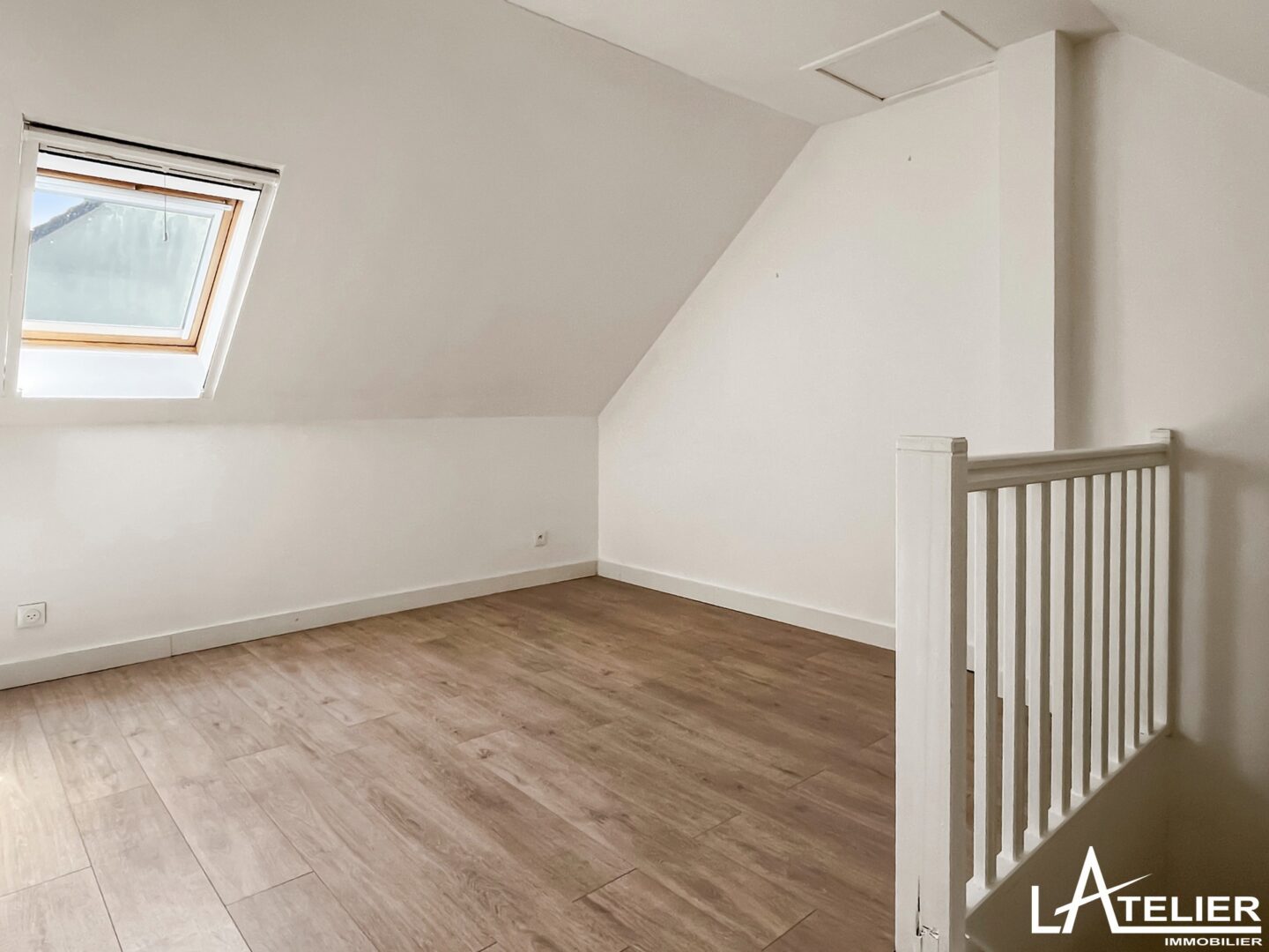 L’étage distribue 2 belles chambres, une superbe salle de bains, un wc séparé, et une salle d’eau avec espace buanderie. Au 2ème étage mansardé, on trouve un grand espace idéal pour la chambre parentale.