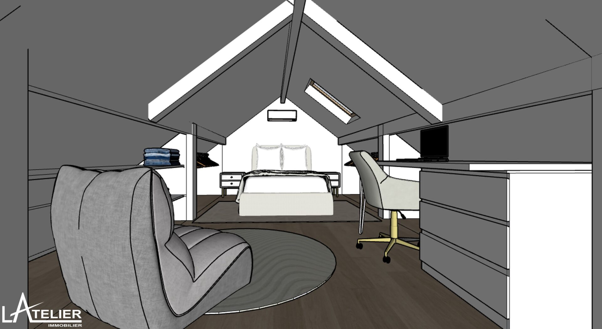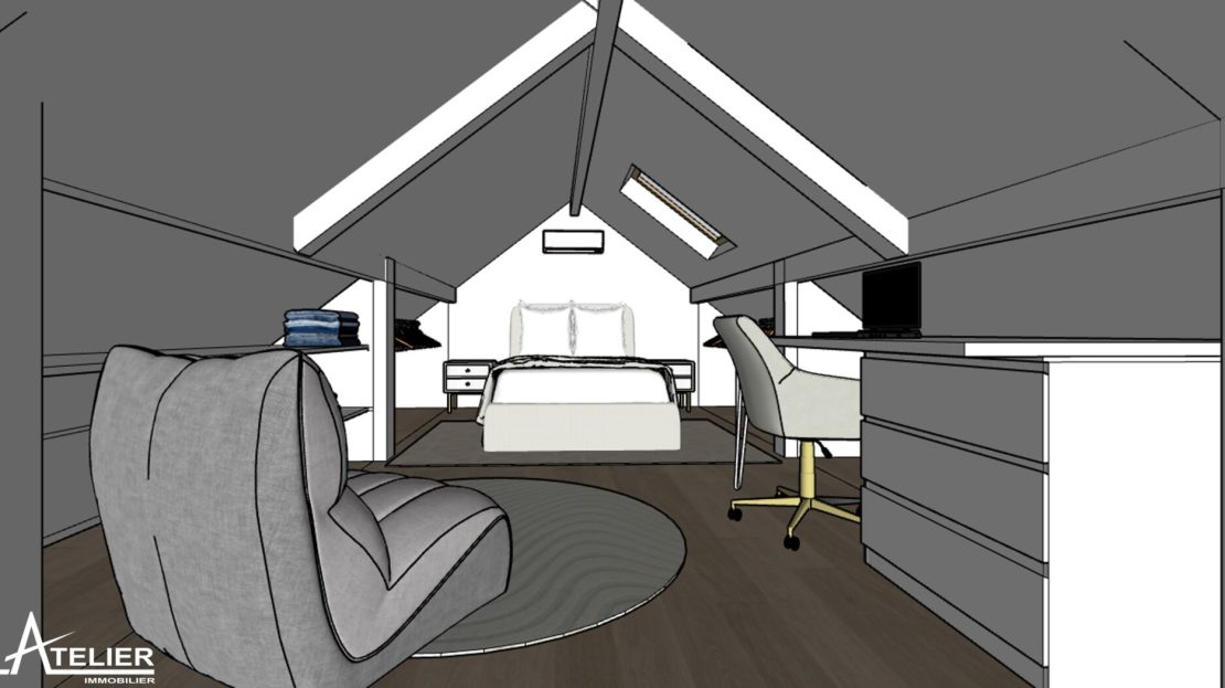 Sous les toits, une pièce supplémentaire offre un espace à aménager selon vos projets : chambre parentale, salle de jeux, bureau ou family room.