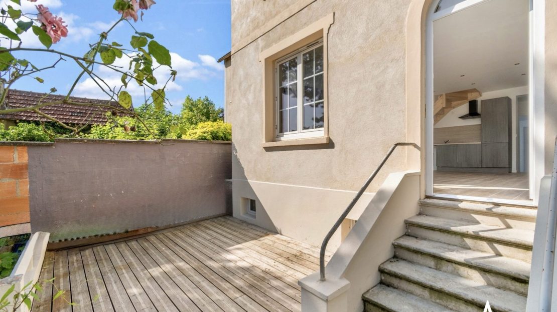 En cheminant le long de l’allée en lames de bois, bordée d’un jardin à imaginer et à créer selon vos envies, vous accédez à une terrasse exposée Est, qui ouvre sur une maison entièrement rénovée de plus de 100 m² (109 m² au sol), située dans une impasse calme sur une parcelle de 205 m². Les transports et les écoles (Ecole Schnapper) se trouvent à proximité.
