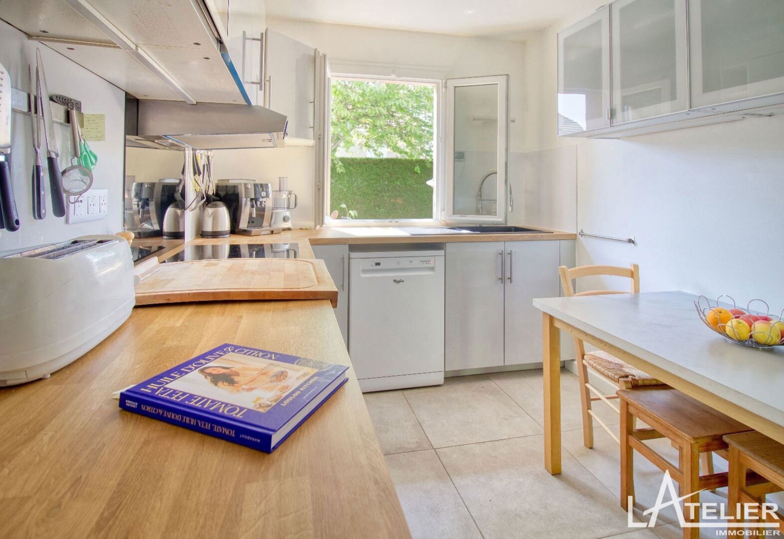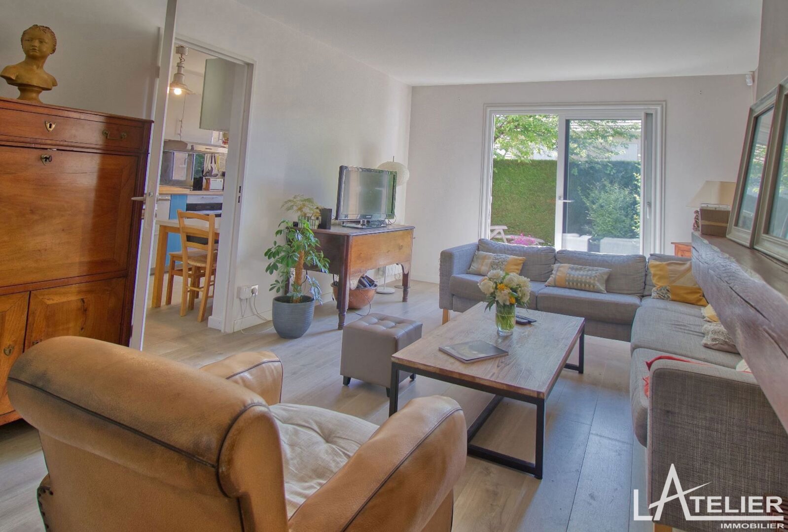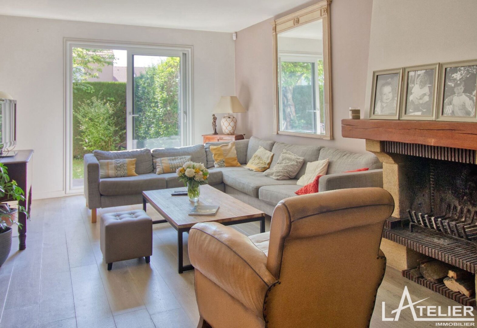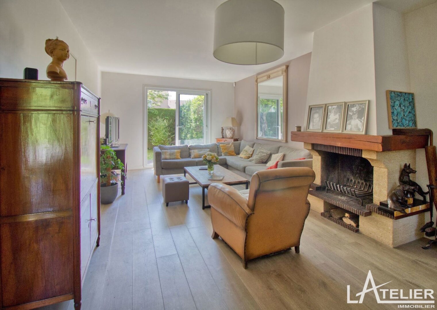 Au rez-de-chaussée, d’une entrée qui dessert un grand espace de vie traversant avec cheminée, donnant à sur une terrasse et jardin exposés Sud Est. Une grande cuisine séparée aménagée ayant accès au garage et l’espace buanderie, wc indépendants.