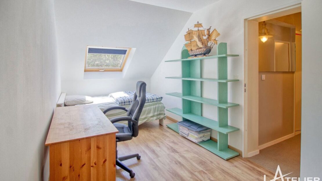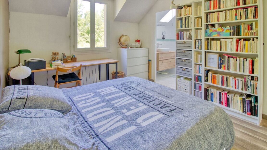 A l’étage on trouve 4 chambres dont 1 chambre parentale disposant de sa propre salle de bains, une salle d’eau et wc privatifs. La maison est très bien distribuée avec de nombreux rangements.