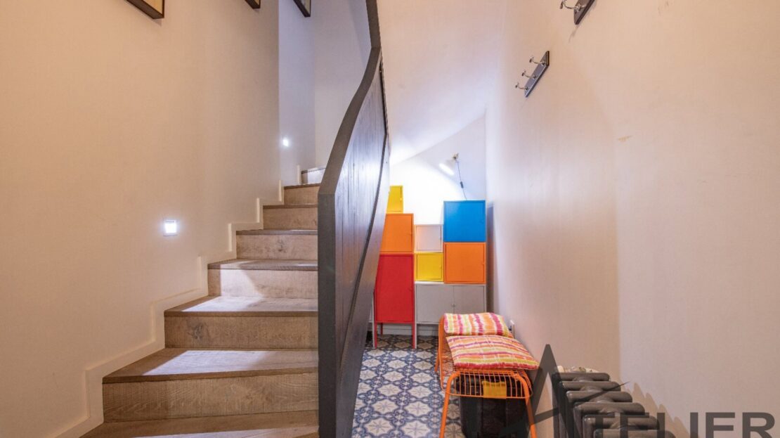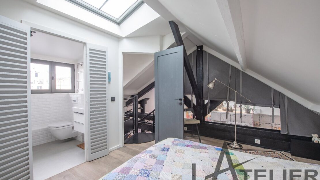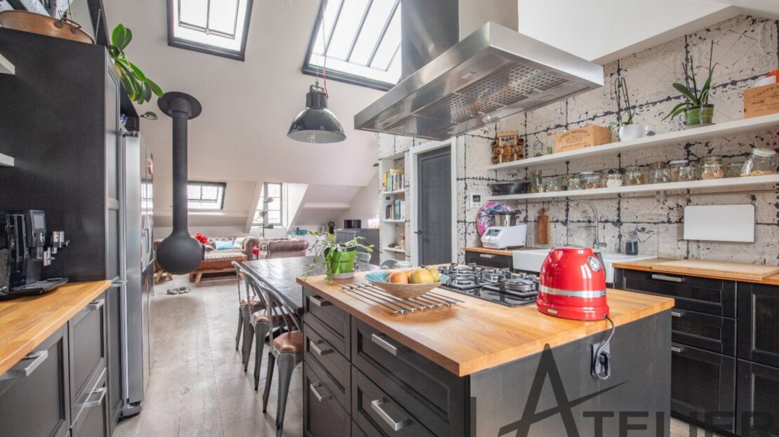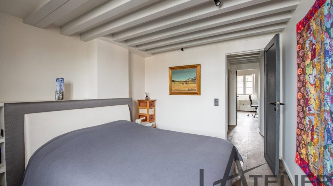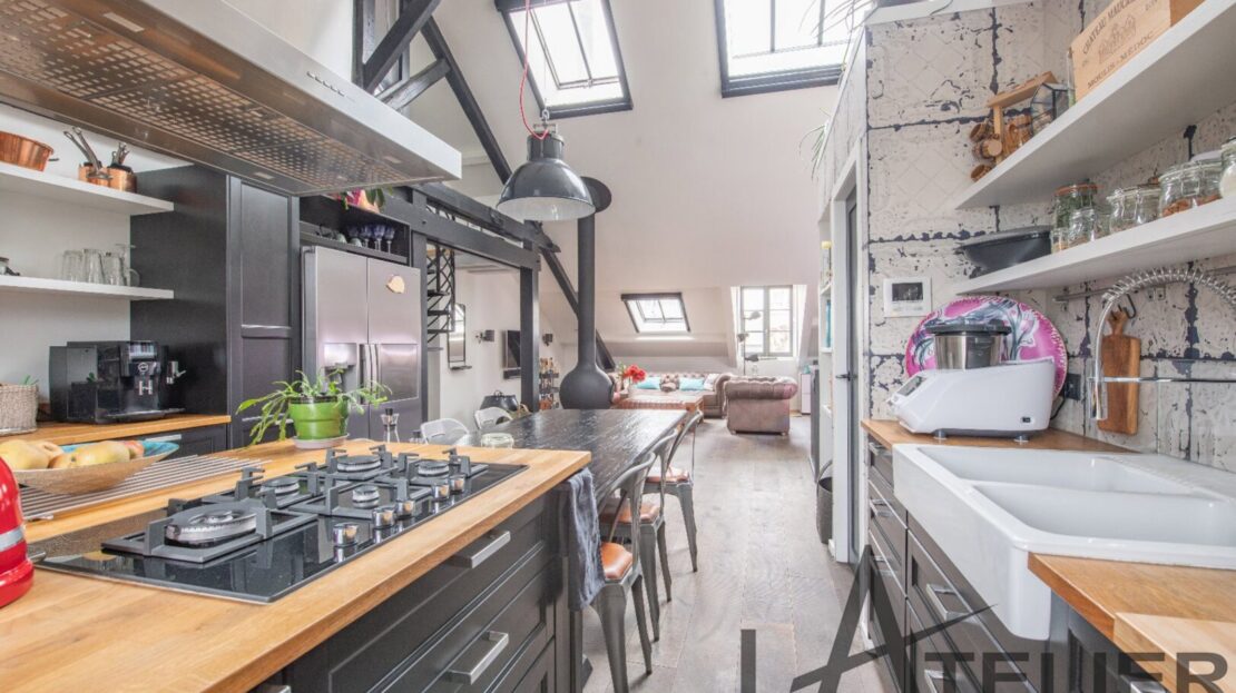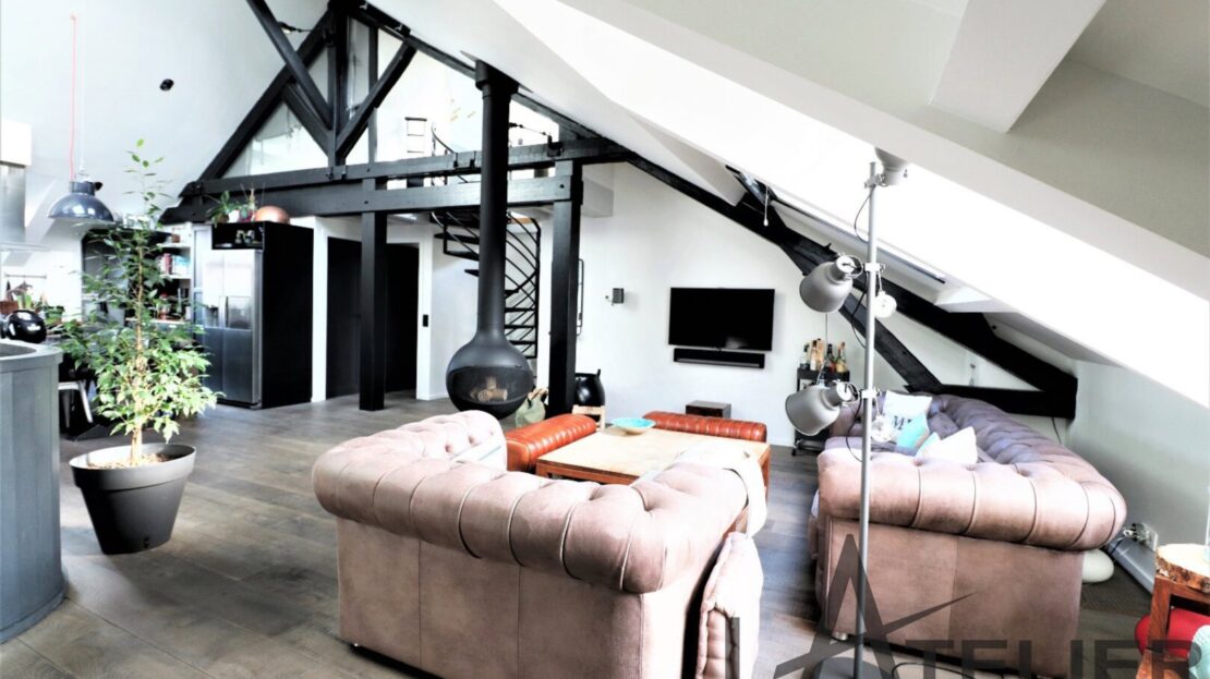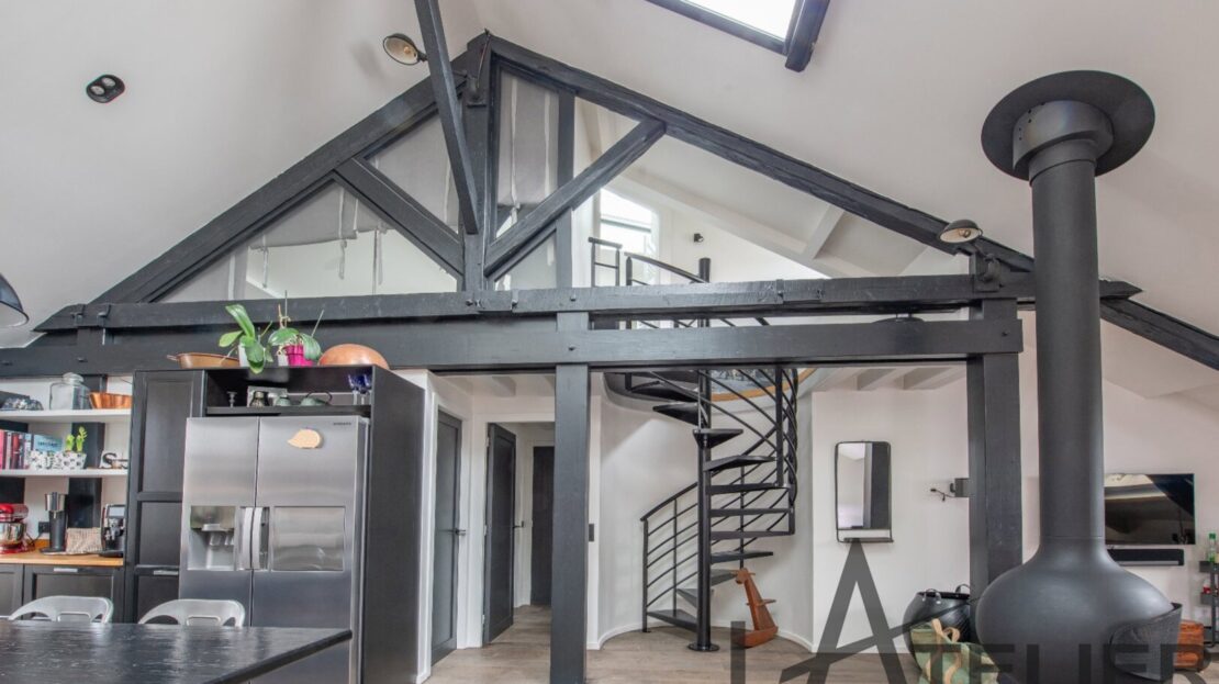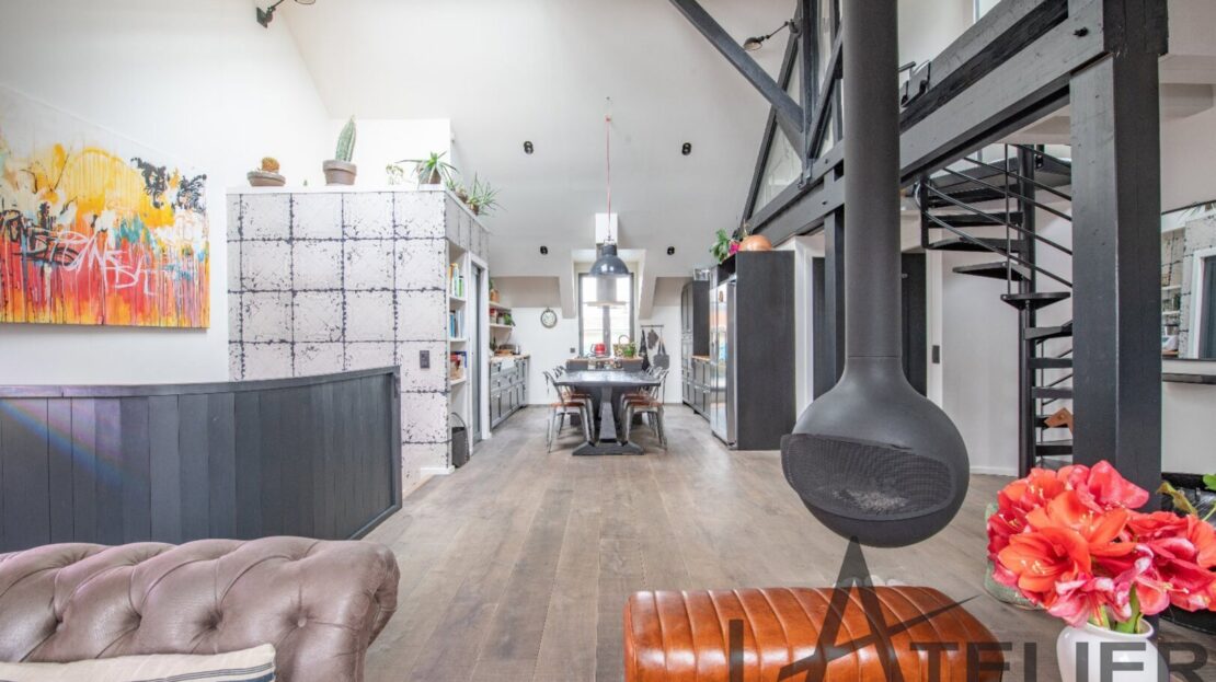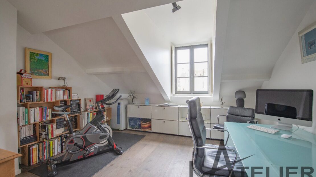 Saint Germain en Laye, Maison de ville 140 m² – Carrez 120.56 m² Situé au 2ème et dernier étage doeune bâtisse classée au Patrimoine Culturel, à 350 m de la place du Marché, 650 m du RER A, et à 8 mn à pied de la Forêt de St Germain je vous présente ce remarquable duplex d’exception avec terrasse, entièrement restauré en 2016 par un cabinet d’architectes : Passé le 1er Hall d’entrée sur rue, on accède ensuite au 1er palier (avec placards) puis au 2ème pour arriver directement dans un espace de vie (48 m²). Très contemporain, lumineux, traversant avec hauteur cathédrale et poutraison on est ici dans un espace cossu à l’atmosphère cocooning : entre le salon avec cheminée suspendue (réalisation Focus) et la grande cuisine dinatoire totalement équipée l’ambiance est unique. La terrasse à l’abri des regards (8.5m²) dans le prolongement de la cuisine est idéale pour une plancha, un apéritif ou quelques plantations. A ce même niveau, un dégagement dessert un 1er dressing aménagé, 1 grande chambre (13 m²) sous la tourelle de la bâtisse, dressing sur mesure, une 2ème chambre (12 m²) avec placard, un WC séparé et une salle d’eau (double douches, double vasques). Une buanderie aménagée et une pièce technique (chaudière gaz) se trouvent aussi à ce même niveau. Ce n?est pas fini … par un escalier en colimaçon on accède à l’espace duplex (14m²) qui offre une belle chambre avec placards et une salle de bains privative avec WC. L’ensemble offre des prestations haut de gamme : parquet brut chêne massif (3 cm), Cheminée pièce unique numérotée Focus, Electroménager Siemens, carreaux de ciments d’origine, menuiseries bois (haute performance phonique et thermique). Pour finir une place de parking (place du marché) est attribuée à l’appartement (concession 20 ans) Bien soumis au statut juridique de la Copropriété. Nb de lots : 2. Charges annuelles de copropriété (Montant moyen annuel quote-part du budget prévisionnel vendeur) : 362 €. Honoraires : 2,29 % TTC inclus charge acquéreur (1 310 000 € hors honoraires) L’Atelier Immobilier – Mareil Marly – Karine INIESTA Karine – 06 48 13 03 66 – Plus d’informations sur www.latelier-immobilier.fr (réf. 78023222)
