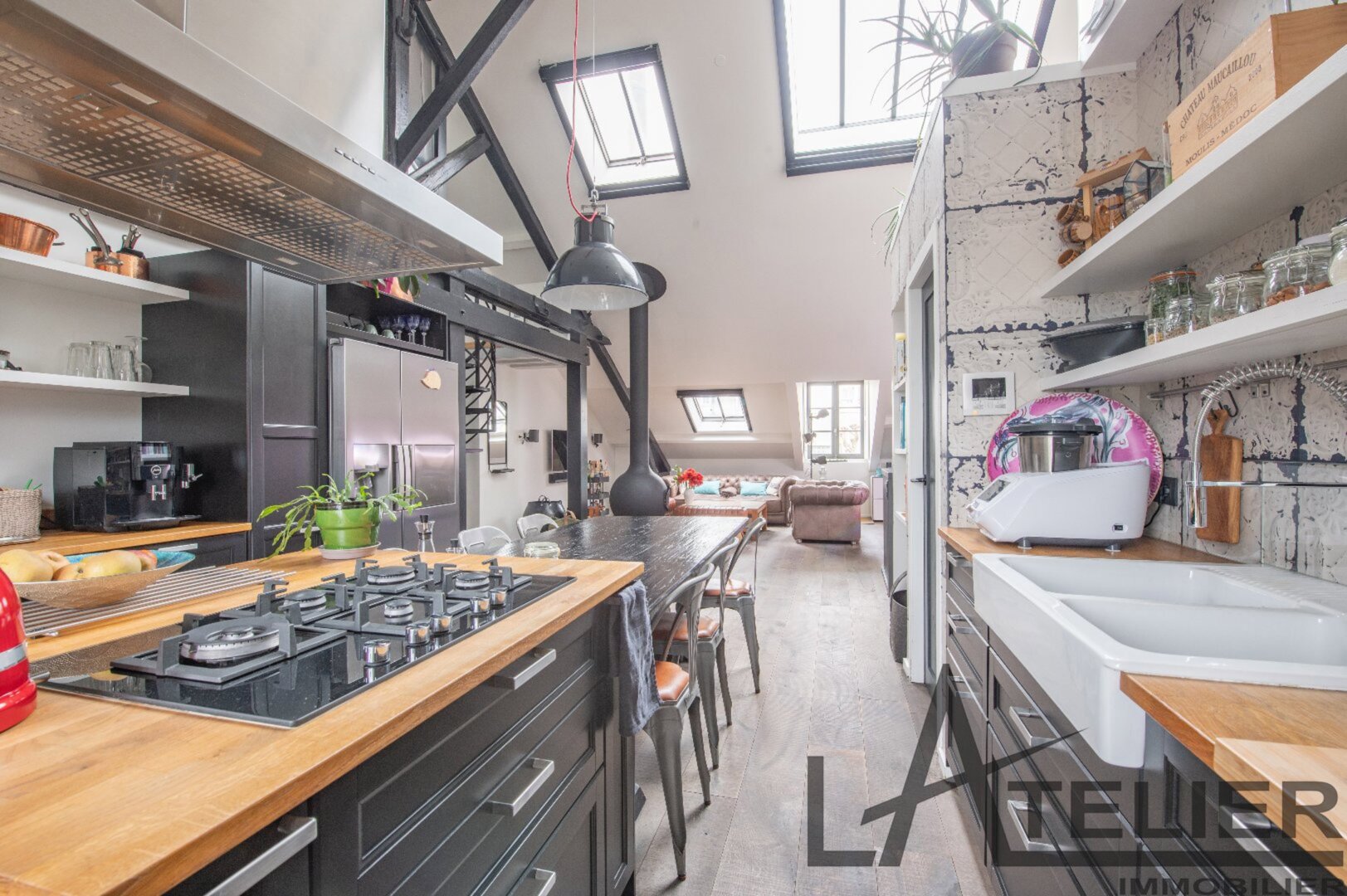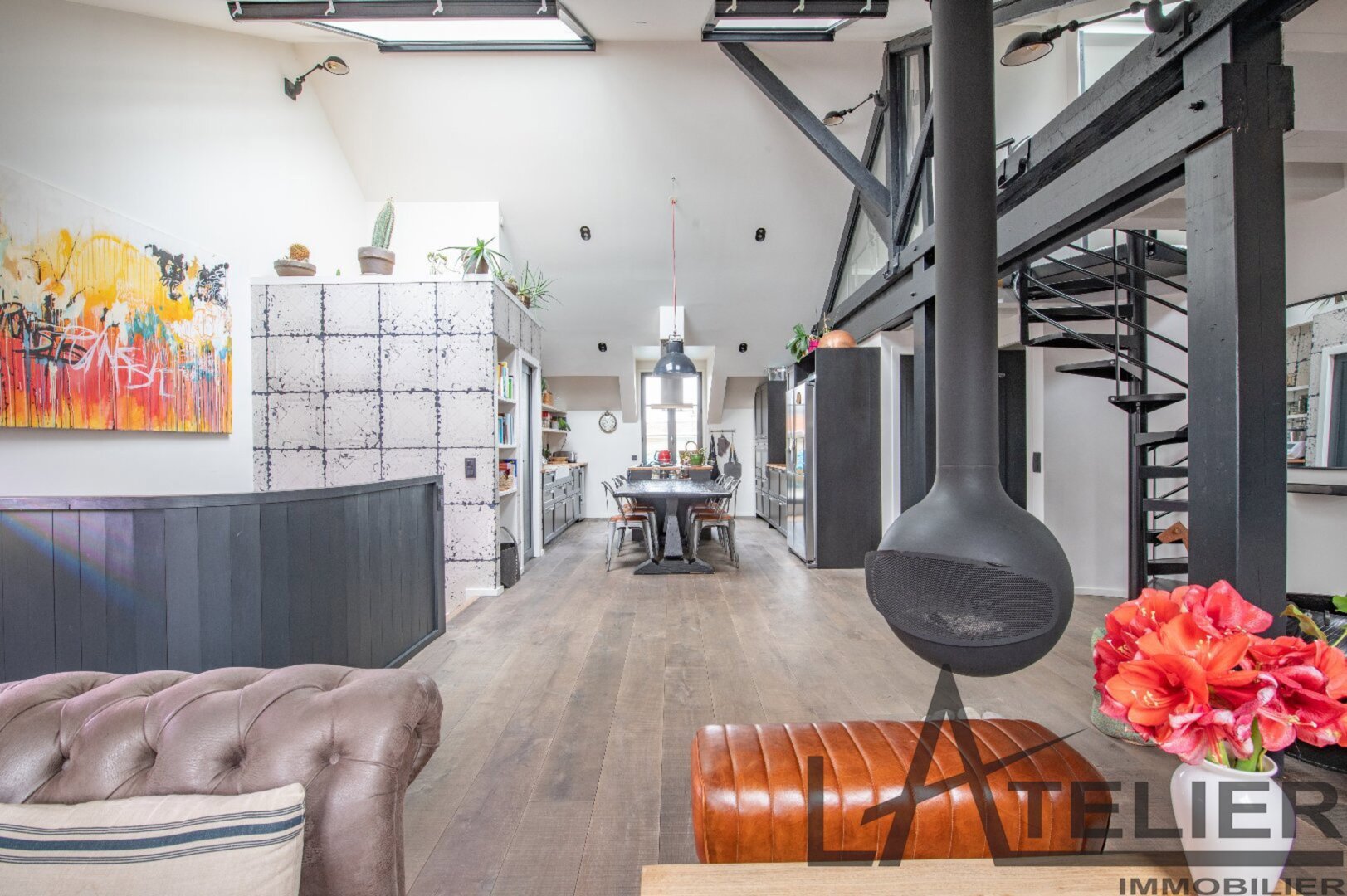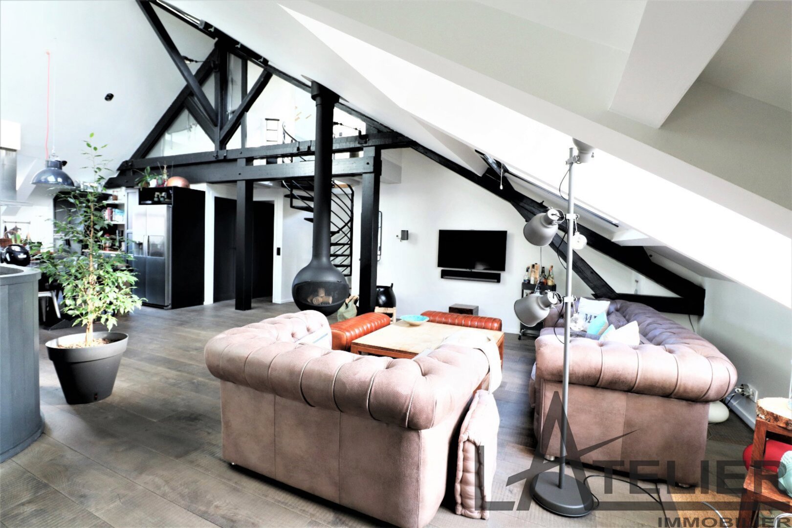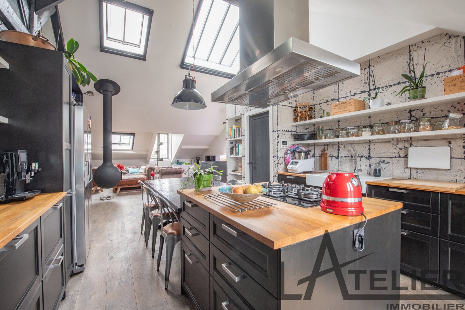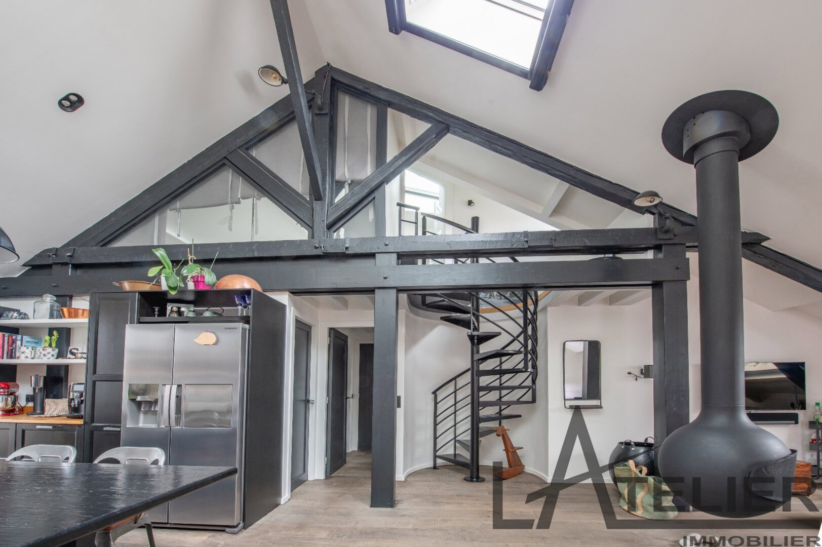 Saint Germain en Laye, Maison de ville 140 m² – Carrez 120.56 m² Situé au 2ème et dernier étage doeune bâtisse classée au Patrimoine Culturel, à 350 m de la place du Marché, 650 m du RER A, et à 8 mn à pied de la Forêt de St Germain je vous présente ce remarquable duplex d’exception avec terrasse, entièrement restauré en 2016 par un cabinet d’architectes : Passé le 1er Hall d’entrée sur rue, on accède ensuite au 1er palier (avec placards) puis au 2ème pour arriver directement dans un espace de vie (48 m²). Très contemporain, lumineux, traversant avec hauteur cathédrale et poutraison on est ici dans un espace cossu à l’atmosphère cocooning : entre le salon avec cheminée suspendue (réalisation Focus) et la grande cuisine dinatoire totalement équipée l’ambiance est unique. La terrasse à l’abri des regards (8.5m²) dans le prolongement de la cuisine est idéale pour une plancha, un apéritif ou quelques plantations. A ce même niveau, un dégagement dessert un 1er dressing aménagé, 1 grande chambre (13 m²) sous la tourelle de la bâtisse, dressing sur mesure, une 2ème chambre (12 m²) avec placard, un WC séparé et une salle d’eau (double douches, double vasques). Une buanderie aménagée et une pièce technique (chaudière gaz) se trouvent aussi à ce même niveau. Ce n?est pas fini … par un escalier en colimaçon on accède à l’espace duplex (14m²) qui offre une belle chambre avec placards et une salle de bains privative avec WC. L’ensemble offre des prestations haut de gamme : parquet brut chêne massif (3 cm), Cheminée pièce unique numérotée Focus, Electroménager Siemens, carreaux de ciments d’origine, menuiseries bois (haute performance phonique et thermique). Pour finir une place de parking (place du marché) est attribuée à l’appartement (concession 20 ans) Bien soumis au statut juridique de la Copropriété. Nb de lots : 2. Charges annuelles de copropriété (Montant moyen annuel quote-part du budget prévisionnel vendeur) : 362 €. Honoraires : 2,29 % TTC inclus charge acquéreur (1 310 000 € hors honoraires) L’Atelier Immobilier – Mareil Marly – Karine INIESTA Karine – 06 48 13 03 66 – Plus d’informations sur www.latelier-immobilier.fr (réf. 78023222)