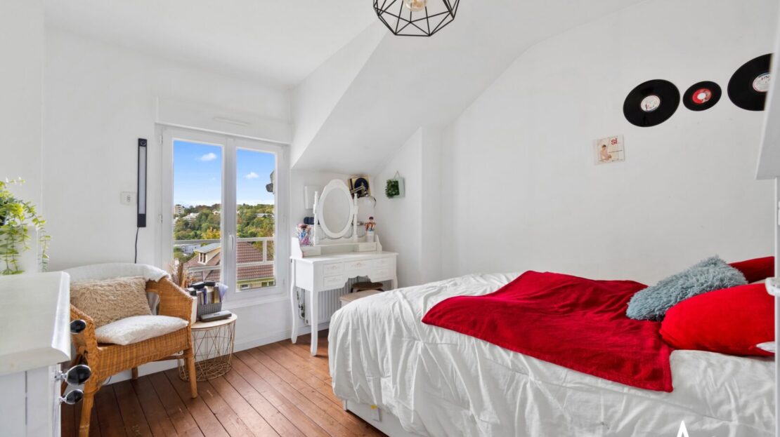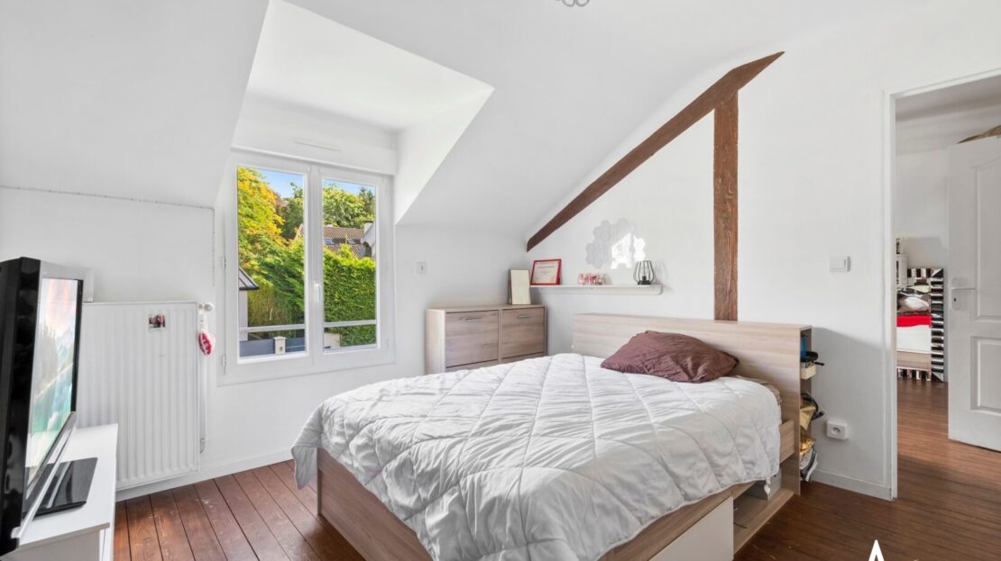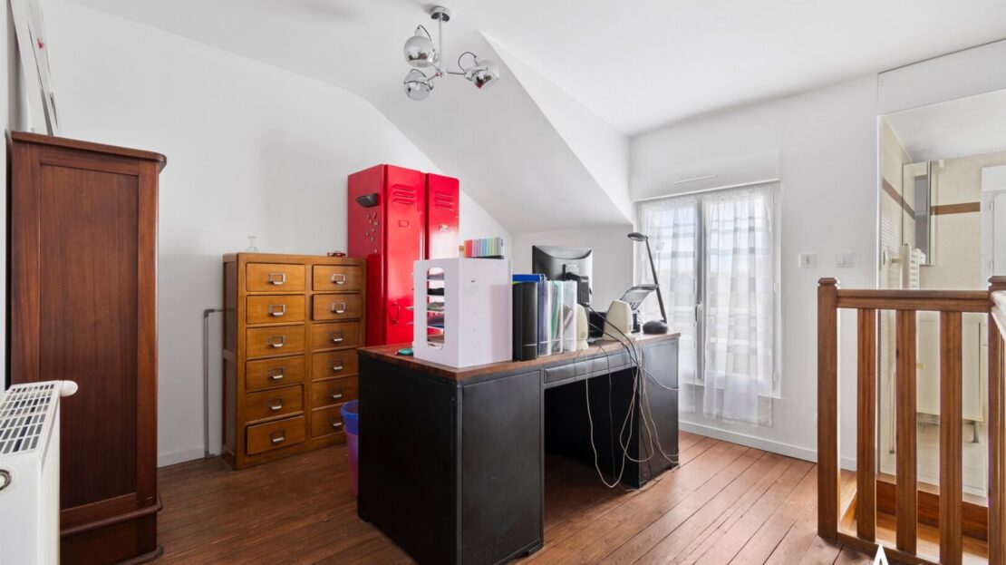 À l’étage, l’espace nuit est composé de trois chambres confortables, ainsi qu’une salle de douche. Le palier, large et dégagé, offre un espace polyvalent qui peut facilement être aménagé en bureau ou en salle de jeux pour les enfants.
