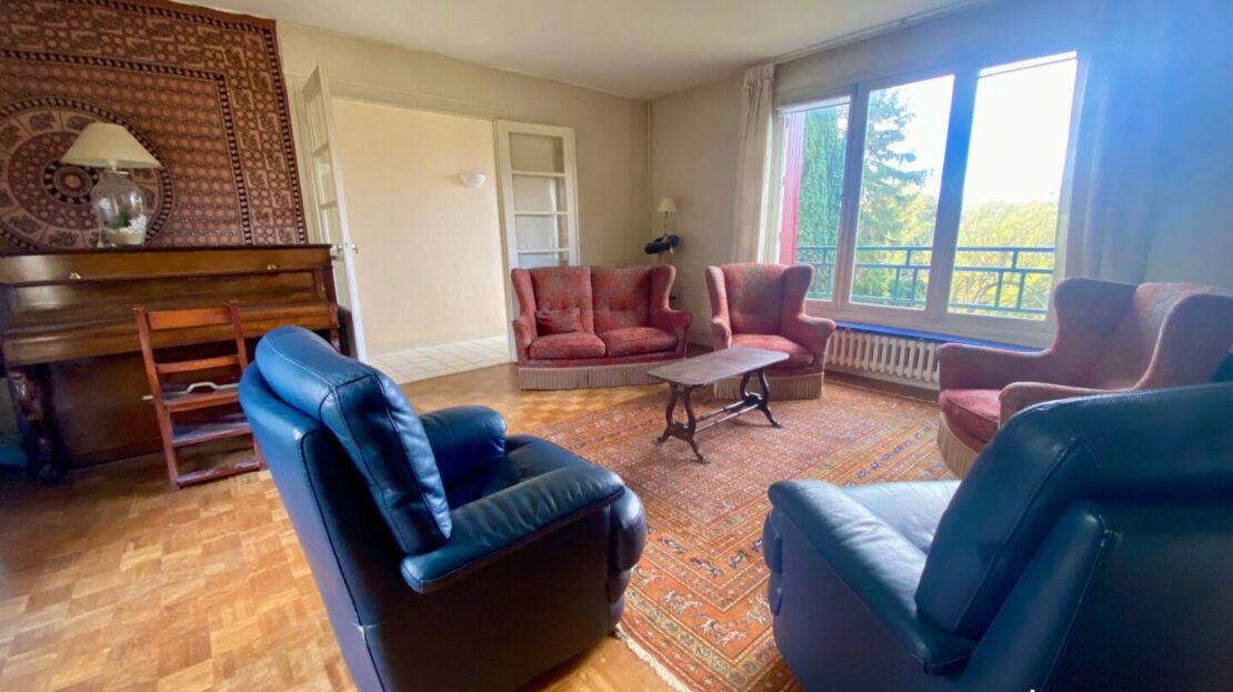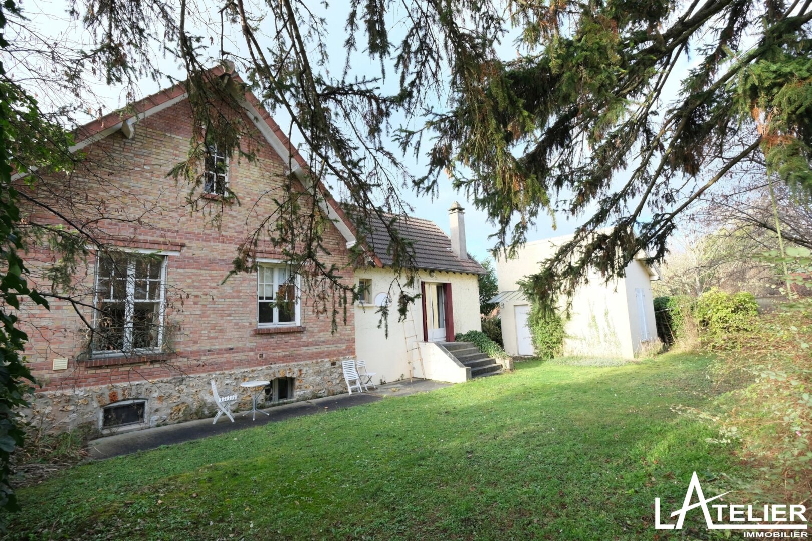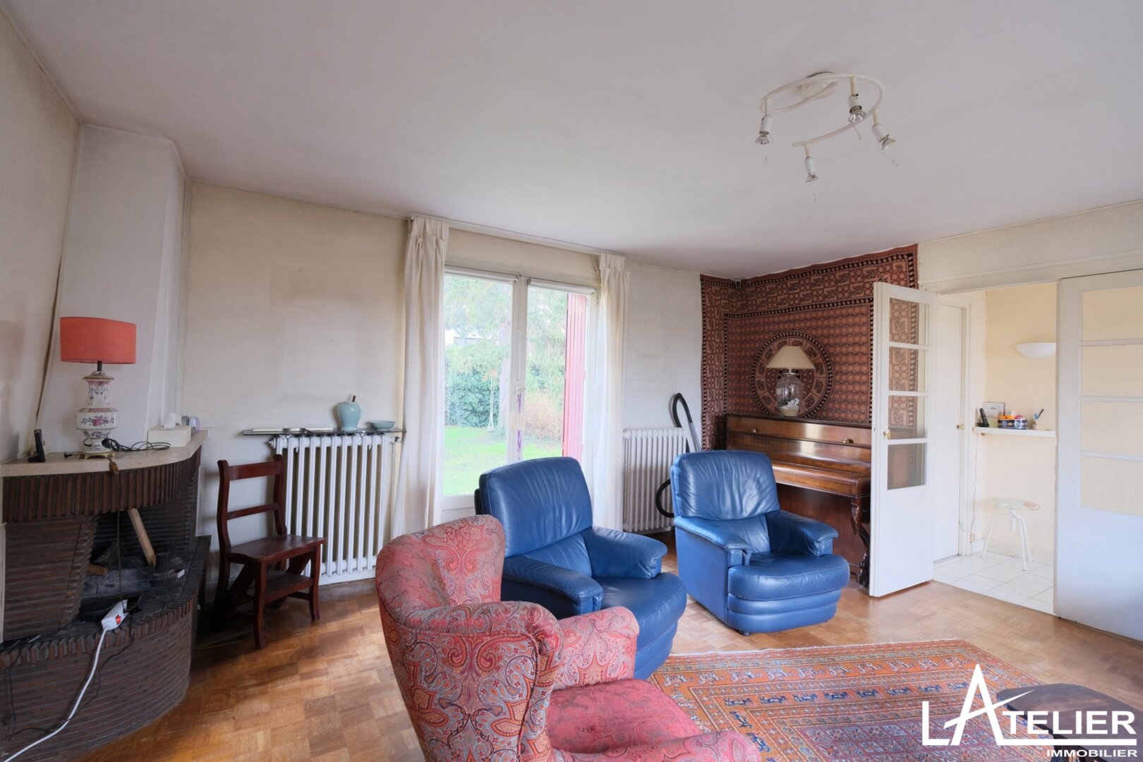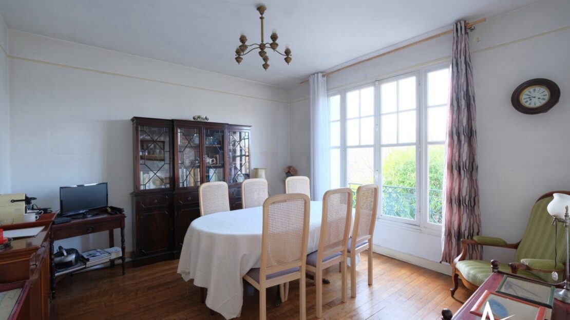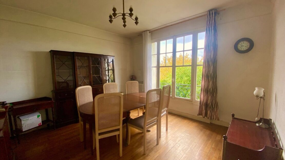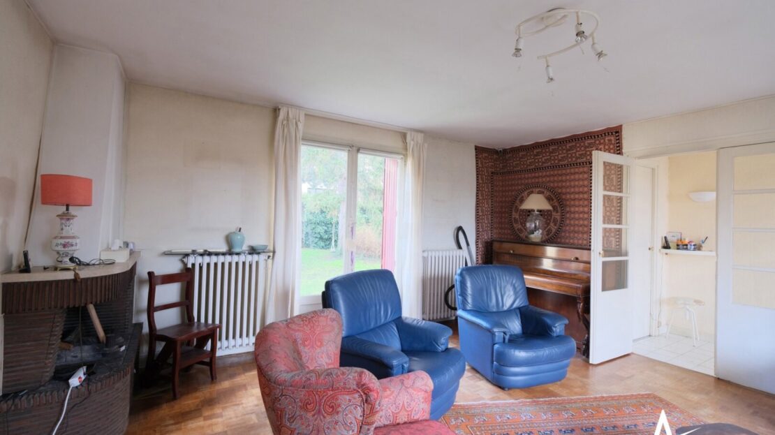 Dans l’extension des années 60, le salon avec cheminée de 25m2 est traversant, il donne accès sur le jardin arrière. Et pourquoi pas, imaginer une extension en hauteur avec les combles aménageables ou une grande verrière ??