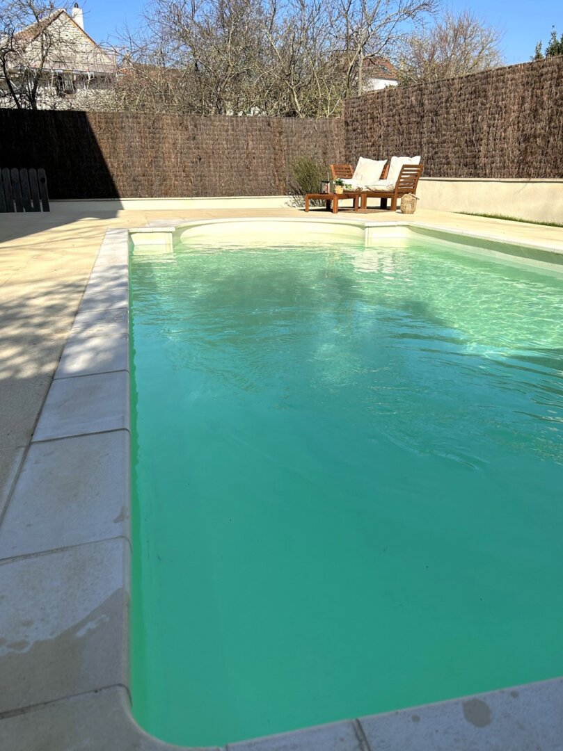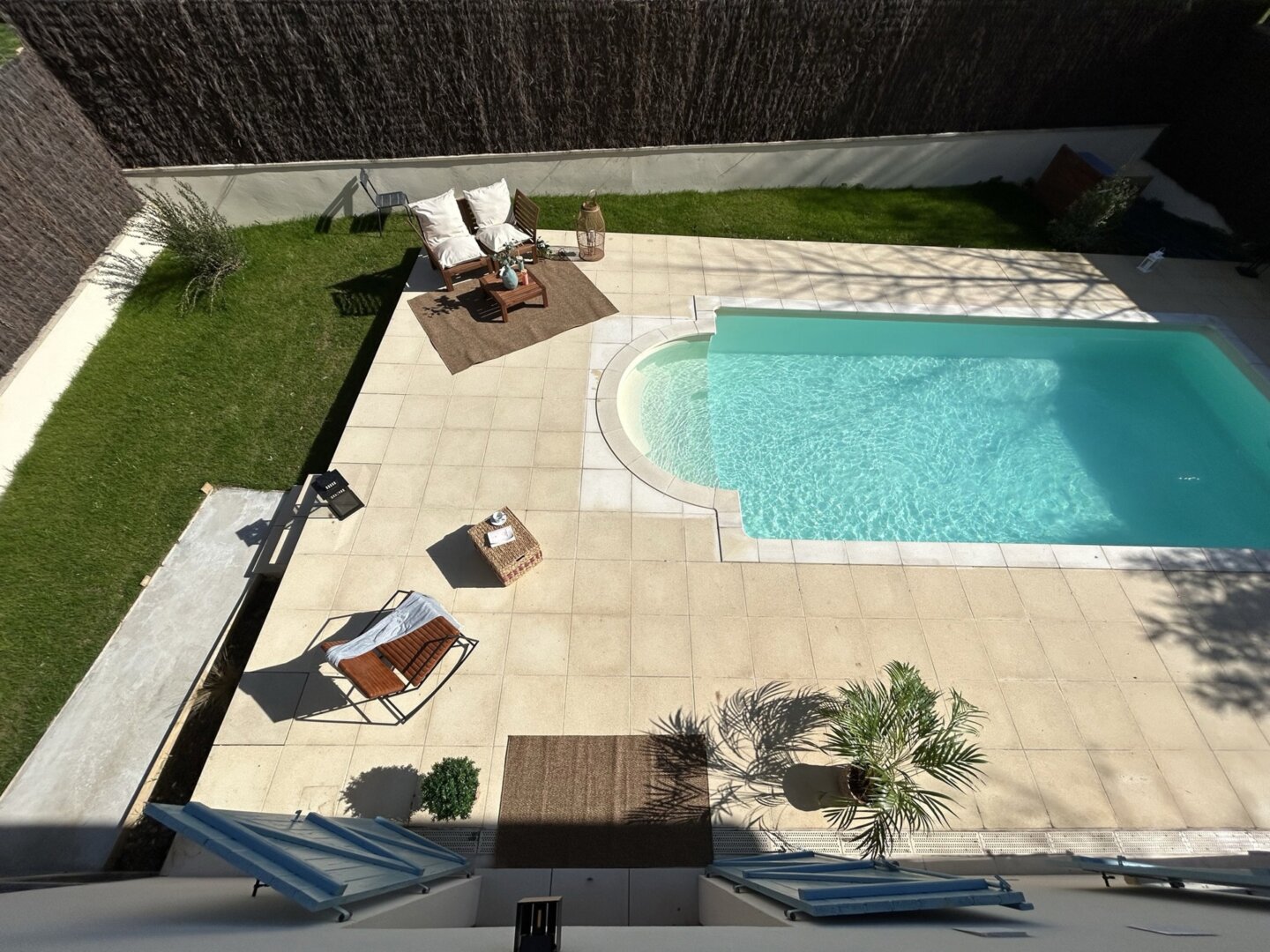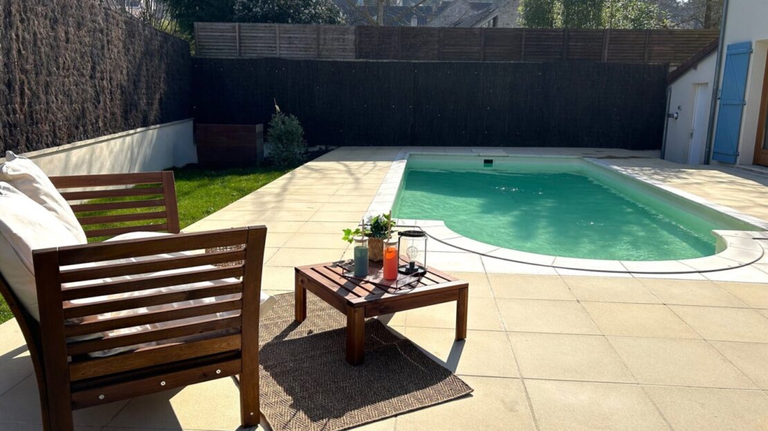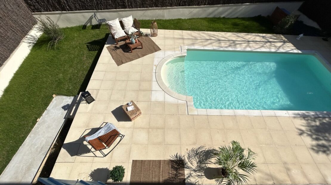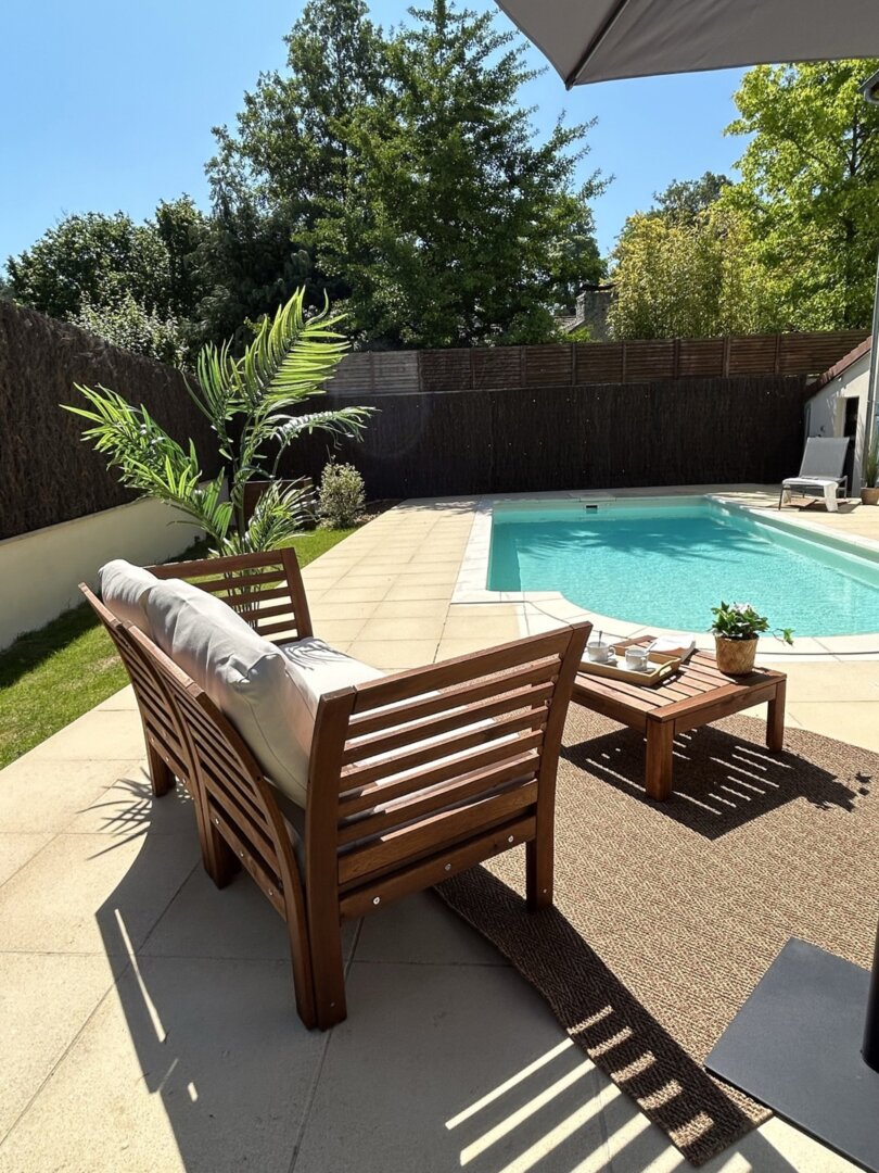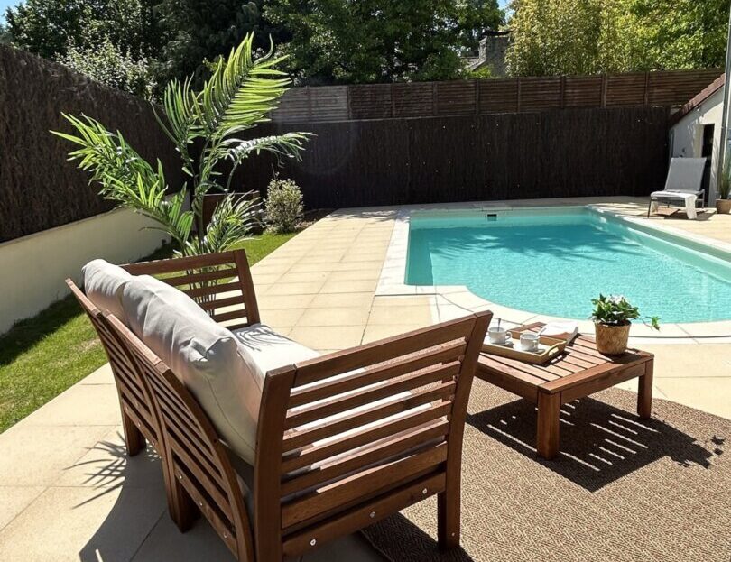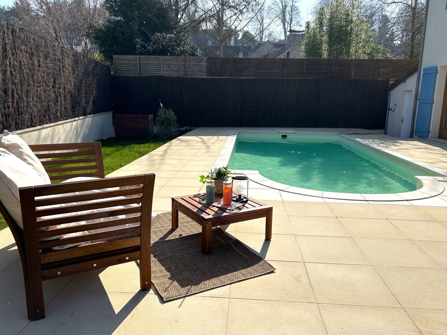 L’aménagement extérieur est aussi soigné que l’intérieur de la maison ! les grandes terrasses et la piscine chauffée (3,5 x 7m) confèrent à l’ensemble un air de vacances !