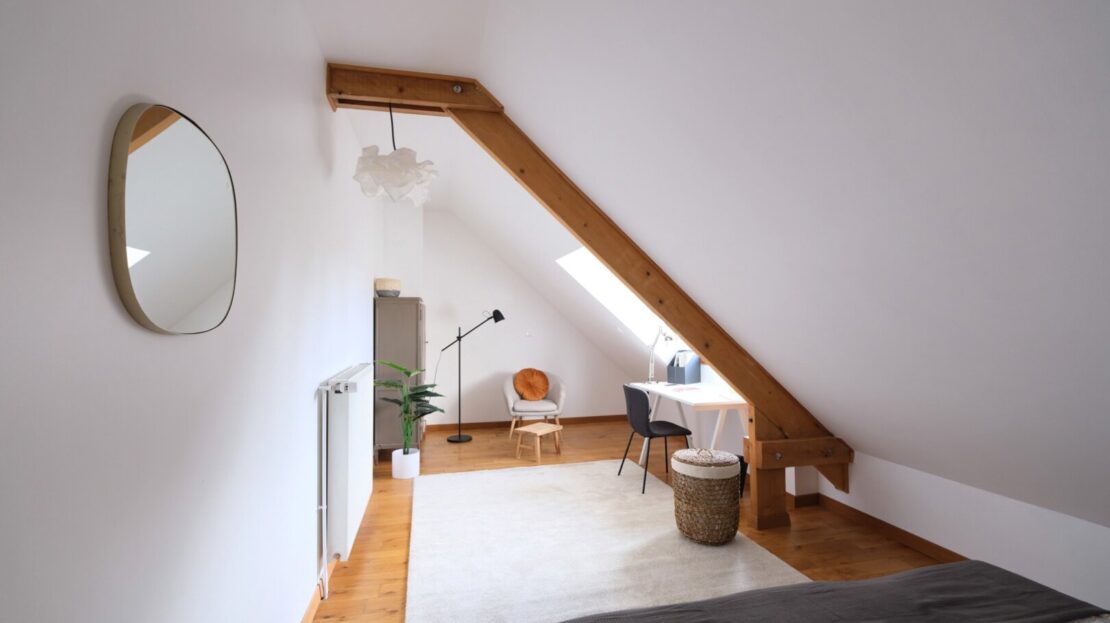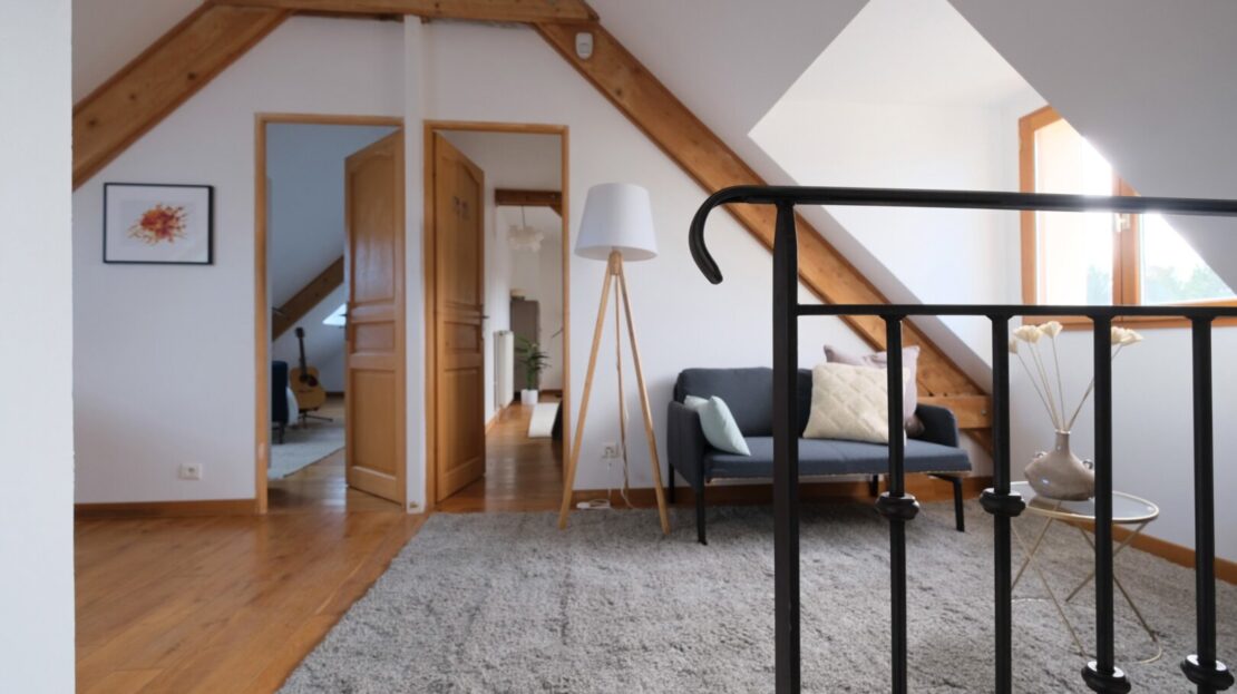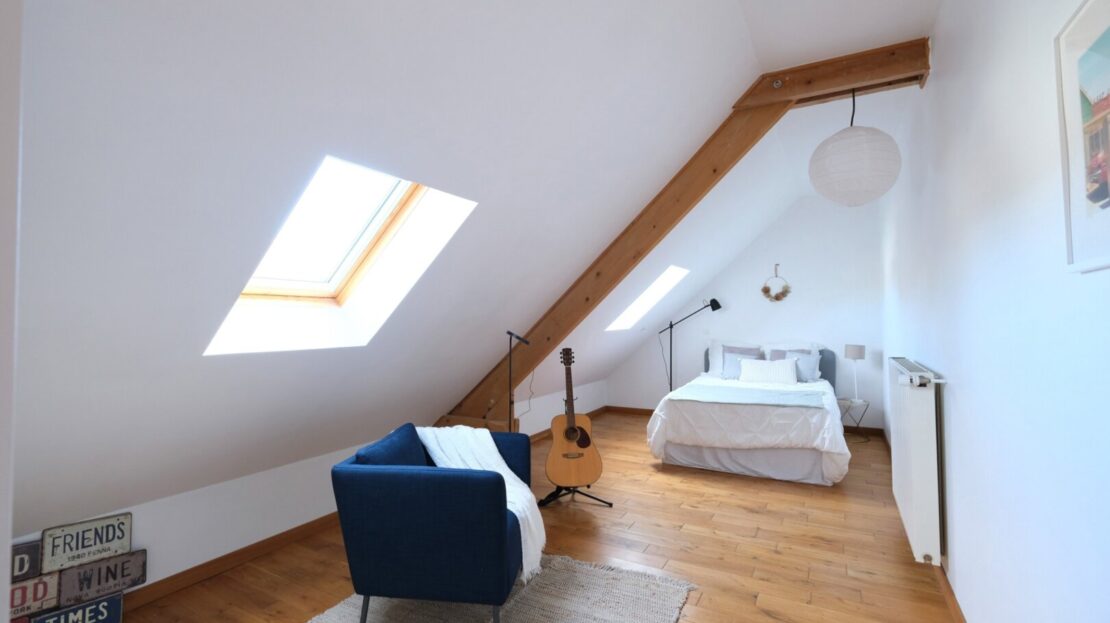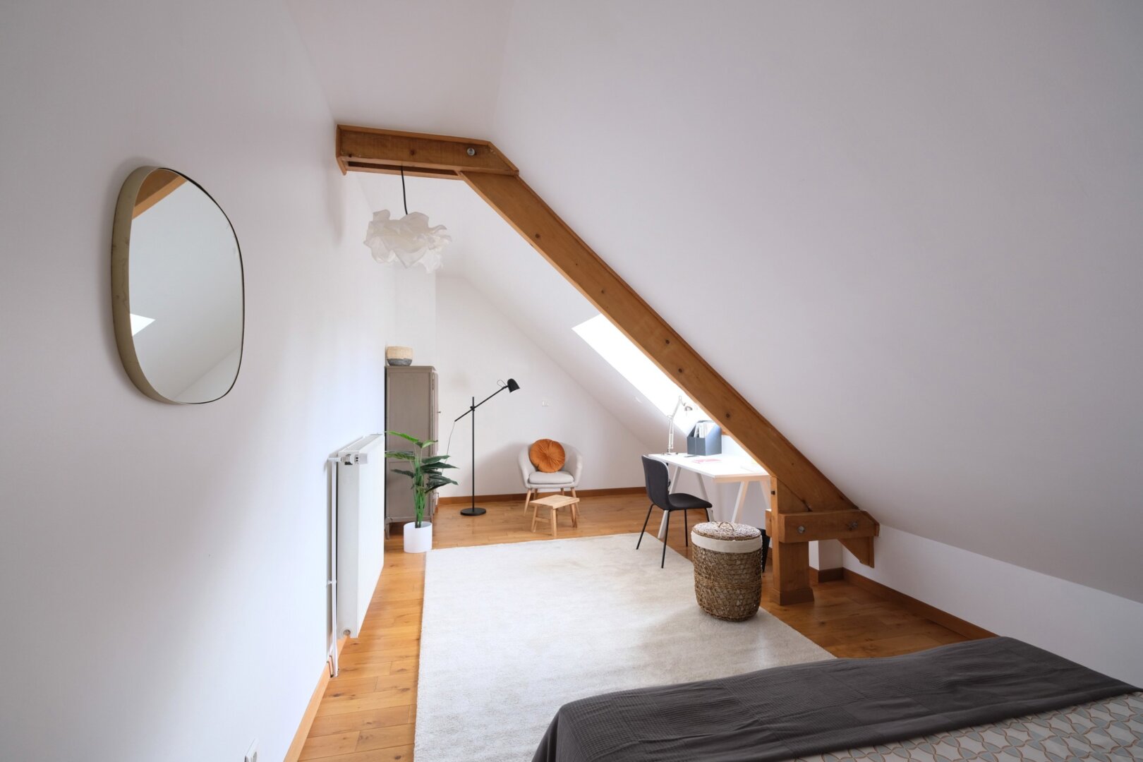 Le 2ème étage propose 2 belles chambres, un grand palier et une salle d’eau avec wc.