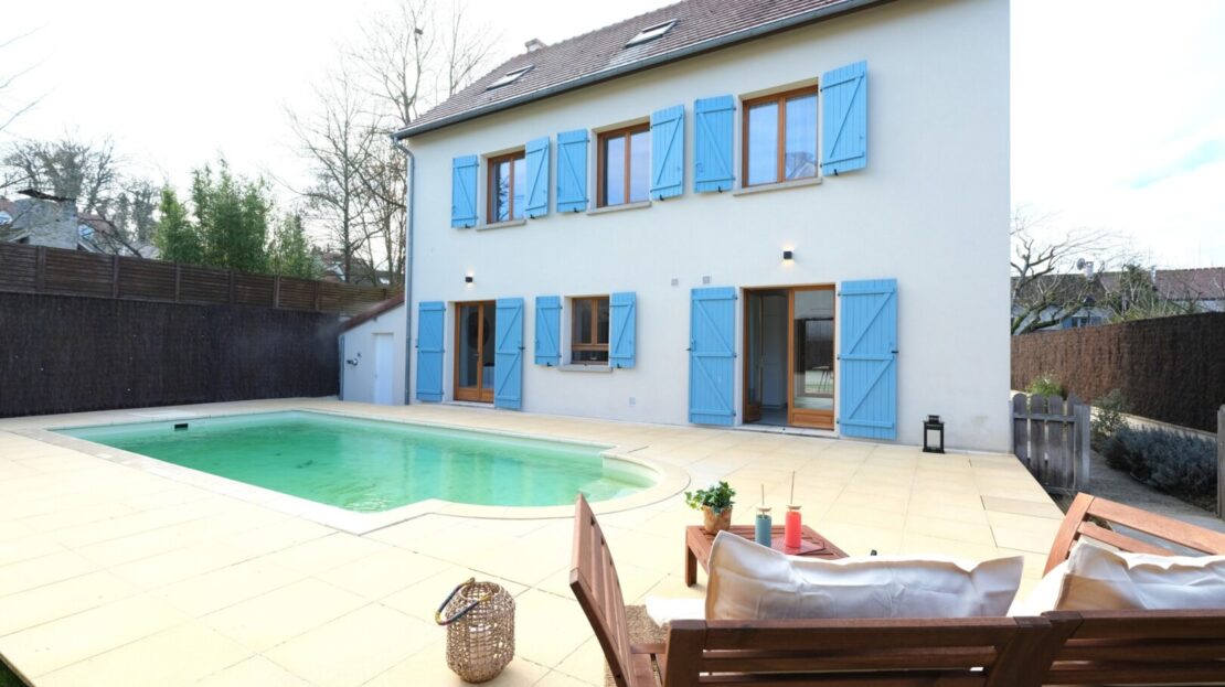 Exclusif à Crespières ! Idéalement située au cœur du charmant village de Crespières, dans un environnement bucolique et préservé, à pied des commodités, école, commerces de proximité, bus, je vous présente une superbe maison familiale avec piscine :