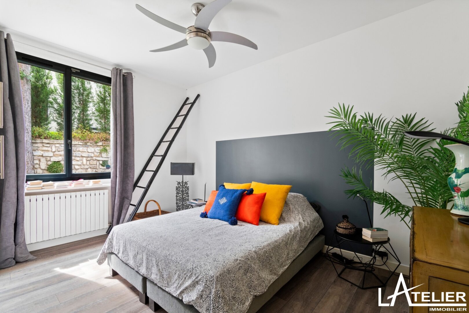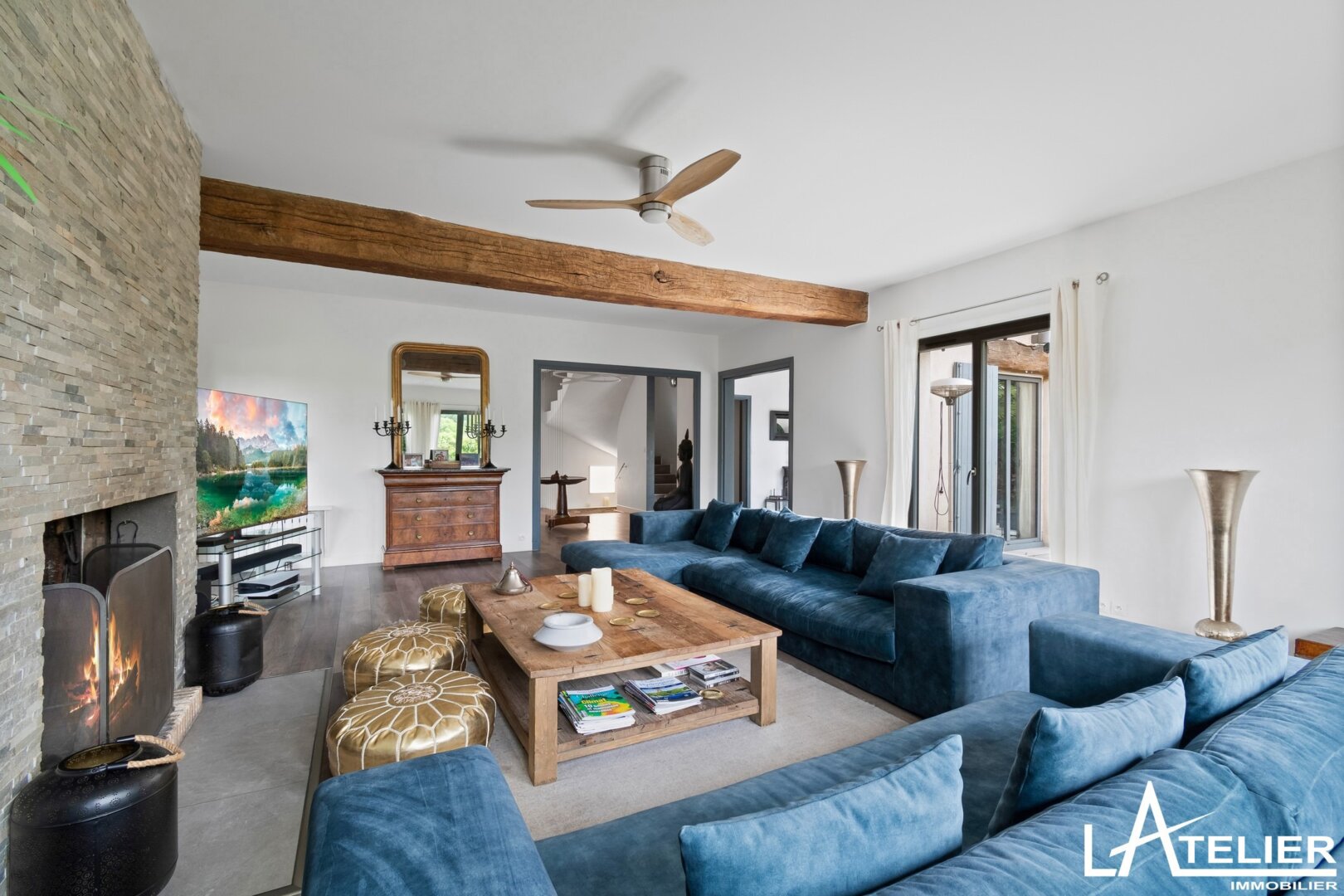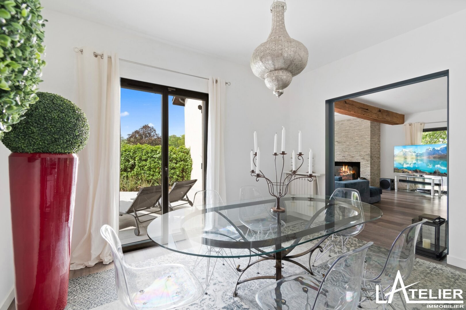 Au caractère unique, résolument contemporain et haut de gamme, cette maison familiale, discrètement nichée dans un jardin très arboré et sans aucun vis à vis réserve de belles surprises. Organisée sur 3 niveaux et entièrement rénovée en 2019, l’esprit à la fois moderne, chic et authentique nous touche dès le hall d’entrée avec la superbe perspective des espaces de vie donnant sur la terrasse et le jardin, les larges circulations entre les étages, et les espaces indépendants pour toute la famille : Pièces de réception d’environ 60 m2 avec cheminée magistrale, cuisine séparée totalement équipée. Espace parentale indépendant avec chambre, bureau, salle de bains/douche/wc.