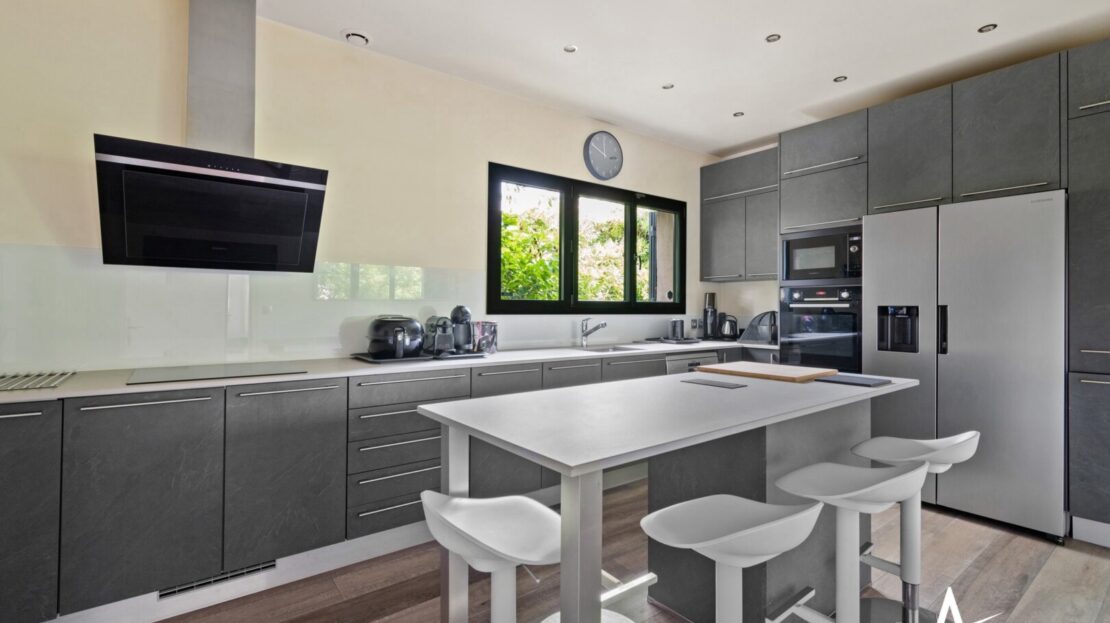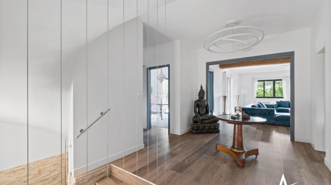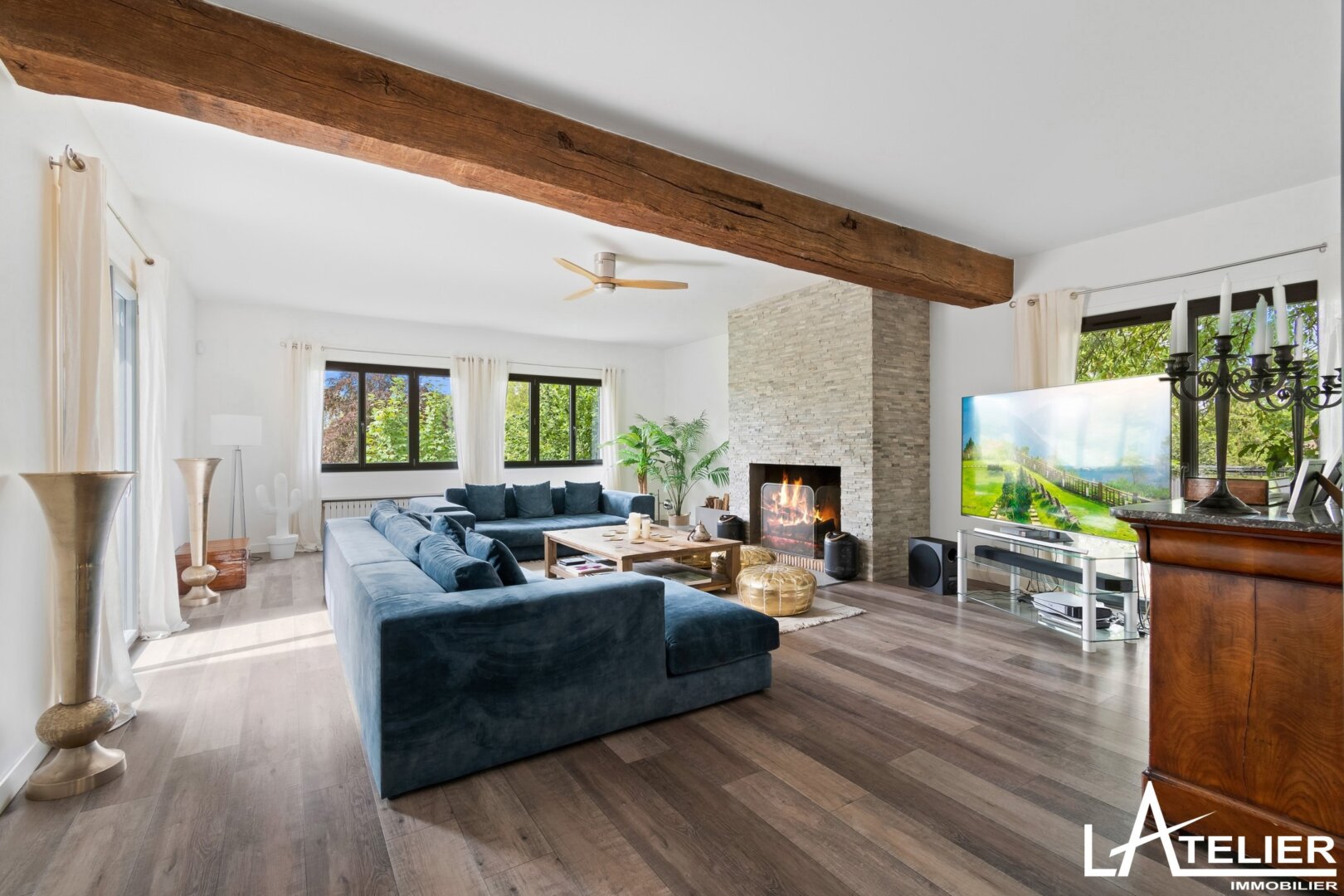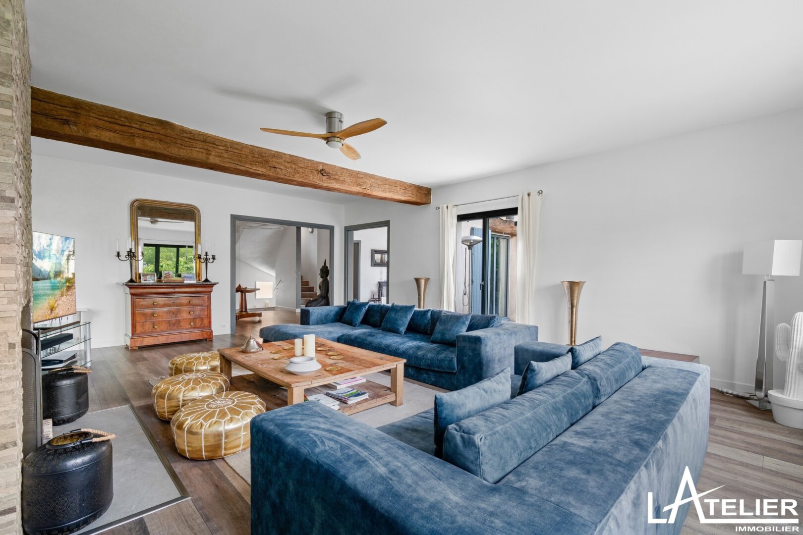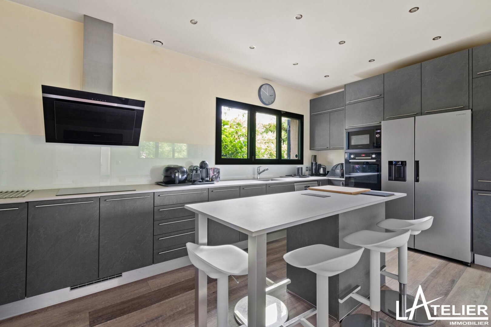 Au caractère unique, résolument contemporain et haut de gamme, cette maison familiale, discrètement nichée dans un jardin très arboré et sans aucun vis à vis réserve de belles surprises. Organisée sur 3 niveaux et entièrement rénovée en 2019, l’esprit à la fois moderne, chic et authentique nous touche dès le hall d’entrée avec la superbe perspective des espaces de vie donnant sur la terrasse et le jardin, les larges circulations entre les étages, et les espaces indépendants pour toute la famille : Pièces de réception d’environ 60 m2 avec cheminée magistrale, cuisine séparée totalement équipée. Espace parentale indépendant avec chambre, bureau, salle de bains/douche/wc.