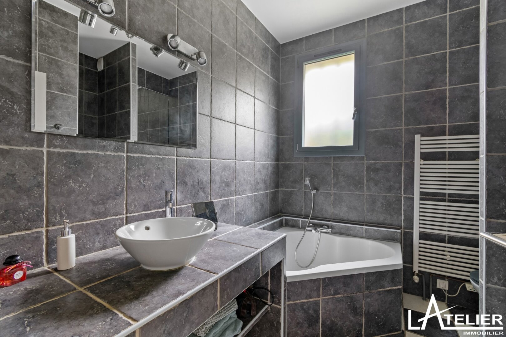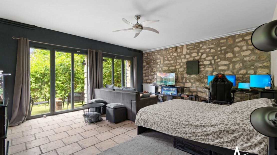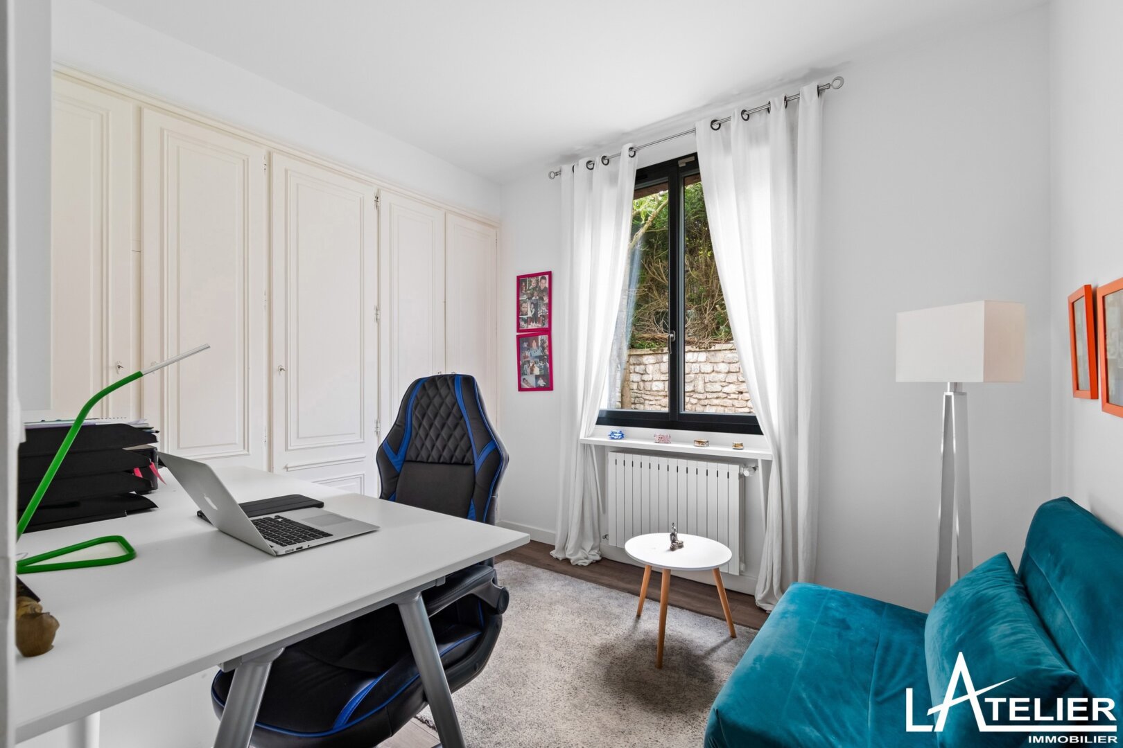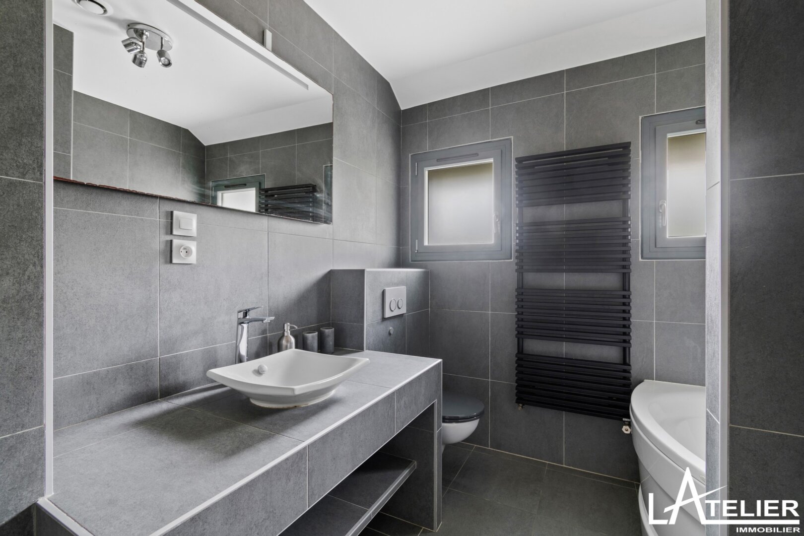 Le 1er étage offre 3 belles chambres, 2 très grands dressings aménagés, une salle de bains/douche/wc. Le niveau du rez de jardin propose une suite indépendante avec chambre / salon de 28 m2, salle d’eau privative, wc et accès jardin.