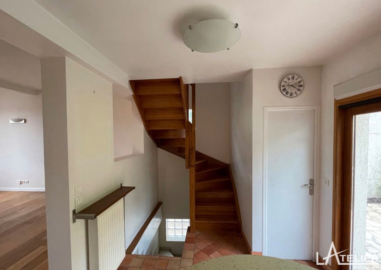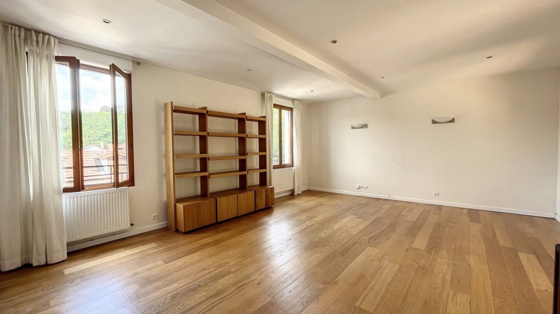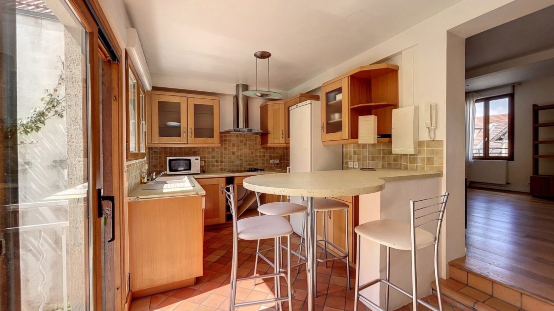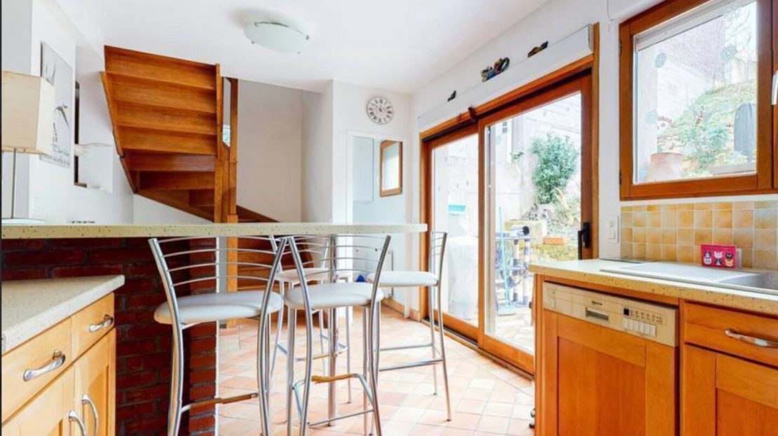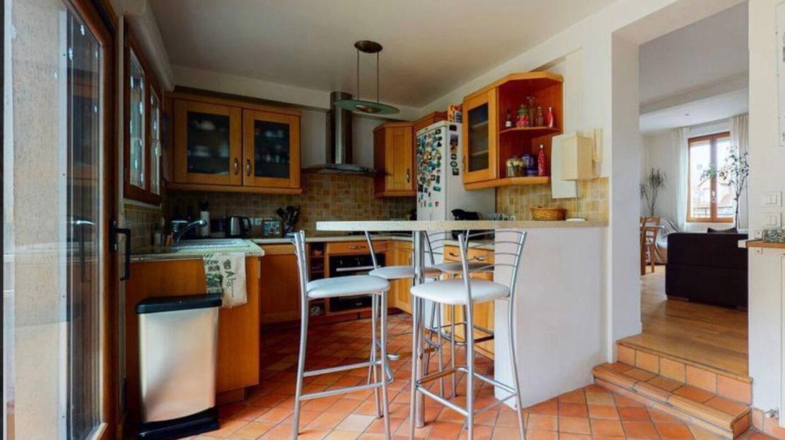 Au deuxième niveau, la vaste pièce de vie lumineuse, exposée est-ouest, s’ouvre sur une terrasse avec barbecue et un jardin ensoleillé à l’abris des regards, parfaits pour des moments de détente en extérieur. La cuisine ouverte apporte une touche de convivialité à cet espace de vie.