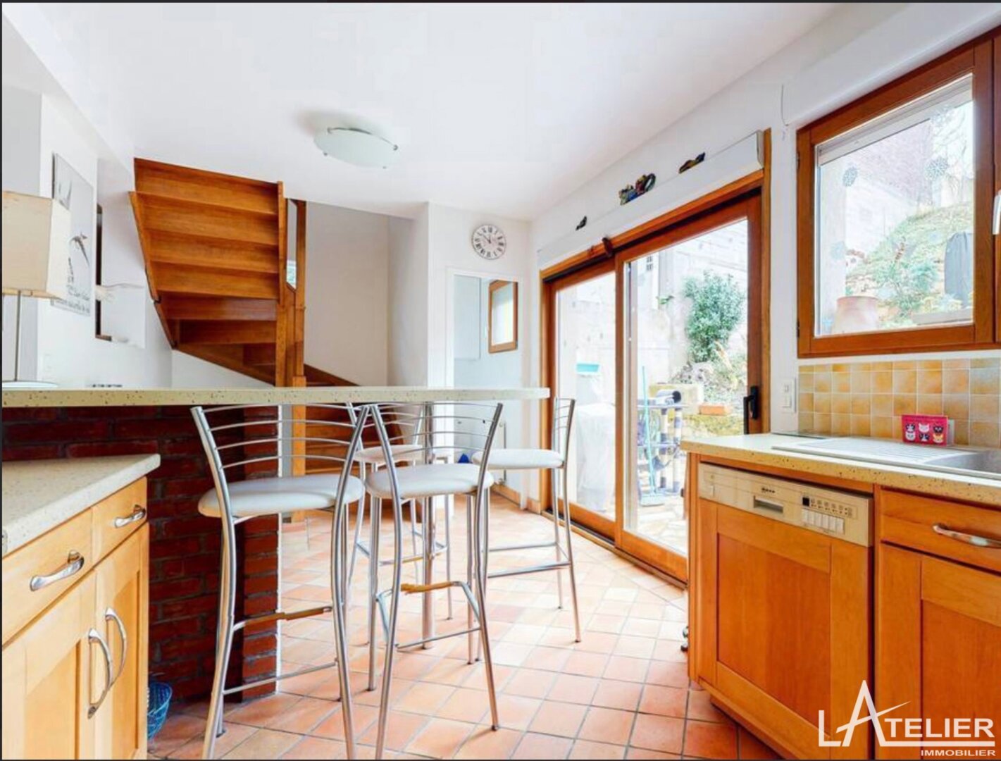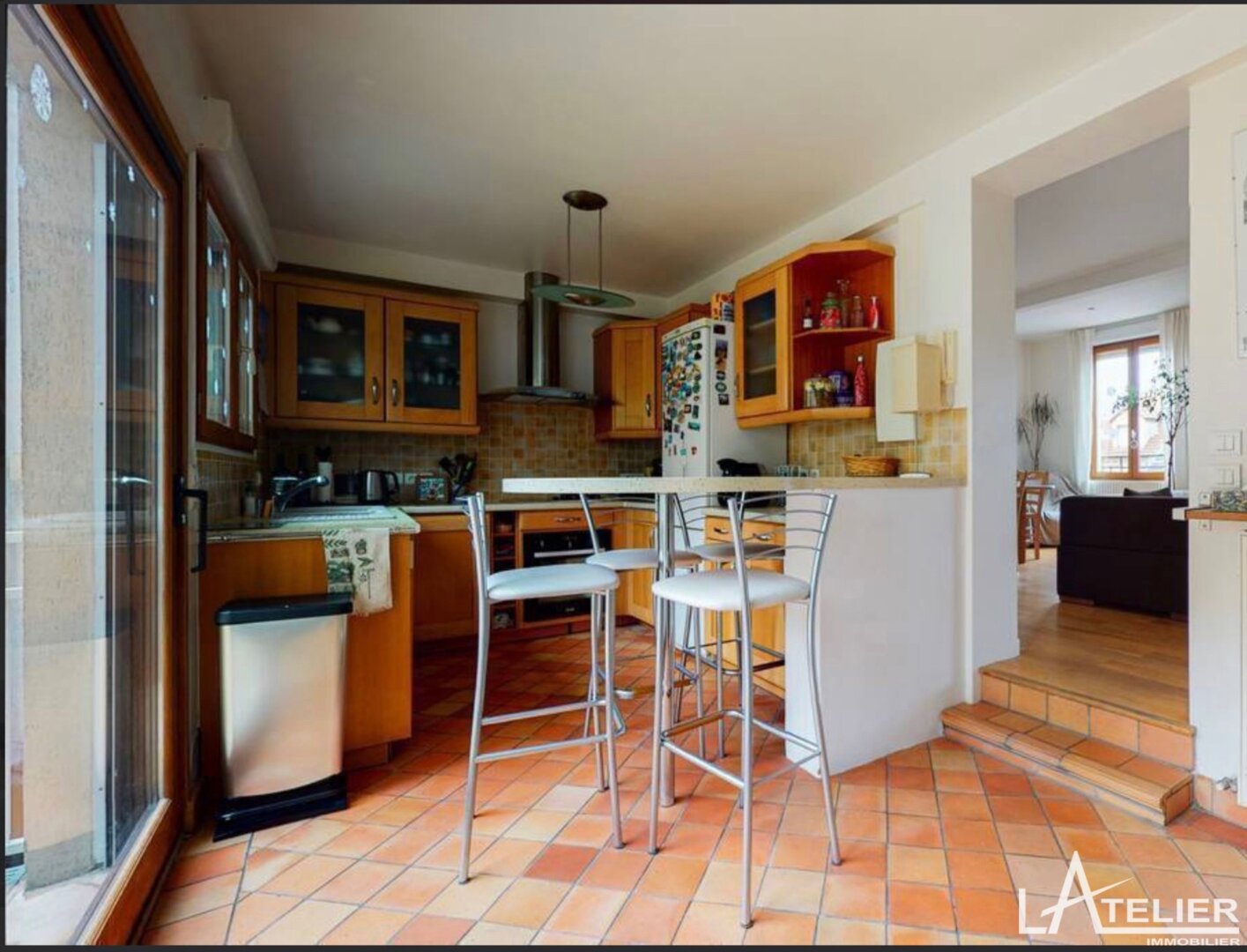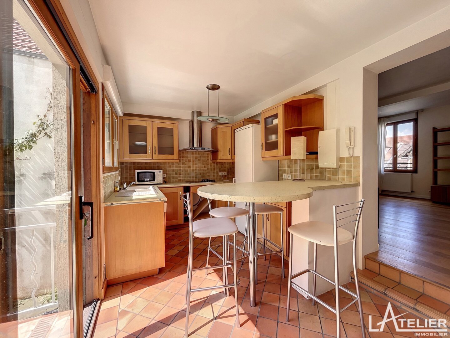 Au deuxième niveau, la vaste pièce de vie lumineuse, exposée est-ouest, s’ouvre sur une terrasse avec barbecue et un jardin ensoleillé à l’abris des regards, parfaits pour des moments de détente en extérieur. La cuisine ouverte apporte une touche de convivialité à cet espace de vie.