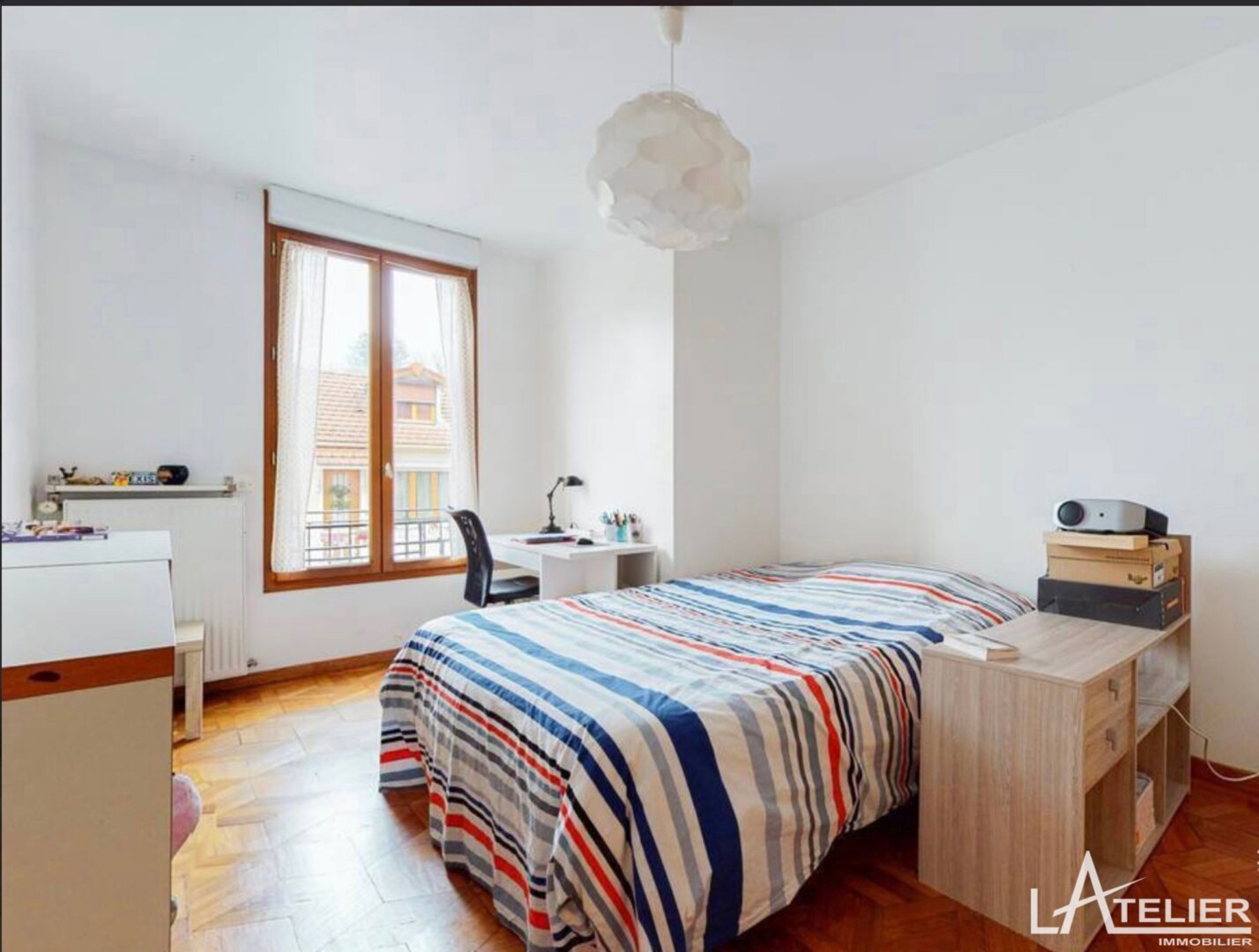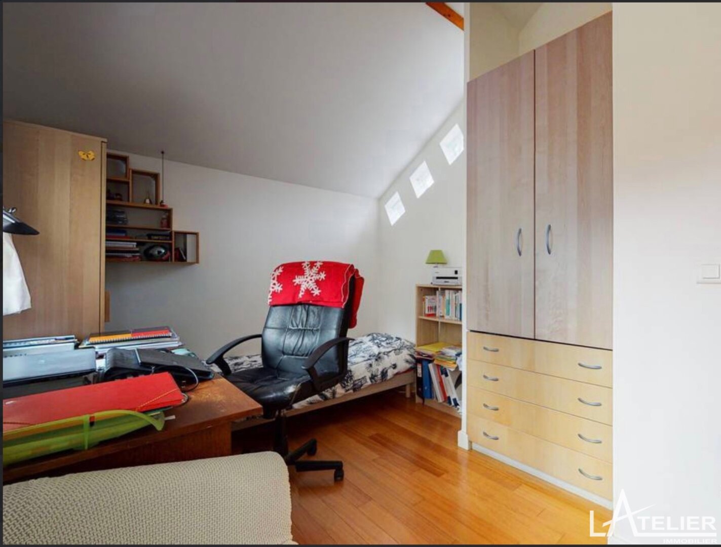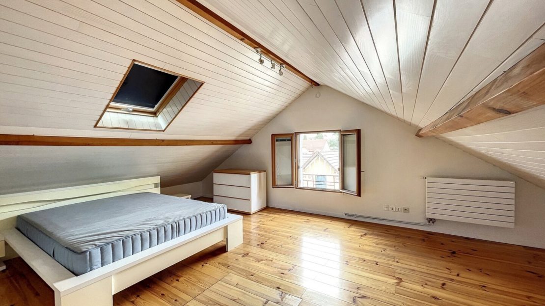 L’étage supérieur accueille deux autres chambres ainsi qu’une salle d’eau, idéales pour une famille recherchant confort et intimité.