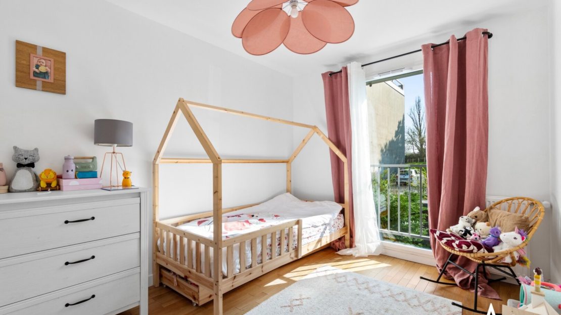 Au 1er étage le palier dessert 3 chambres (entre 10 et 12 m2) chacune avec grands rangements intégrés, 1 belle salle de bains avec fenêtre et 1 wc séparé.