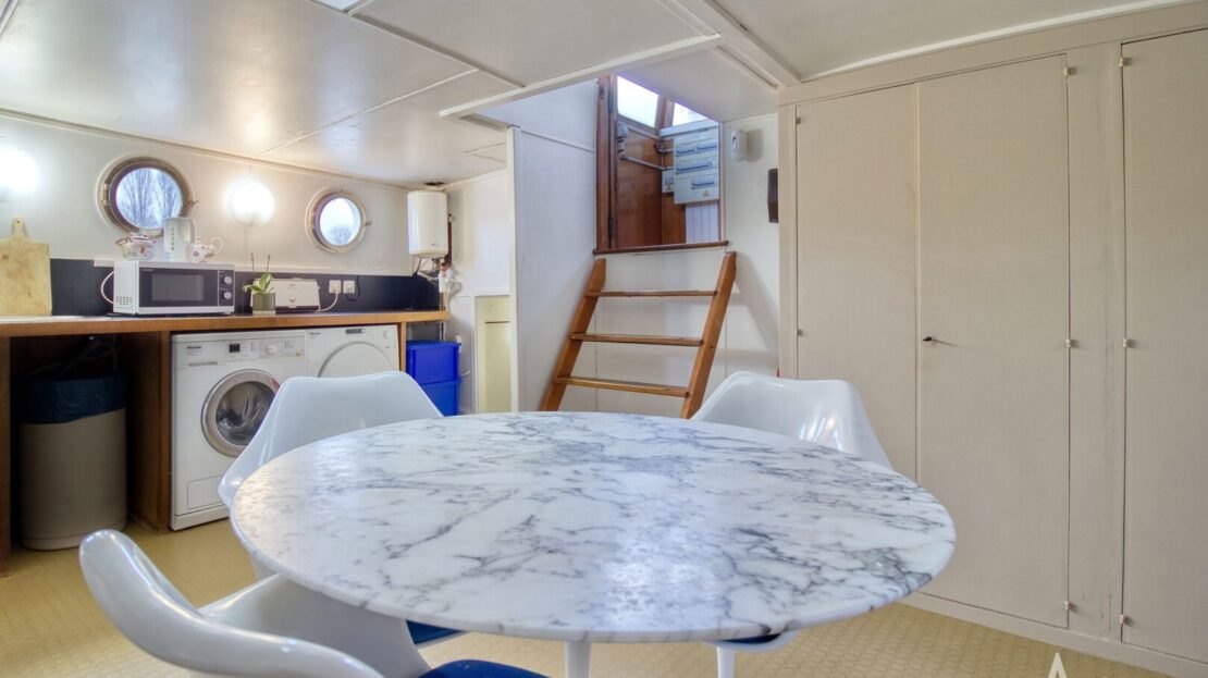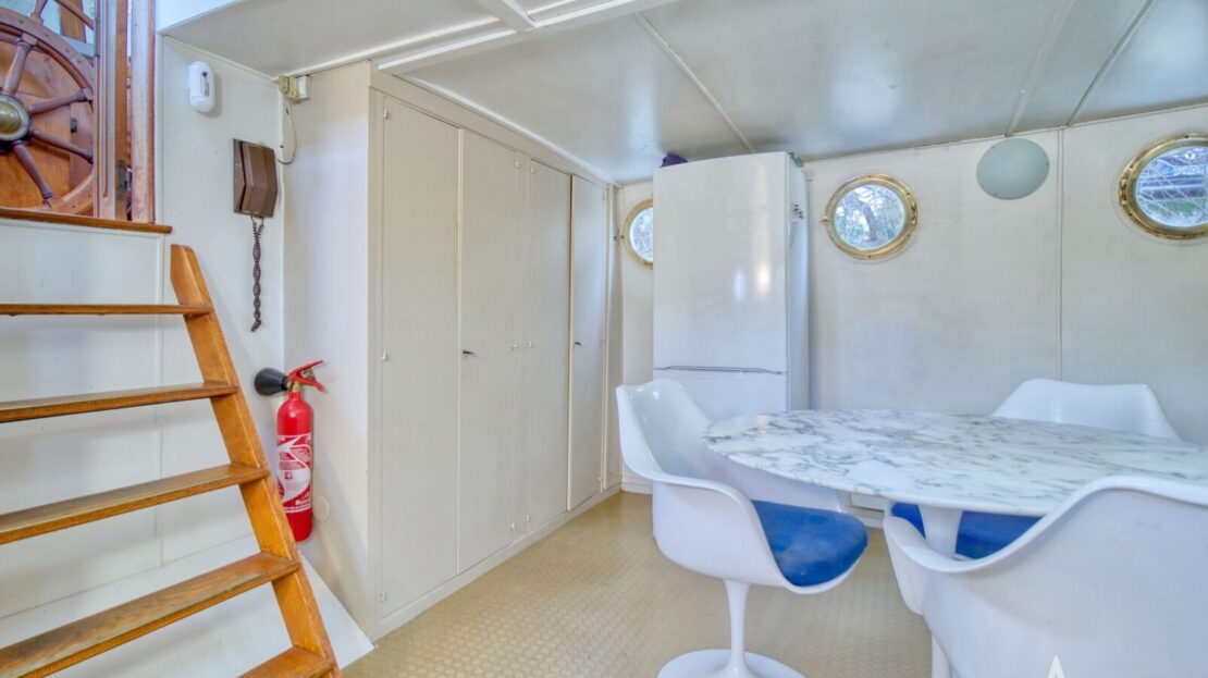 À l’extérieur, profitez d’une grande terrasse sur le pont, véritable pièce à vivre supplémentaire, idéale pour vos moments de détente ou pour recevoir en toute convivialité. De plus, cette péniche offre la possibilité d’augmenter la superficie habitable, un atout non négligeable pour personnaliser et optimiser les espaces selon vos besoins.