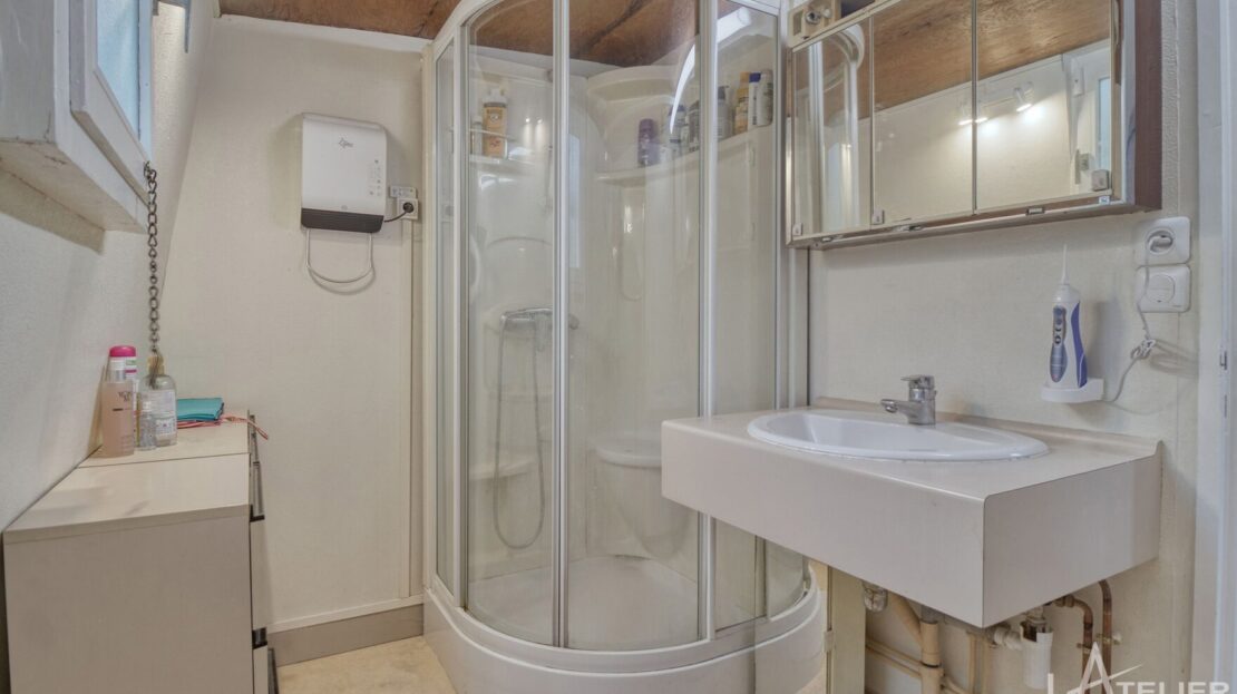 • Une salle de bains bien agencée.