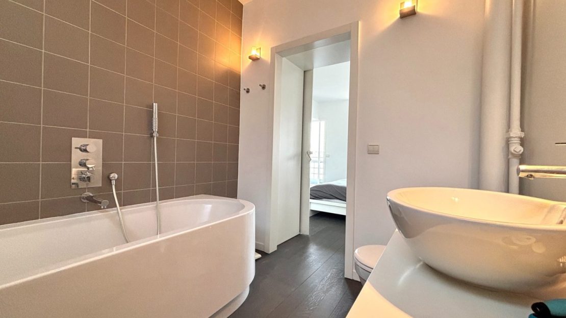 Un deuxième appartement, identique à celui-ci, se trouve au même étage. Les deux peuvent être très facilement réunis pour créer un seul et même logement traversant de 214 m2.