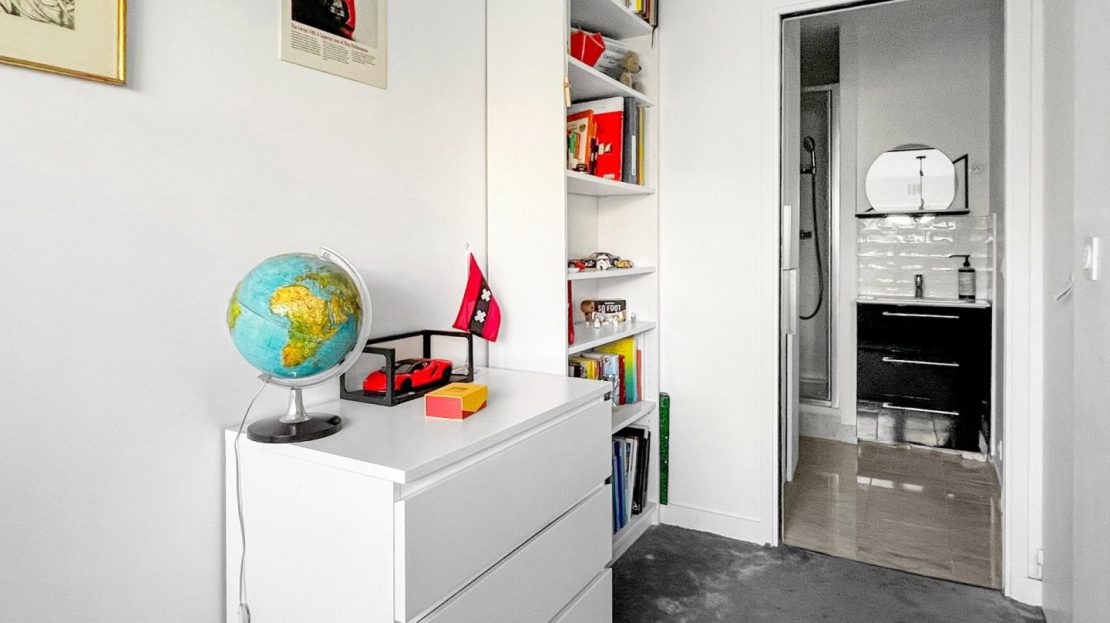 L’appartement a été entièrement rénové avec soin : les matériaux, les couleurs, les choix d’agencement racontent une vraie réflexion sur la manière d’habiter. L’ensemble très « cocooning » dégage une impression d’harmonie, où chaque détail semble à sa place.