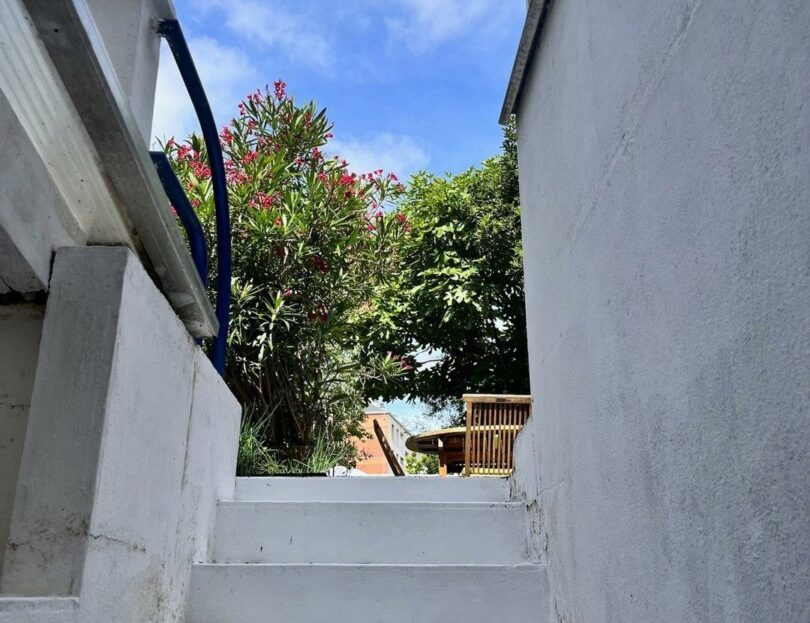 Le rez de chaussée sur rue est composé d’un hall d’entrée, d’un bureau spacieux (idéal pour une profession libérale), d’une chambre avec un coin kitchenette et une douche séparée, une terrasse couverte, qui constitue un espace multifonctions de loisirs comme de rangement, et permet de rejoindre le jardin en montant quelques marches.
