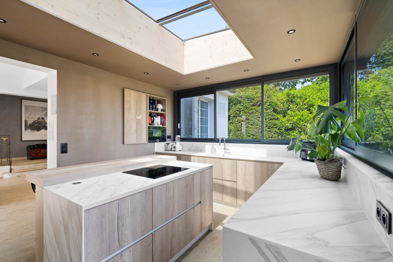 Les espaces extérieurs répartis de tous côtés sont une invitation à la détente, aux soirées festives, à la contemplation et disposent même d’une petite porte donnant sur les célèbres sentes de Mareil Marly et les vergers.