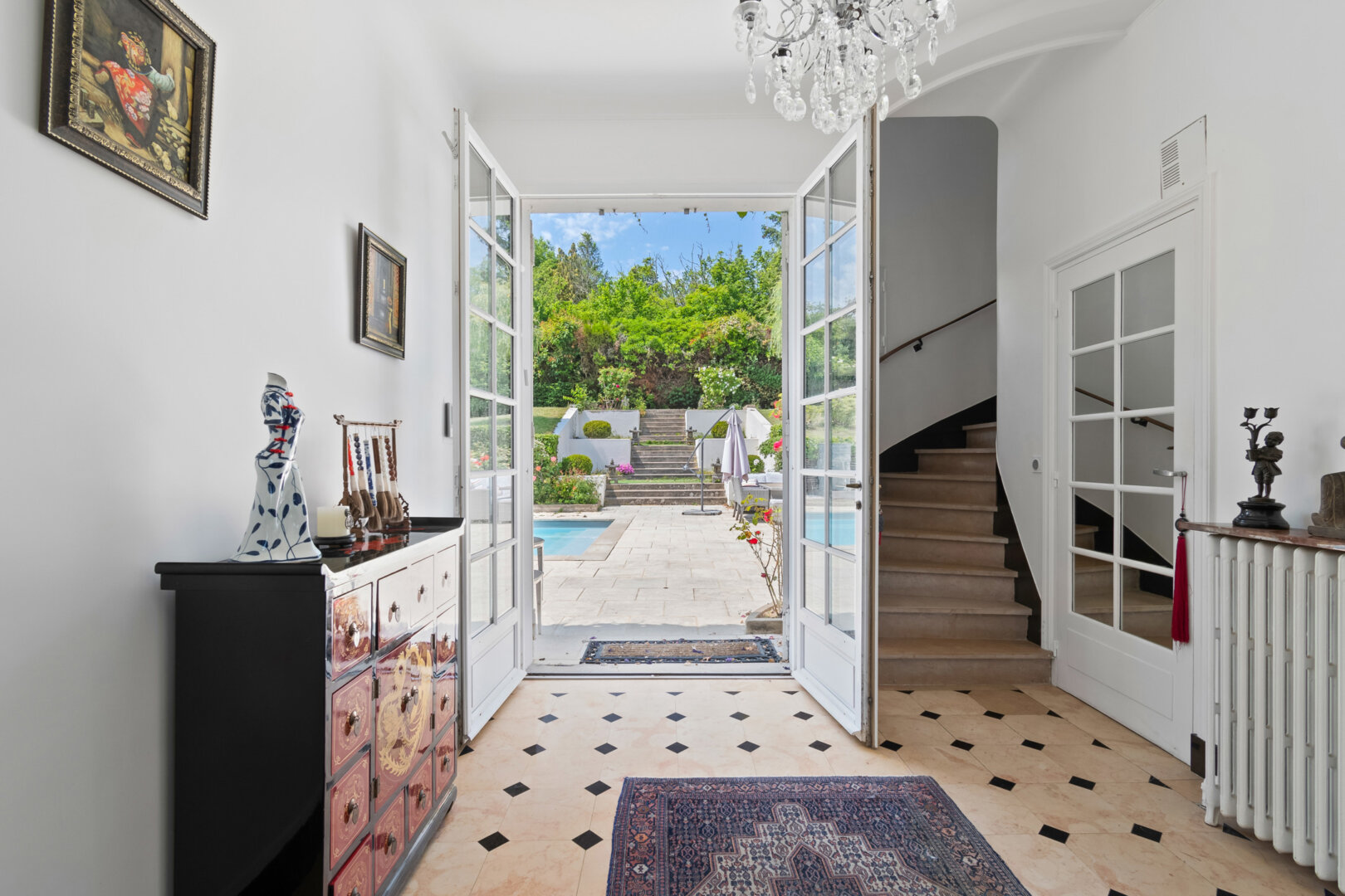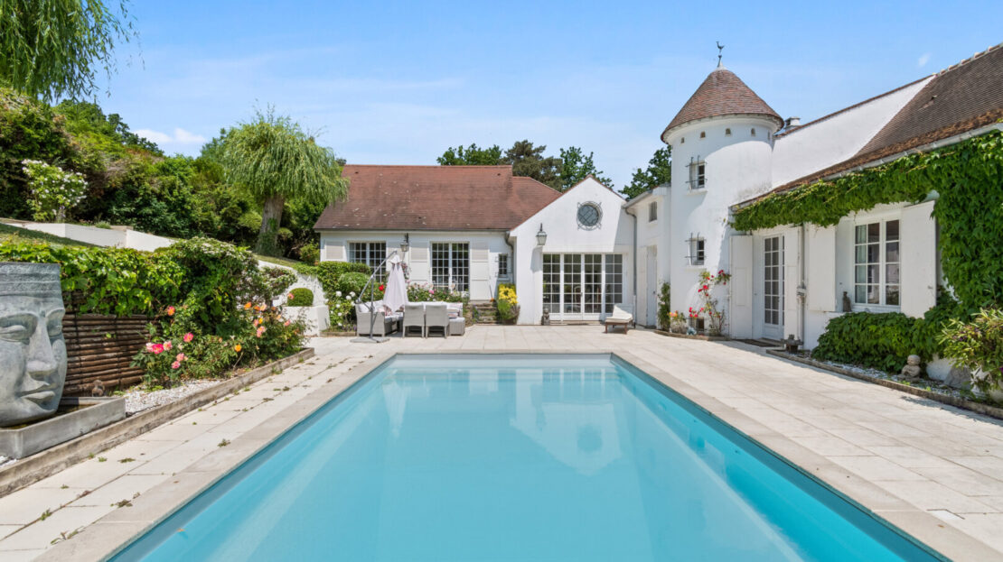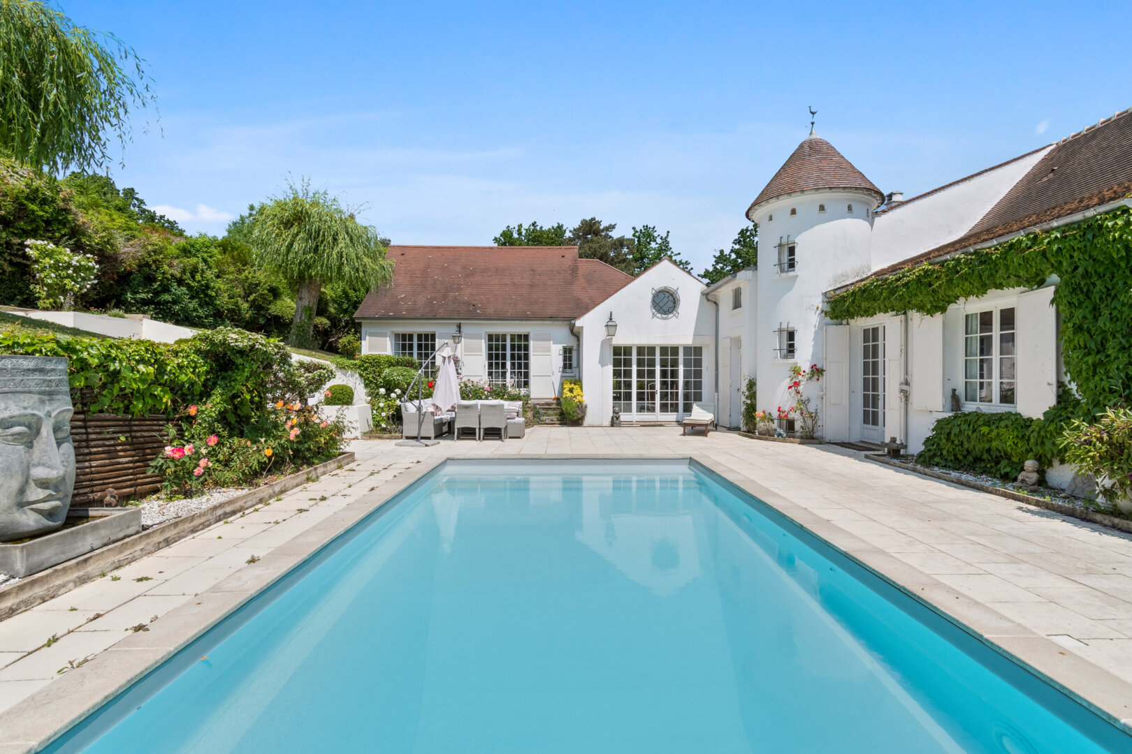 Propriété d’exception à Mareil Marly ! Située au sein d’un environnement privilégié et confidentiel, entre nature et proximité des commodités, cette demeure de caractère et de prestige nous enveloppe de son charisme et de son histoire. Le charme opère dès que l’on franchit l’accès avec la vue sur la superbe piscine (9×5) et l’ensemble de la propriété avec ses terrasses, ses jardins et la vue sur Paris.