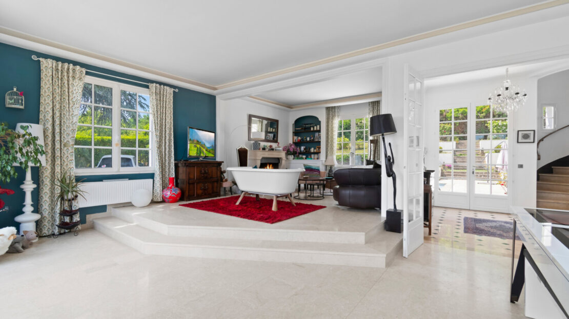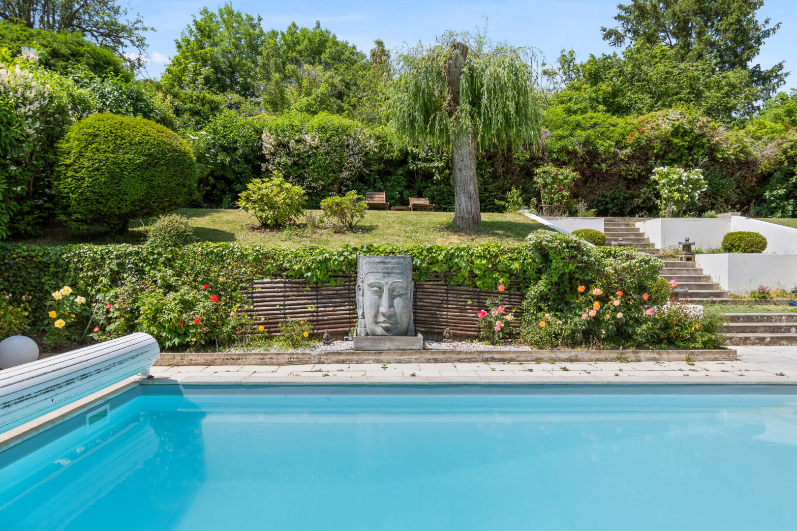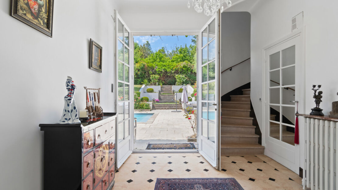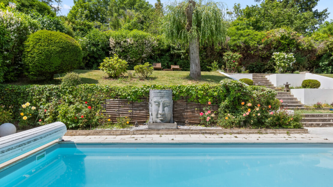 Propriété d’exception à Mareil Marly ! Située au sein d’un environnement privilégié et confidentiel, entre nature et proximité des commodités, cette demeure de caractère et de prestige nous enveloppe de son charisme et de son histoire. Le charme opère dès que l’on franchit l’accès avec la vue sur la superbe piscine (9×5) et l’ensemble de la propriété avec ses terrasses, ses jardins et la vue sur Paris.