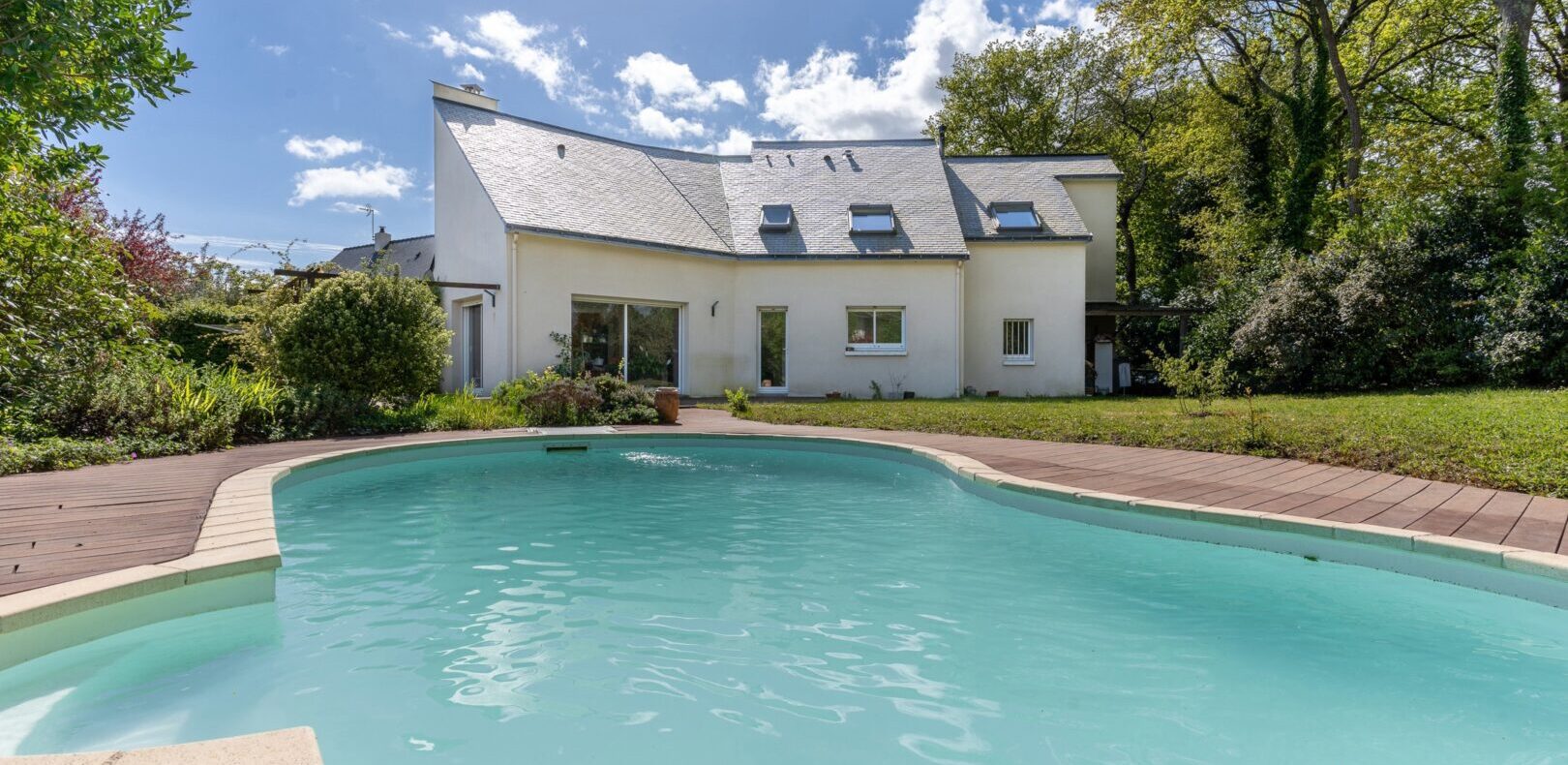 Dans le bourg de Sautron, cette grande maison familiale avec piscine offre un lieu de vie généreux et moderne, permettant une vie de plain-pied, proche de toutes les commodités.