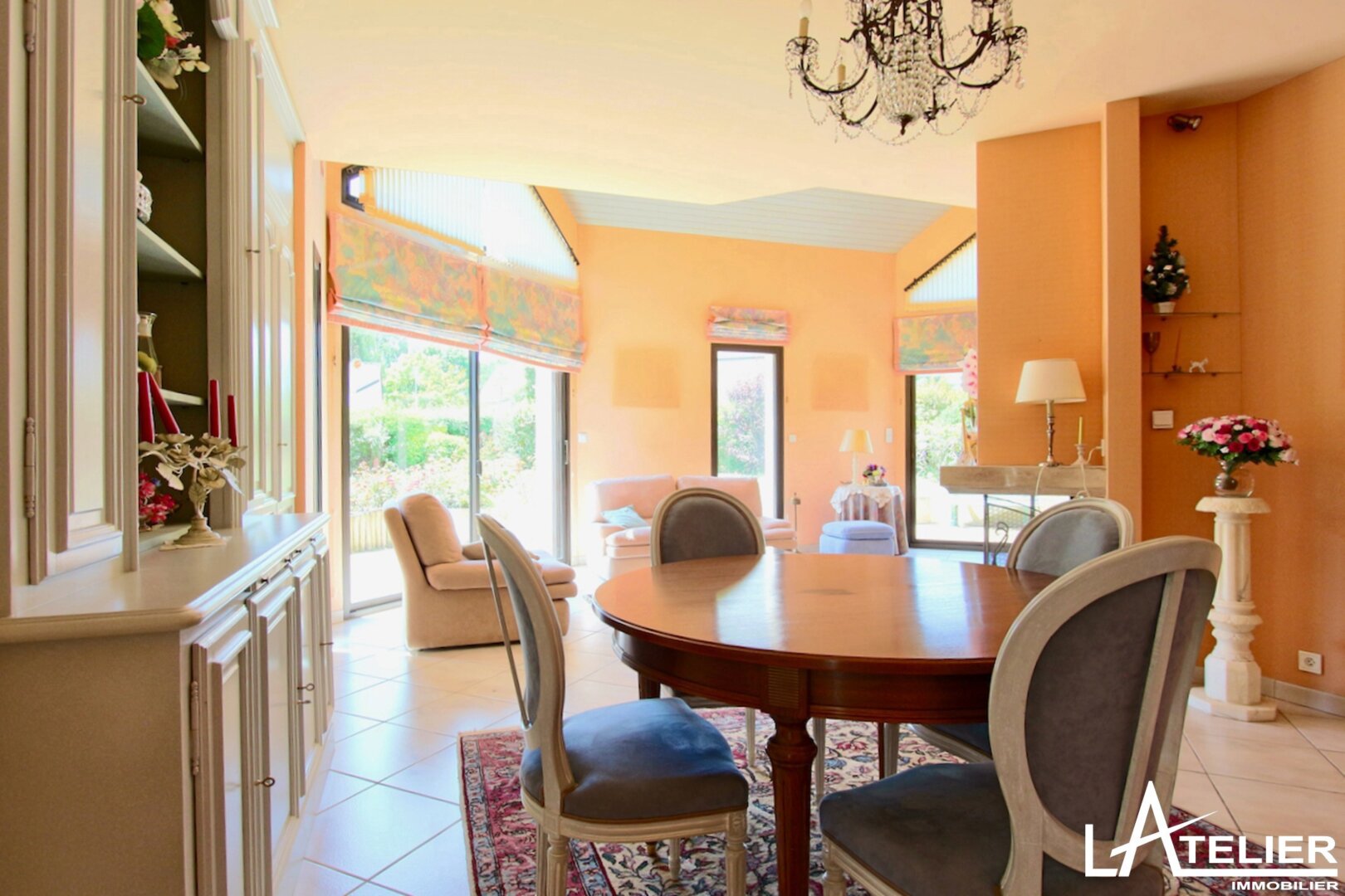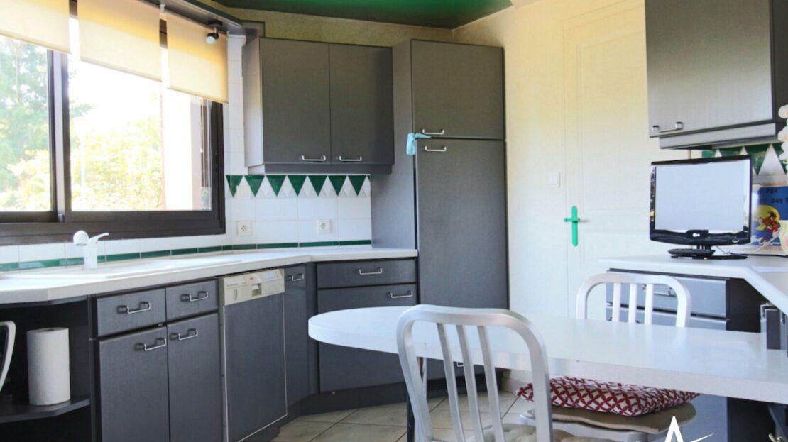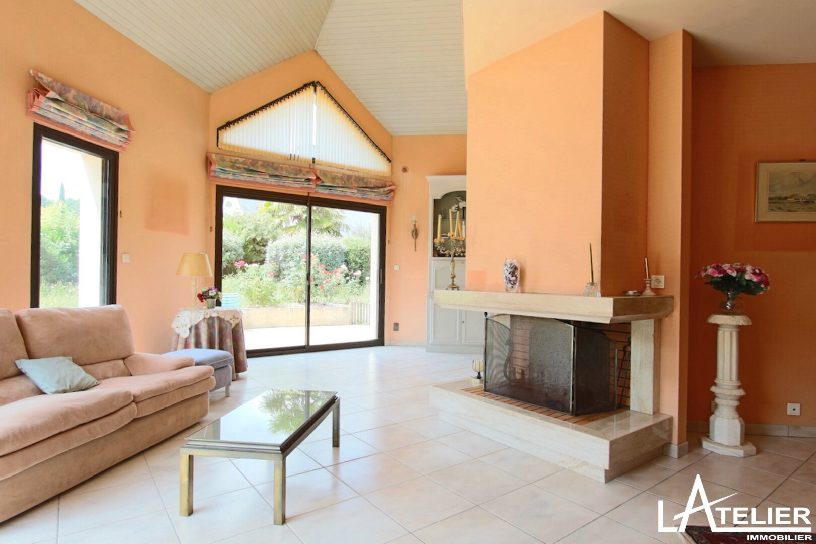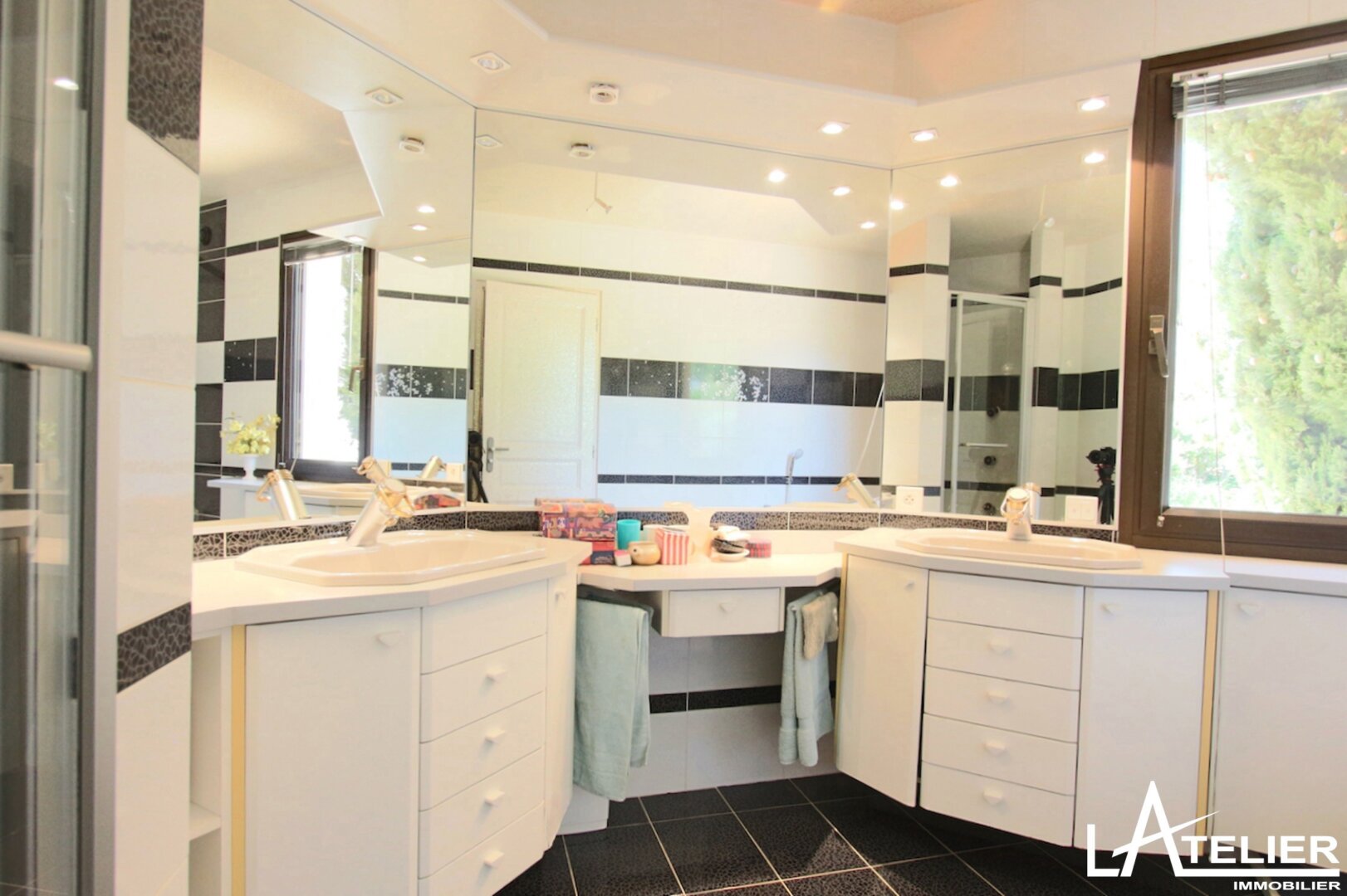 Au rez-de-chaussée, hall d’entrée lumineux de plus de 16m², cuisine aménagée et équipée, arrière cuisine / buanderie, salle à manger suivie d’un salon hauteur cathédrale avec cheminée, bénéficiant d’une double exposition sud et ouest et dont les grandes baies vitrées donnent sur la terrasse et enfin un bureau.