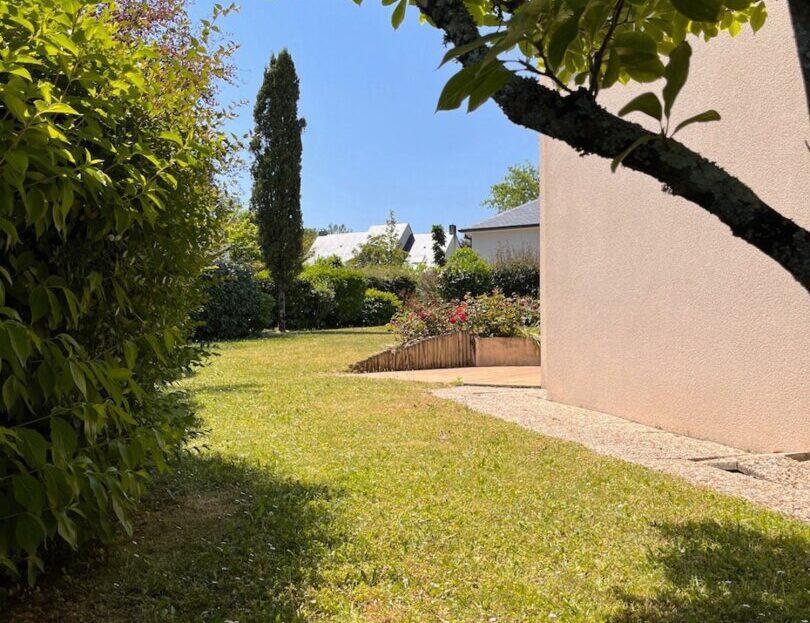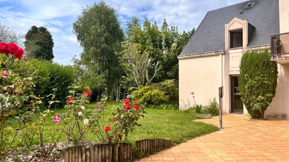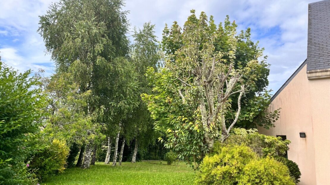 Le jardin arboré soigné et la grande terrasse permettent de profiter des beaux jours en toute tranquillité.