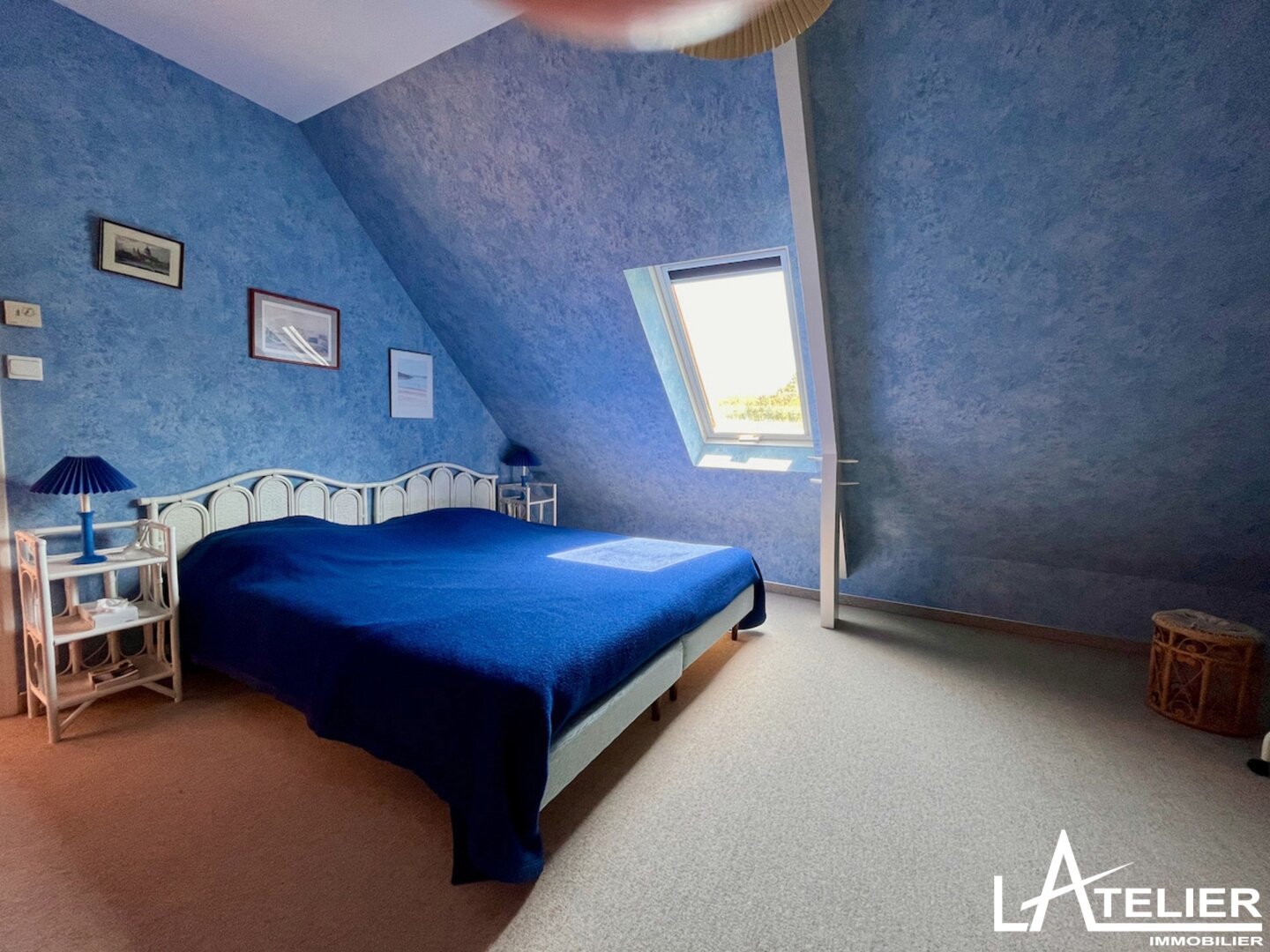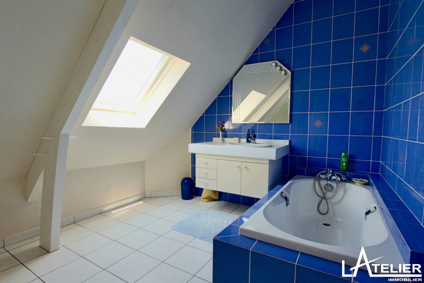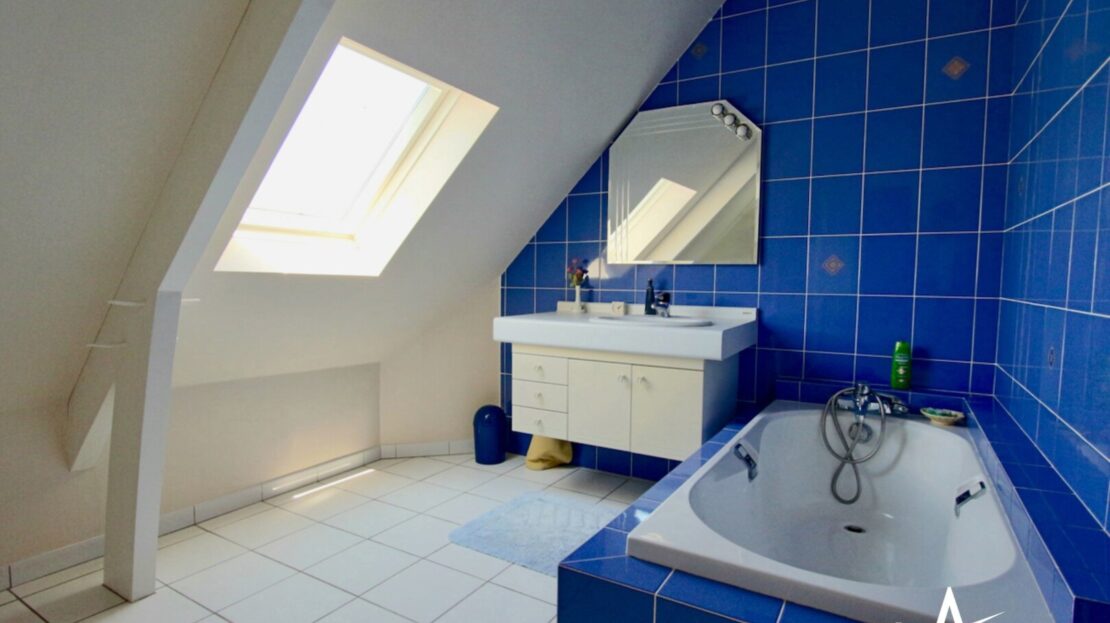 A l’étage, une mezzanine baignée de lumière dessert une première chambre et sa salle de bain privative en parfait état, 2 chambres, une salle de douche.