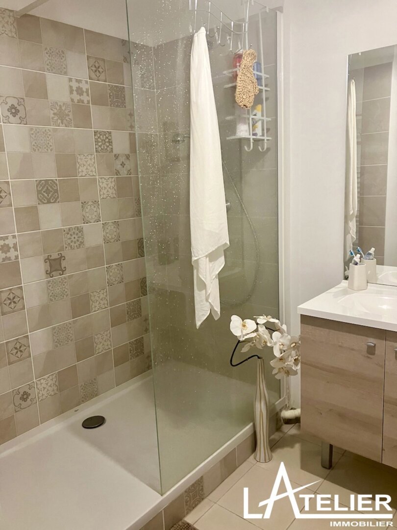 L’entrée comprend des placards et conduit d’un côté à la partie nuit, de l’autre au spacieux salon / salle à manger ainsi qu’à la cuisine parfaitement aménagée et équipée sur-mesure, ces 2 espaces ouvrant sur la terrasse de près de 30m², à l’abri des regards ; la partie nuit comprend un dégagement, la salle de douche confortable, un local lingerie avec un lavabo (2ème salle de douche potentielle), les 2 chambres lumineuses avec placards dont l’une avec un accès direct à la terrasse.