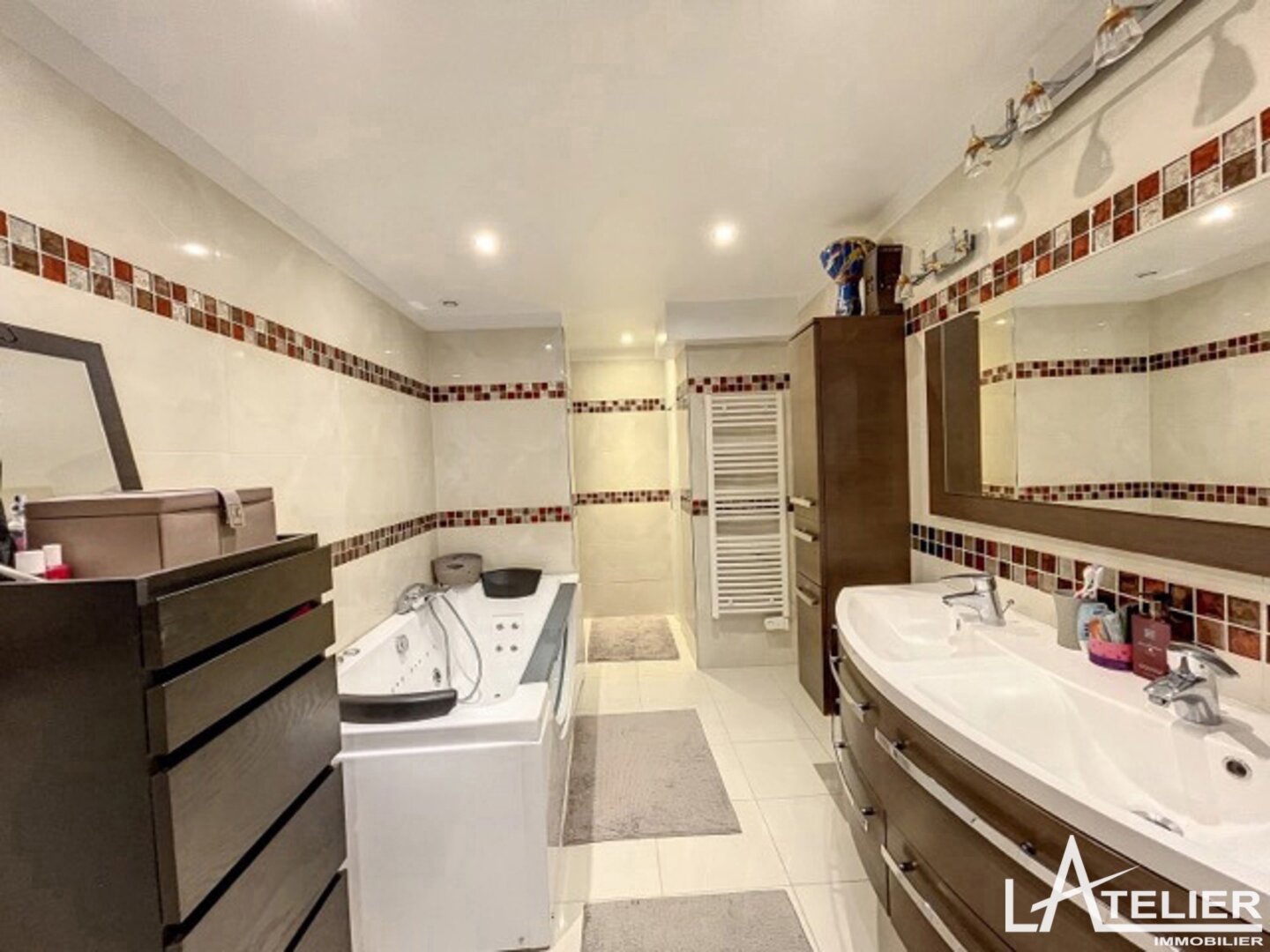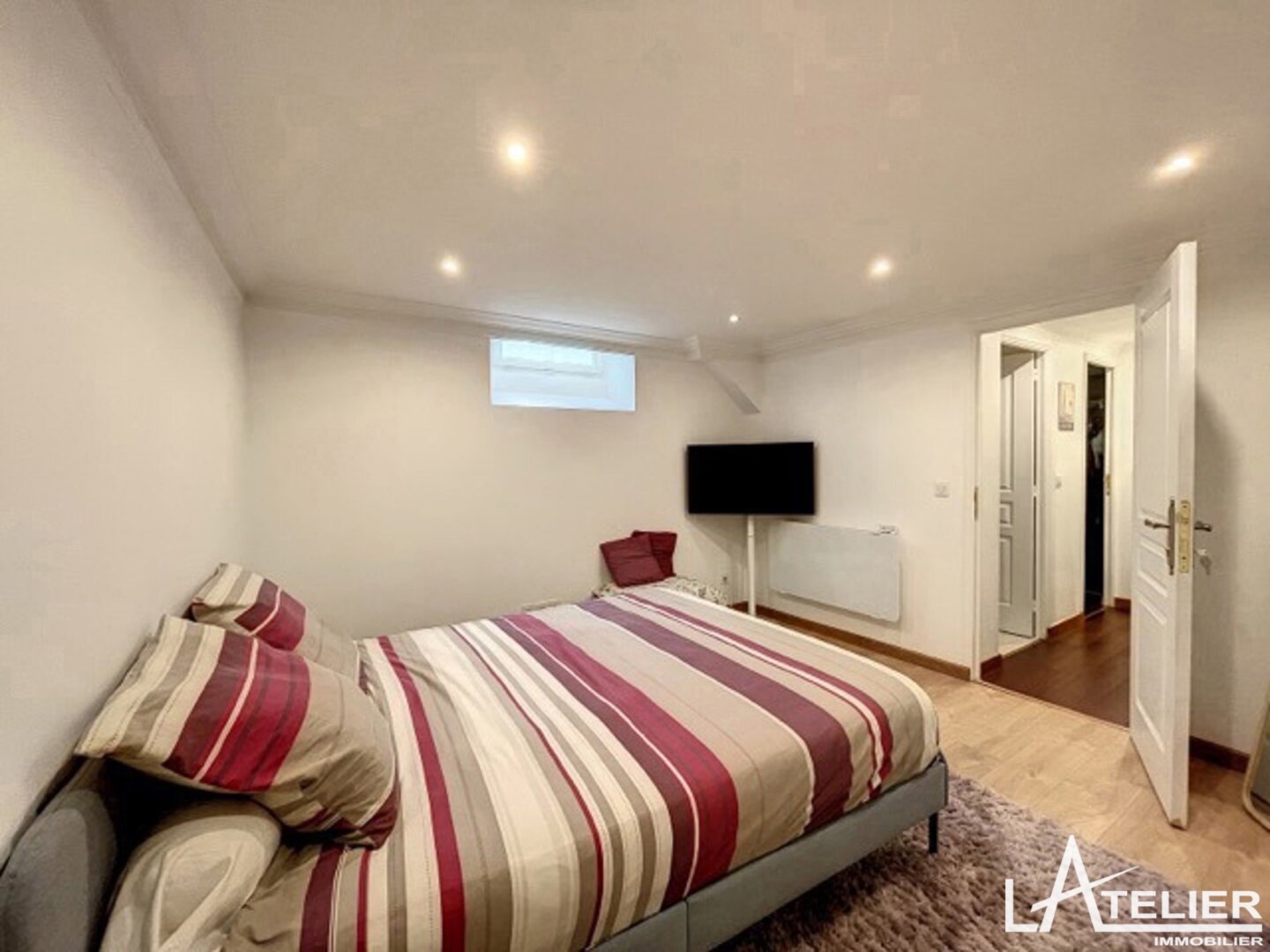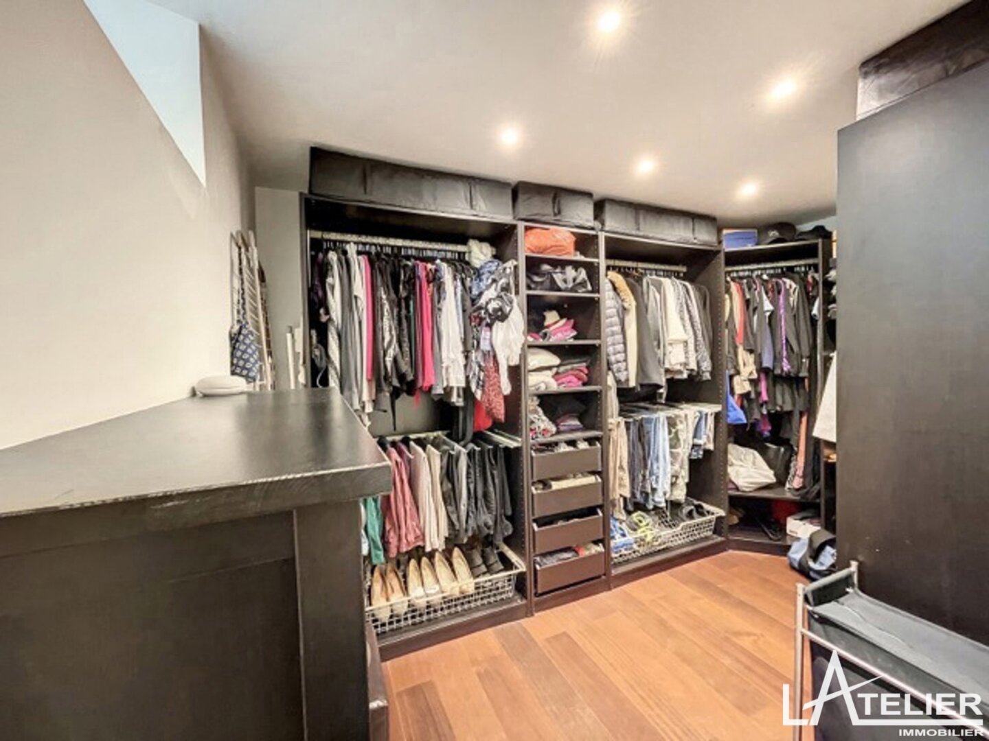 L’ensemble du sous-sol est entièrement aménagé d’une suite parentale, salle de bains (avec baignoire balneo et douche à l’italienne), wc séparés, dressing, buanderie et espace bureau.