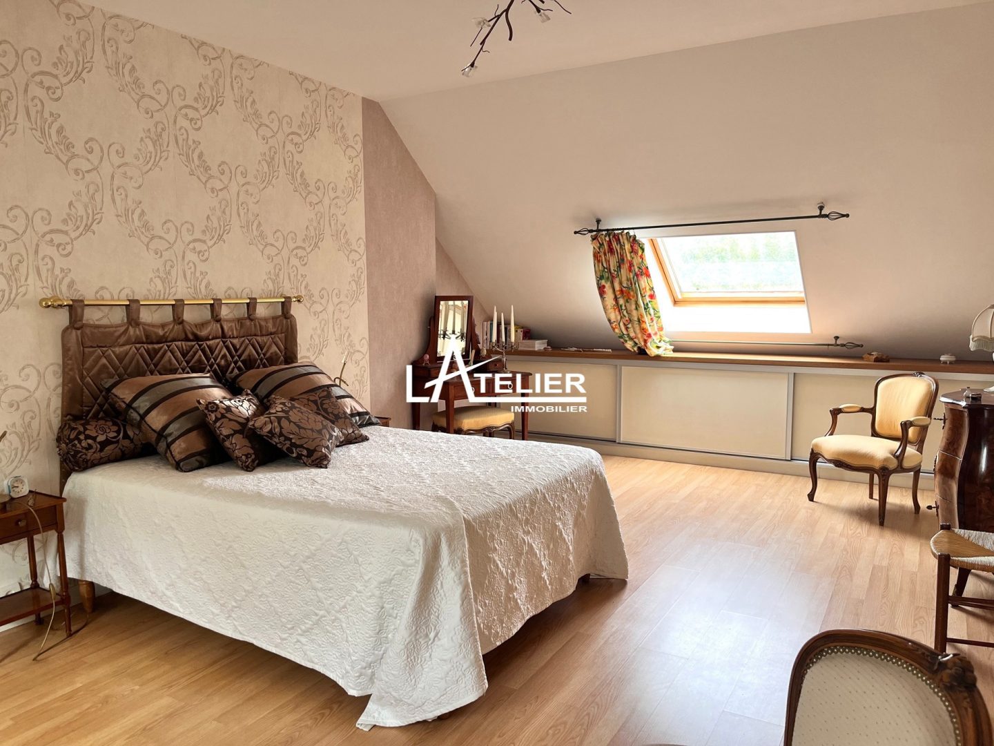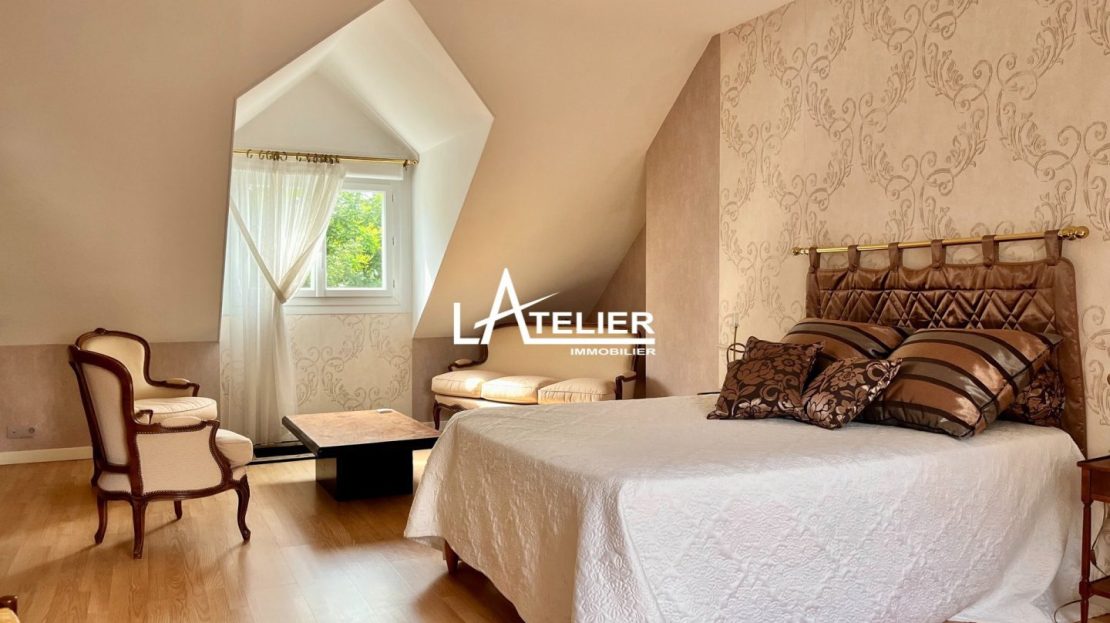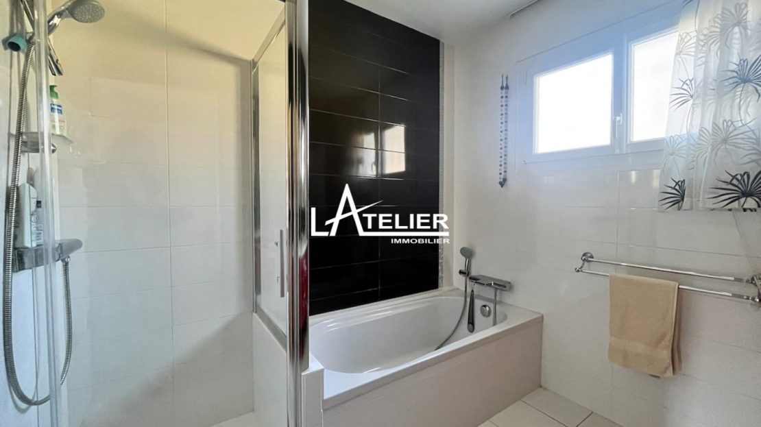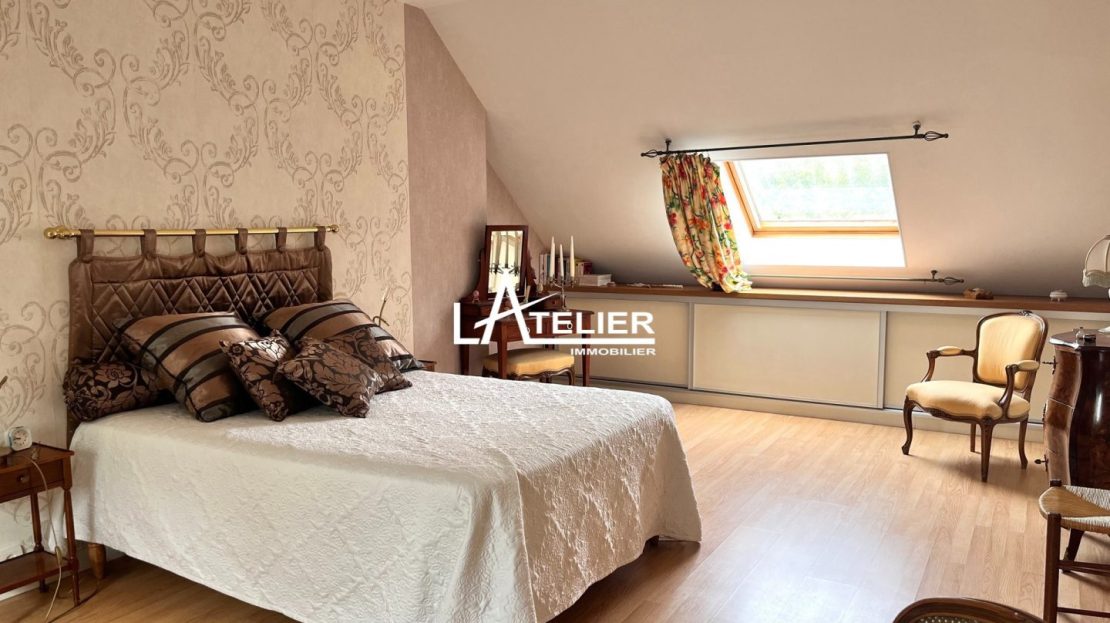 Une confortable entrée dessert le rdc : un salon-séjour traversant avec cheminée ouvrant de chque côté sur le jardin ; la cuisine moderne, aménagée et équipée, est optimisée et dispose de nombreux rangements ; la vie de plain-pied est possible avec une chambre et une salle de bain + douche au rez-de-chaussée. Une lingerie donnant sur le jardin comprend également un coin atelier. À l’étage, une grande suite parentale avec dressing et salle de douche (possibilité de diviser en 2 chambres), une 2ème chambre ainsi qu’un espace clos de stockage.